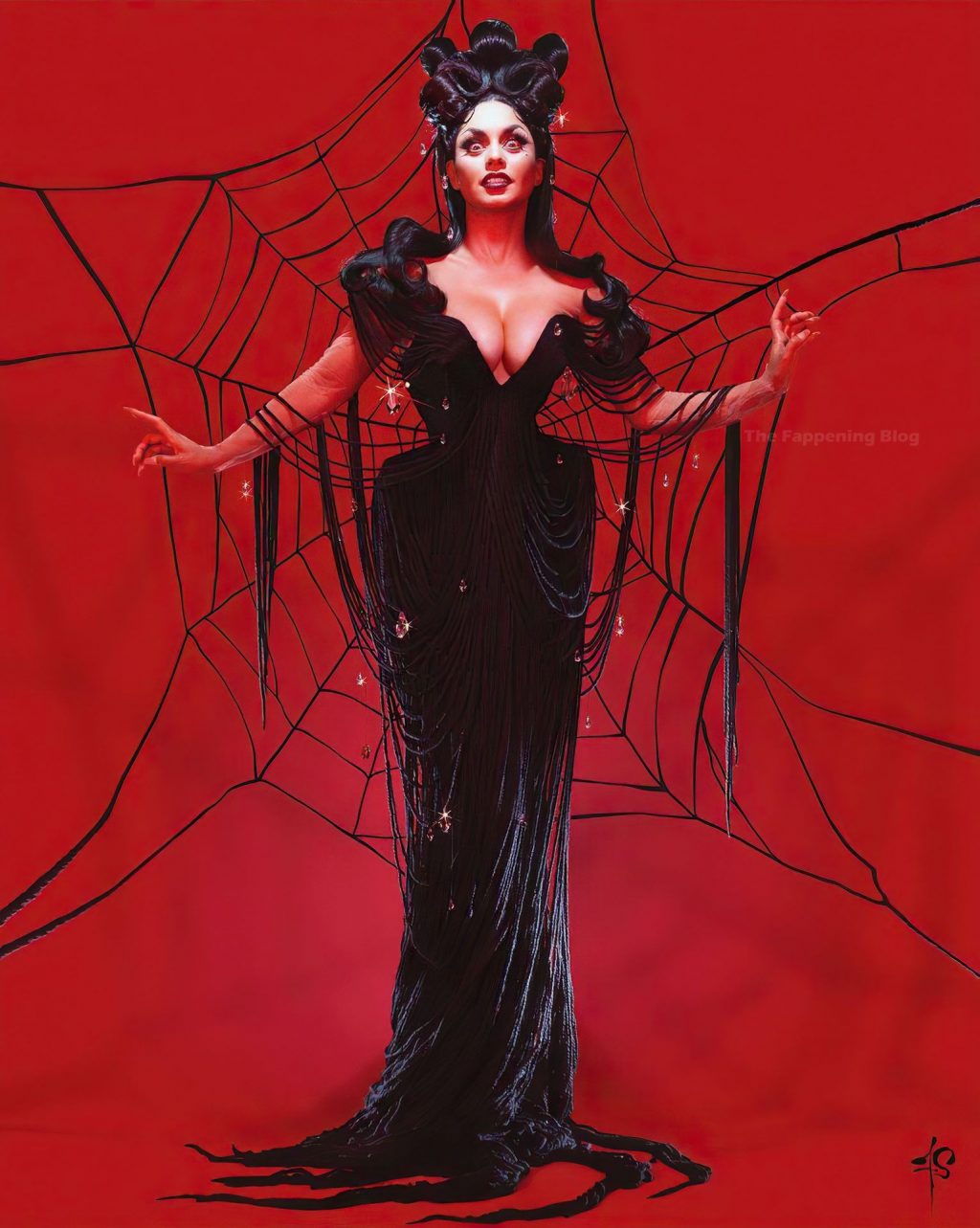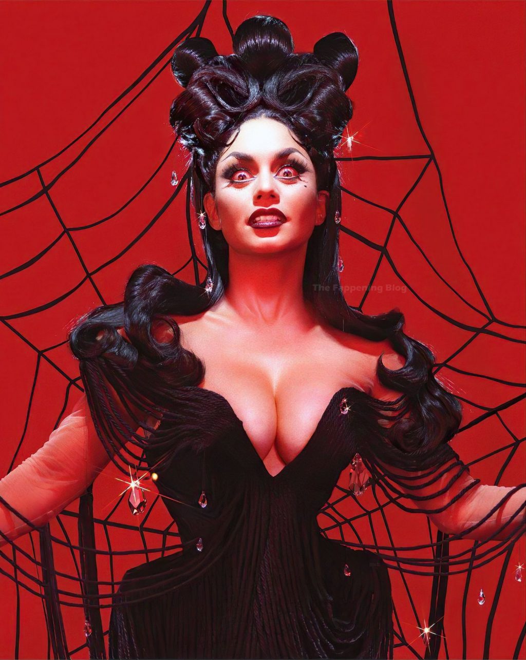 A estrela do Fappening Vanessa Hudgens assusta você como a Viúva Negra com seus seios em um novo ensaio fotográfico de Franz Szony para o Halloween (outubro de 2020).