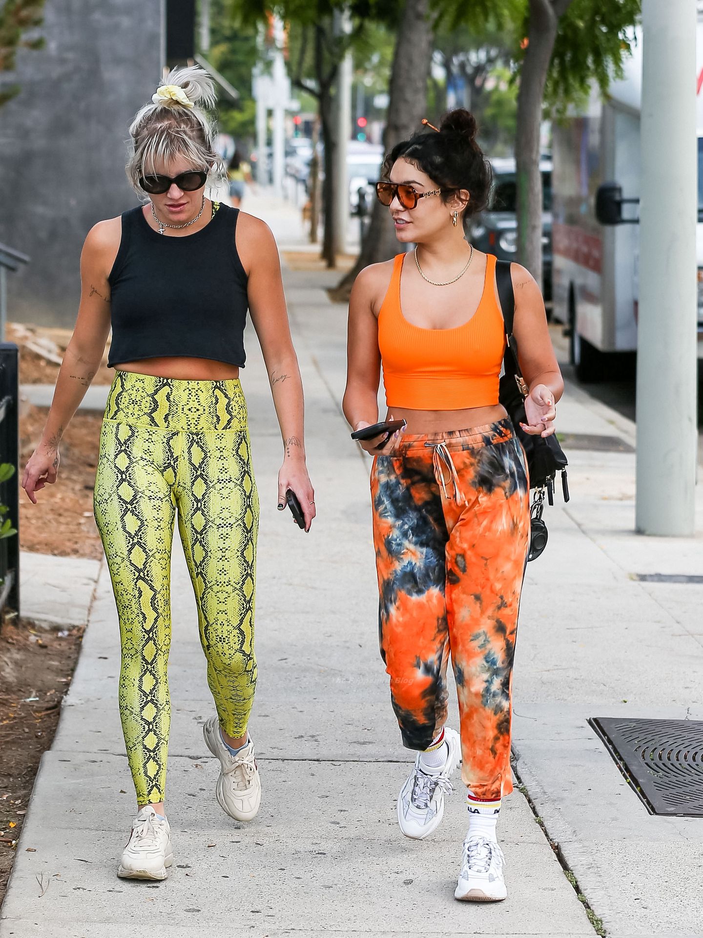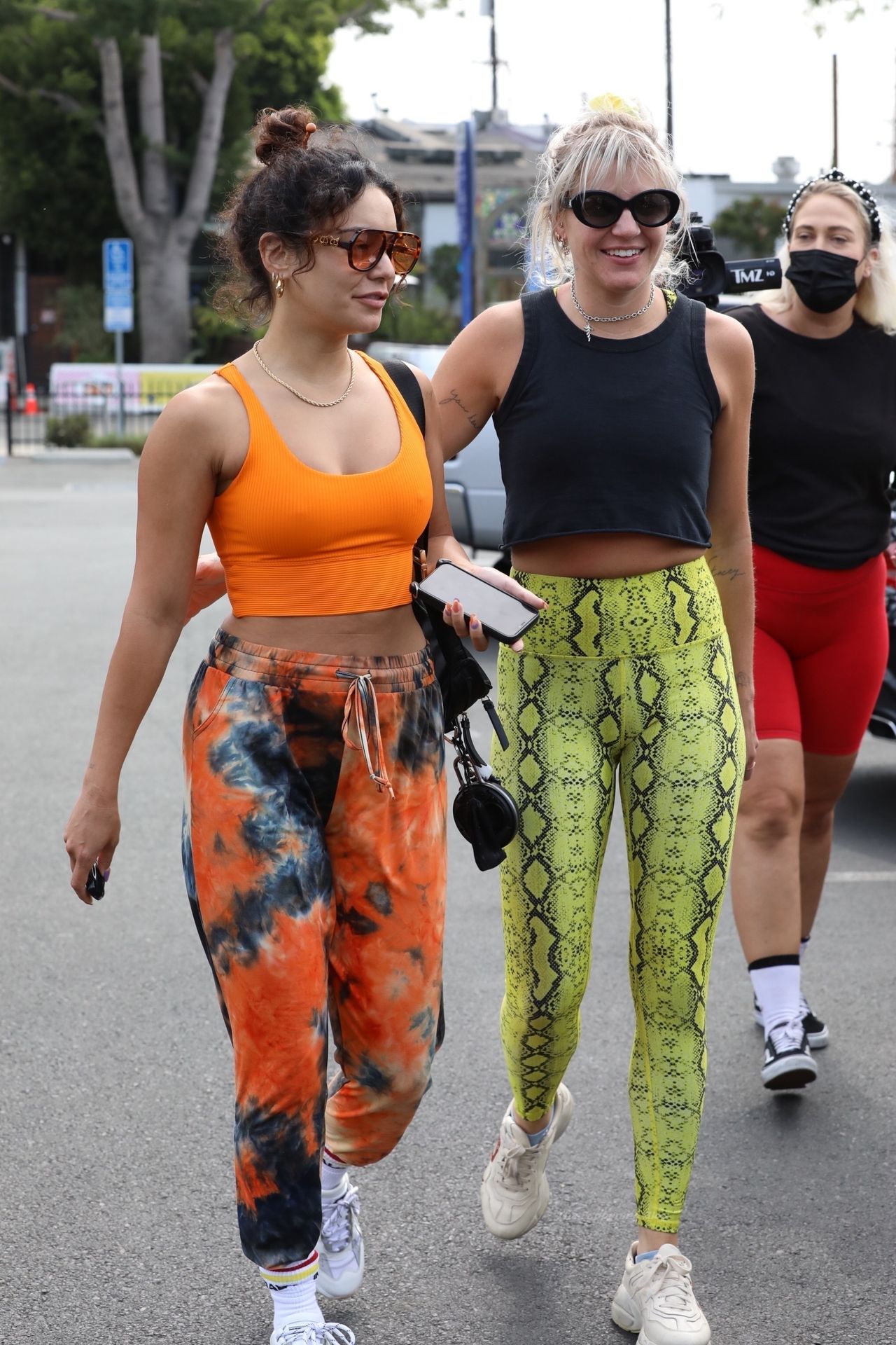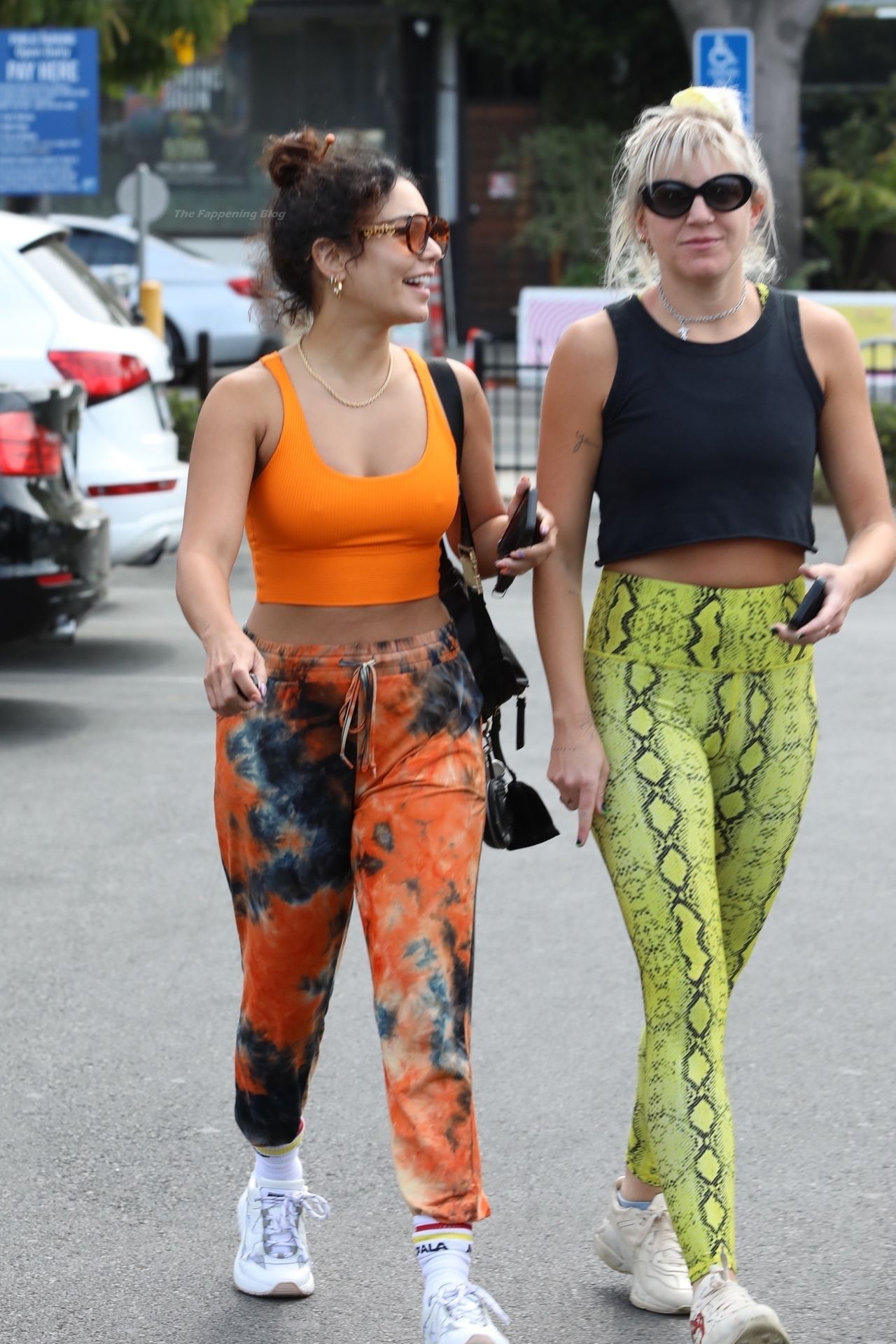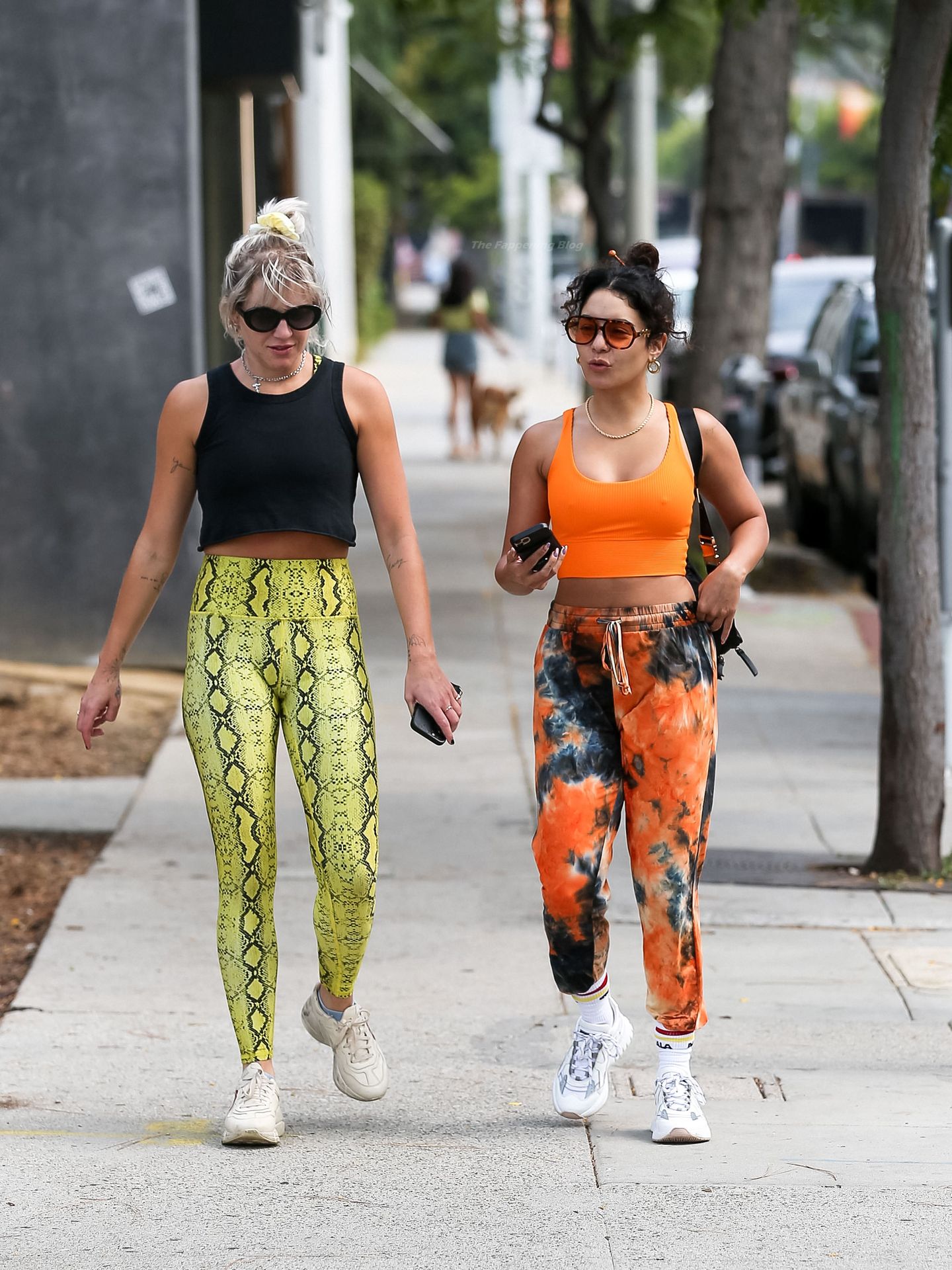 A estrela de The Fappening, atriz Vanessa Hudgens e sua melhor amiga, a cantora GG Magree, saem da academia Dogpound em West Hollywood e seu estilo de academia não pode passar despercebido, 29/06/2021.
