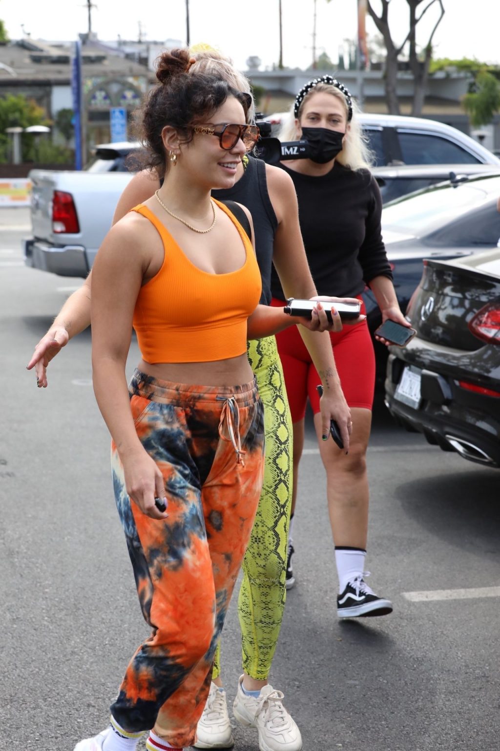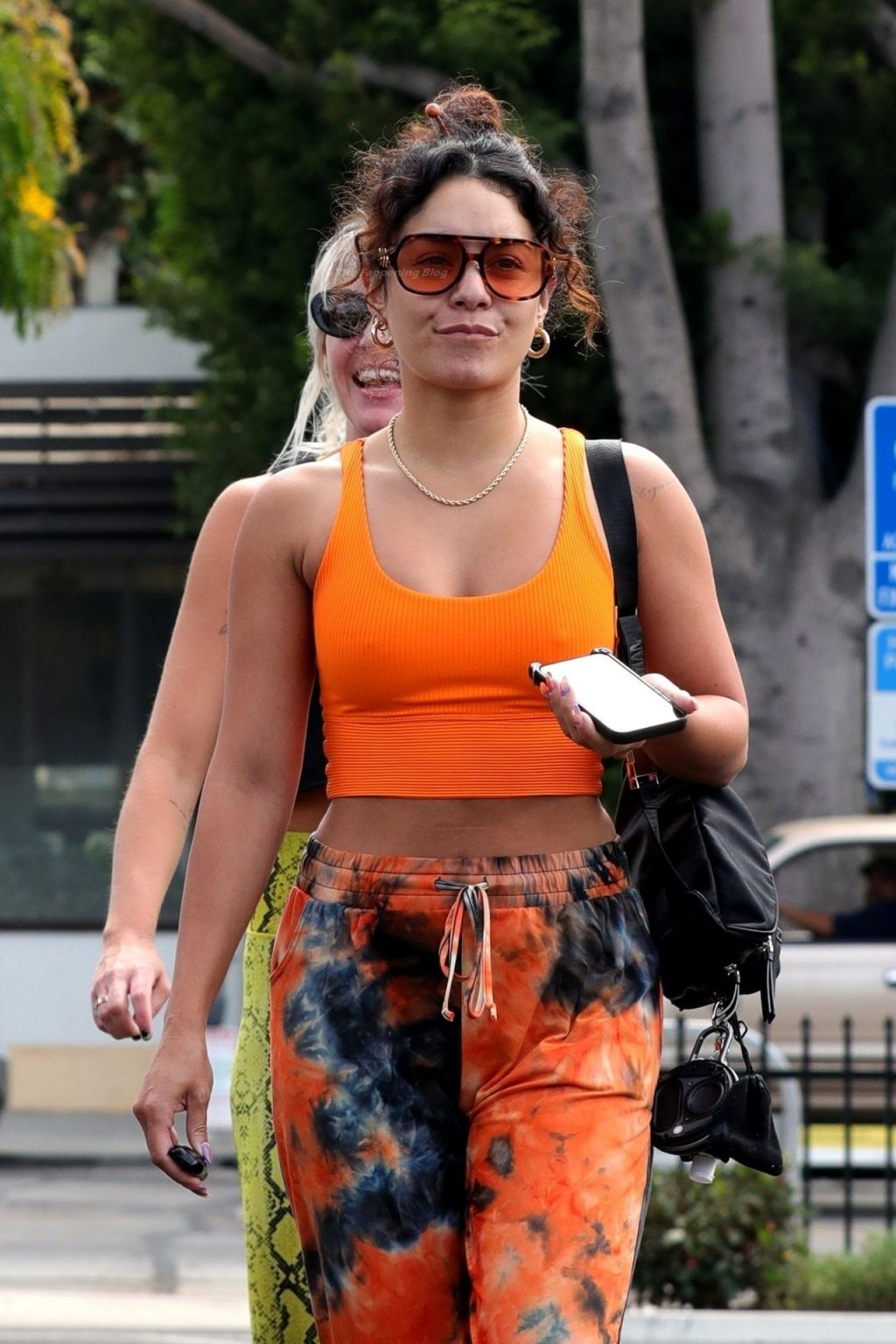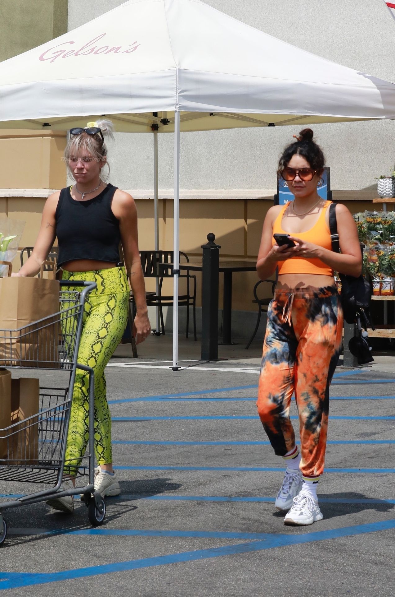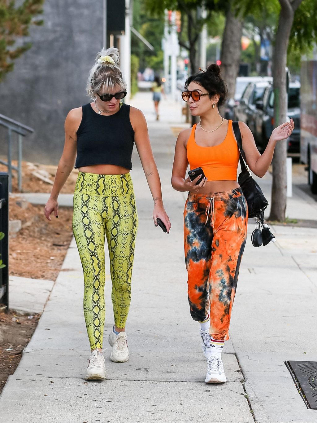 A estrela de The Fappening, atriz Vanessa Hudgens e sua melhor amiga, a cantora GG Magree, saem da academia Dogpound em West Hollywood e seu estilo de academia não pode passar despercebido, 29/06/2021.