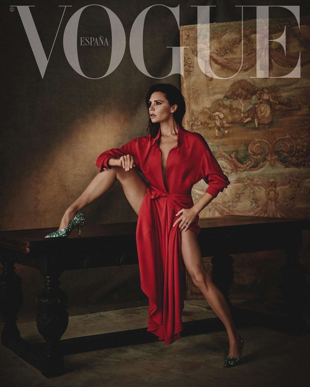 Victoria Beckham mostra suas lindas pernas nas capas da Vogue Espanha de fevereiro de 2018. Victoria Beckham é uma modelo inglesa, empresária, cantora e estilista. Idade – 43.