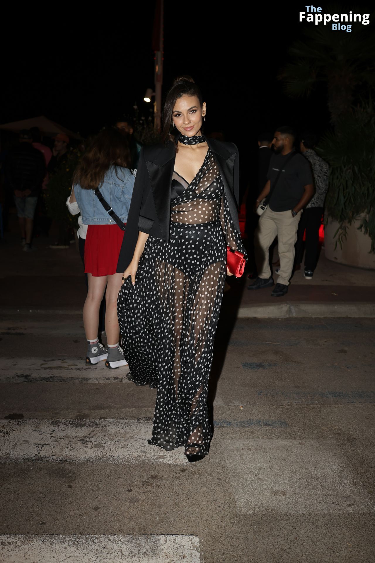 Victoria Justice está esquentando Cannes, parecendo um verdadeiro arraso em um look transparente que está dando o que falar. Ela está cheia de atitude, usando um conjunto de sutiã e calcinha pretos que destaca seu corpo em forma.