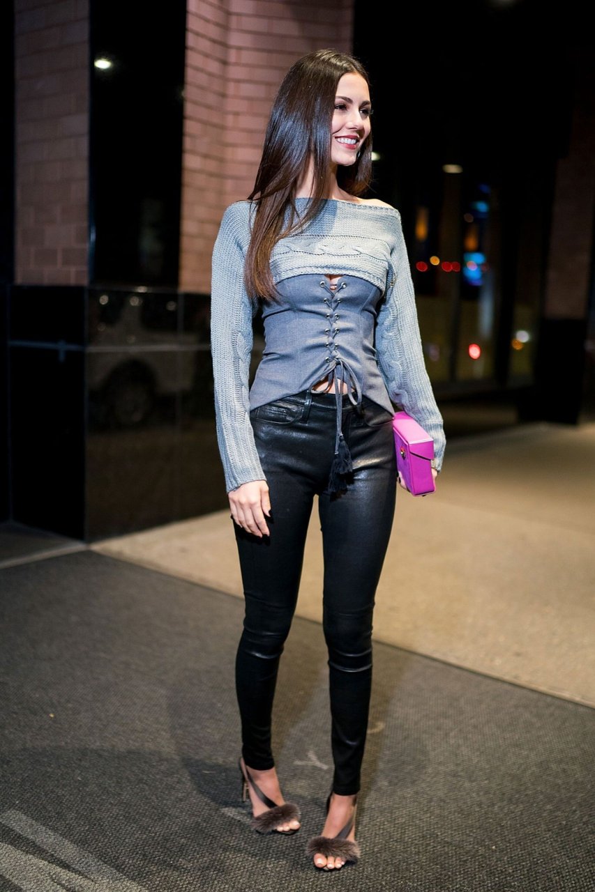 A atriz americana Victoria Justice (25) foi vista saindo de seu hotel com Maddy Grace em Nova York, 16/10/2018.
