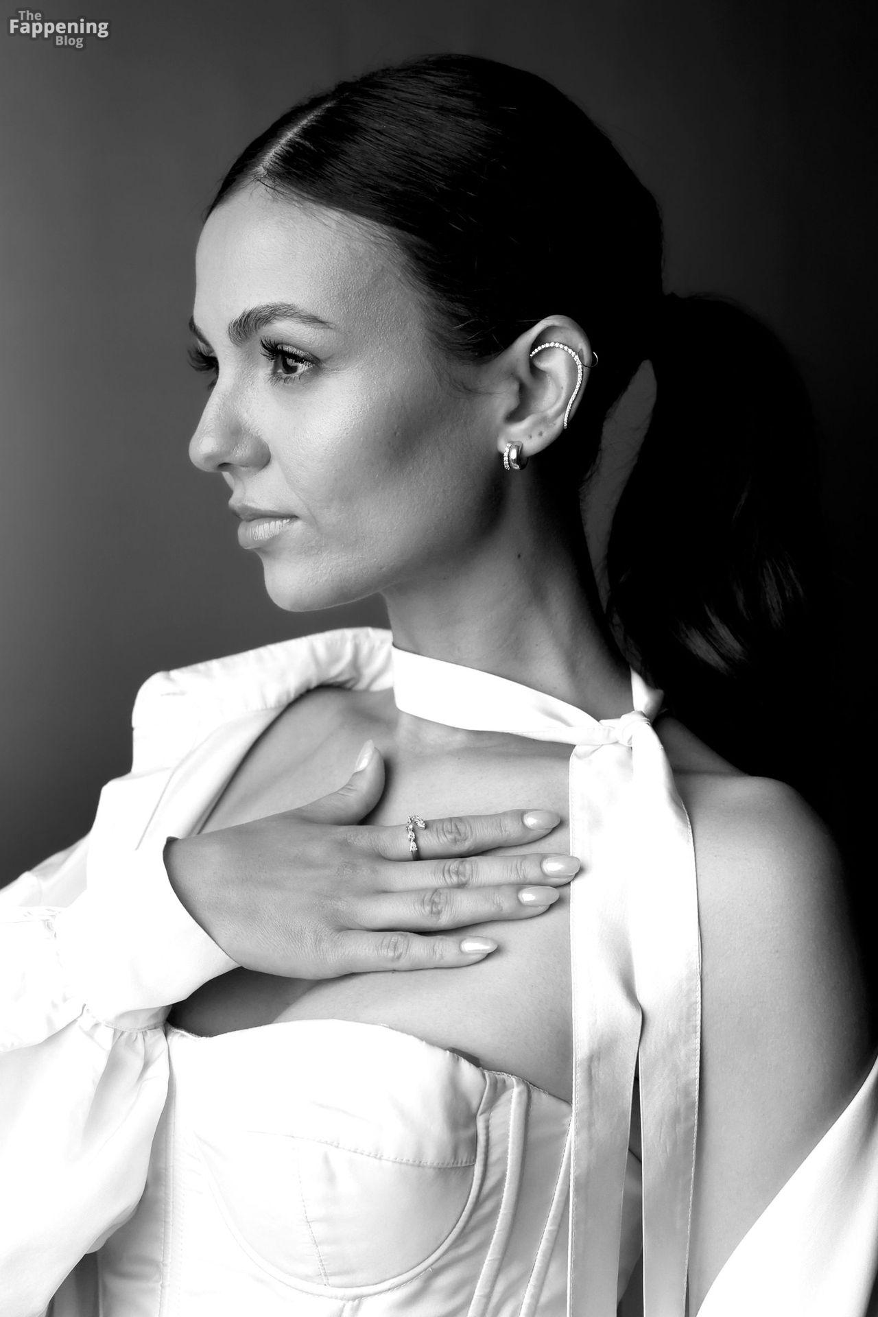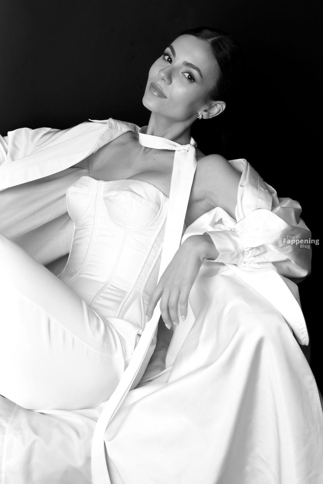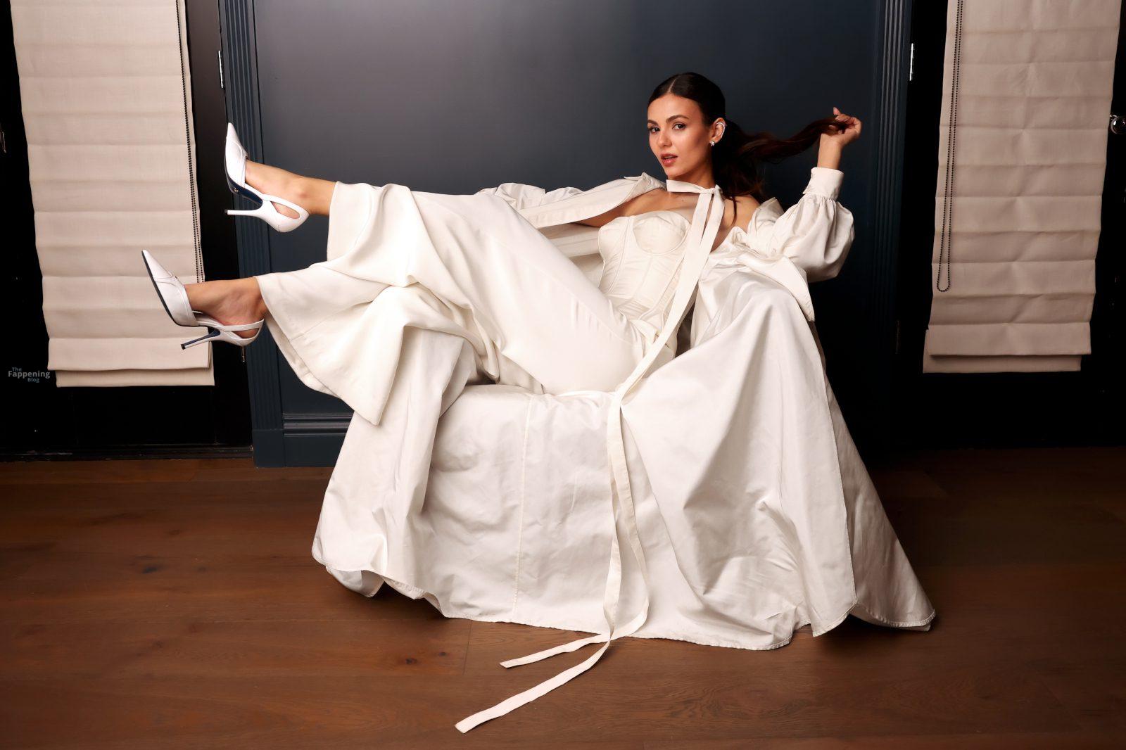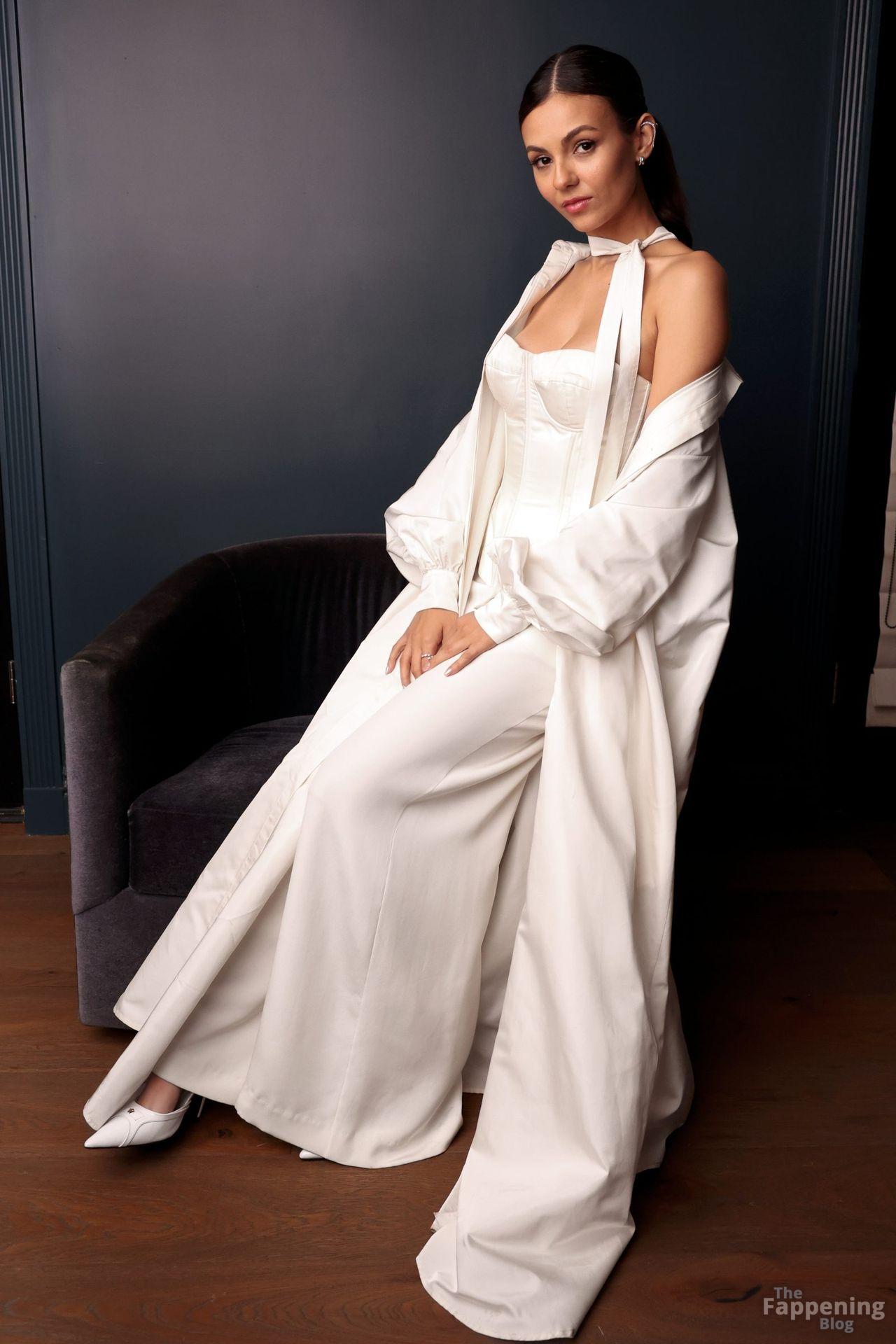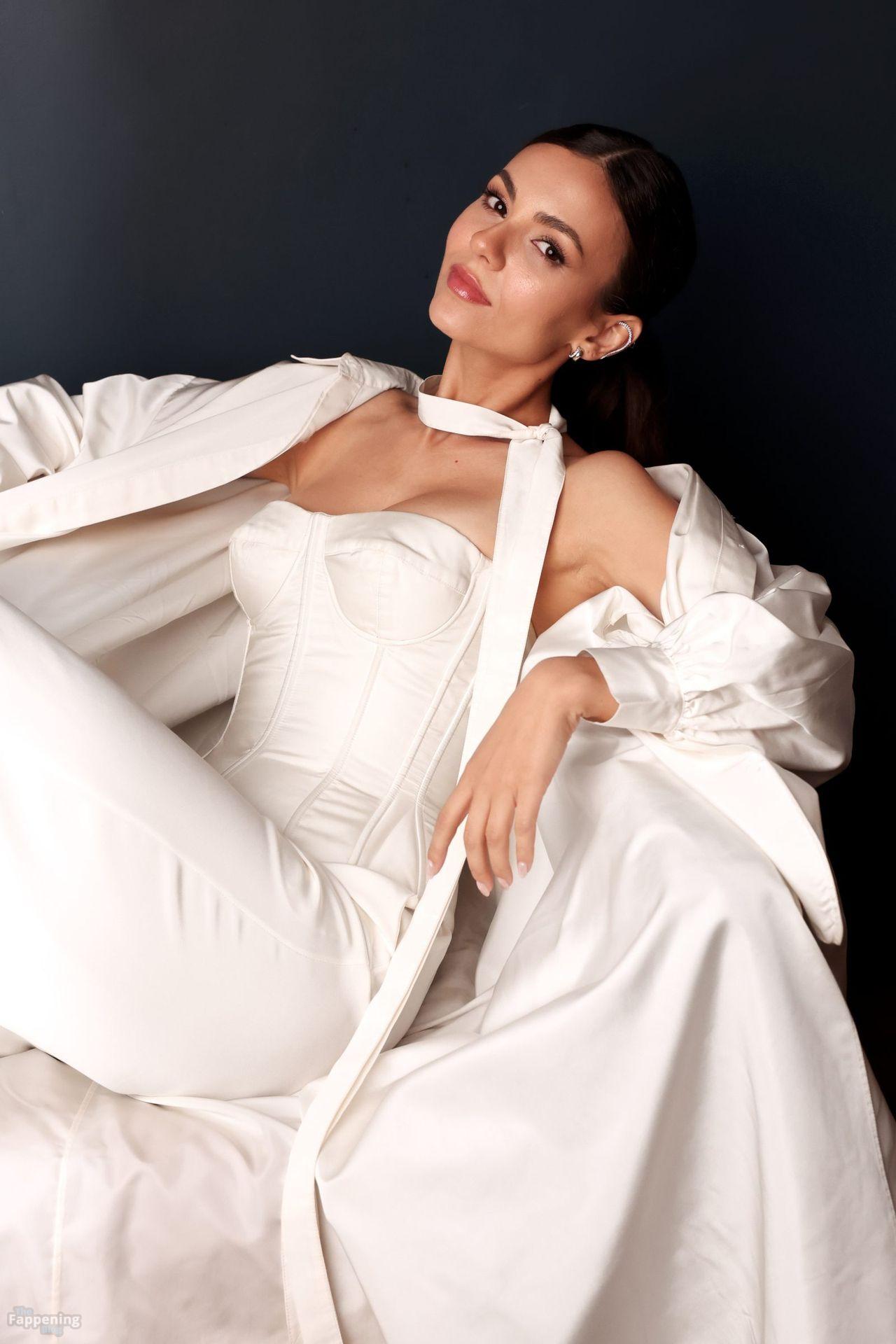 Victoria Justice foi fotografada na Celebração do Oscar Women in Film, posando com um look de espartilho branco que destacou suas curvas.