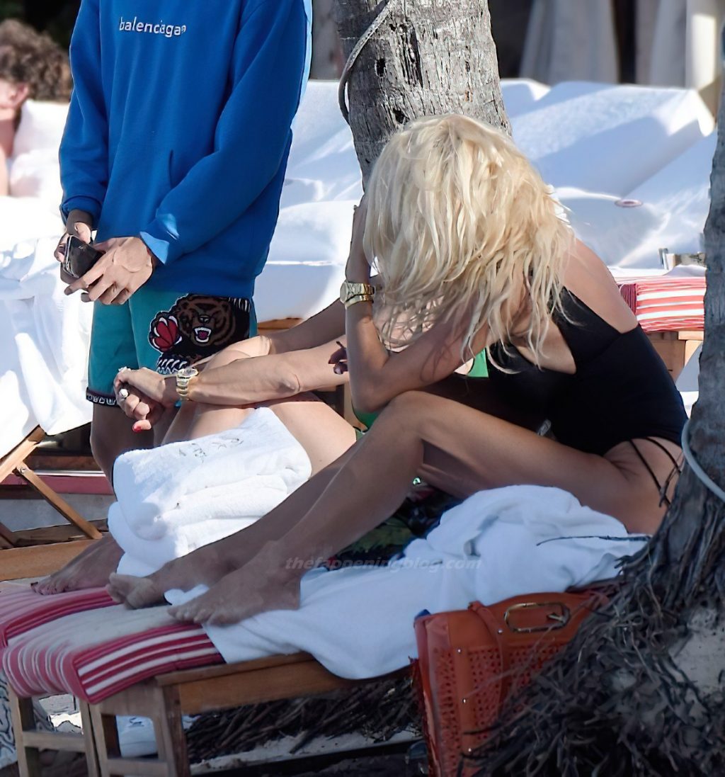 Alexandre Grimaldi-Coste parece estar incondicionalmente sob o feitiço dos incríveis seios e bumbum da modelo sueca Victoria Silvstedt, vestindo um maiô preto sexy, aproveitando o dia em St Barths, 01/05/2021.