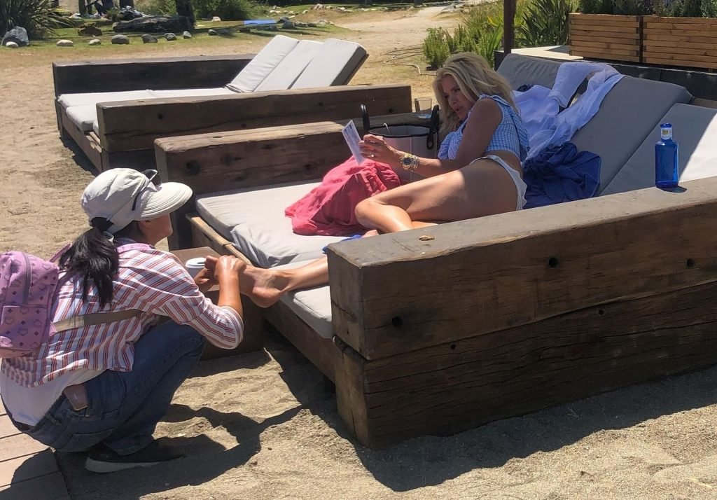 A modelo sueca Victoria Silvstedt parece sexy enquanto sofre com o calor espanhol, 07/06/2019.