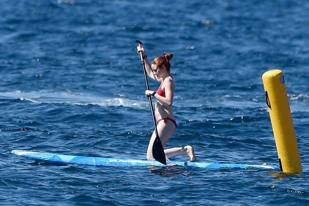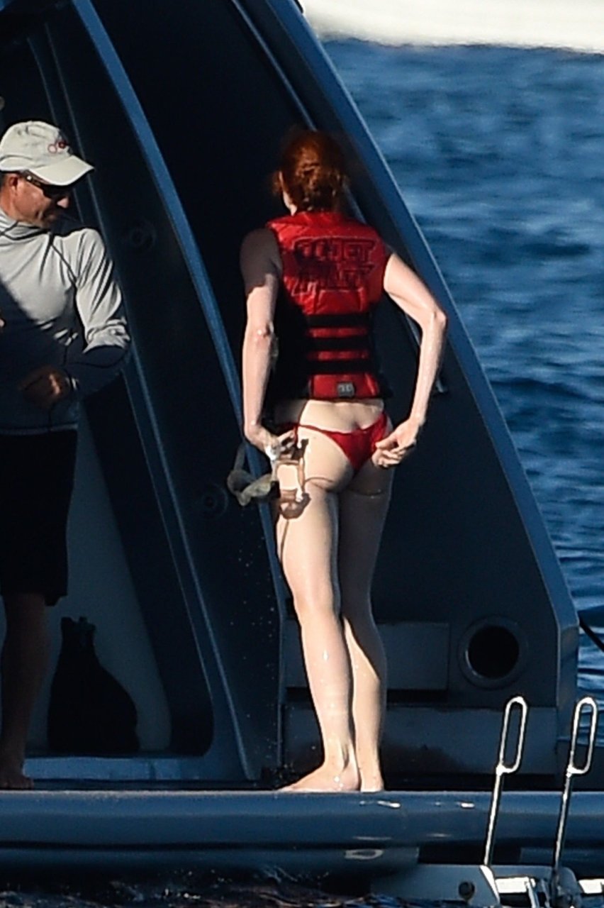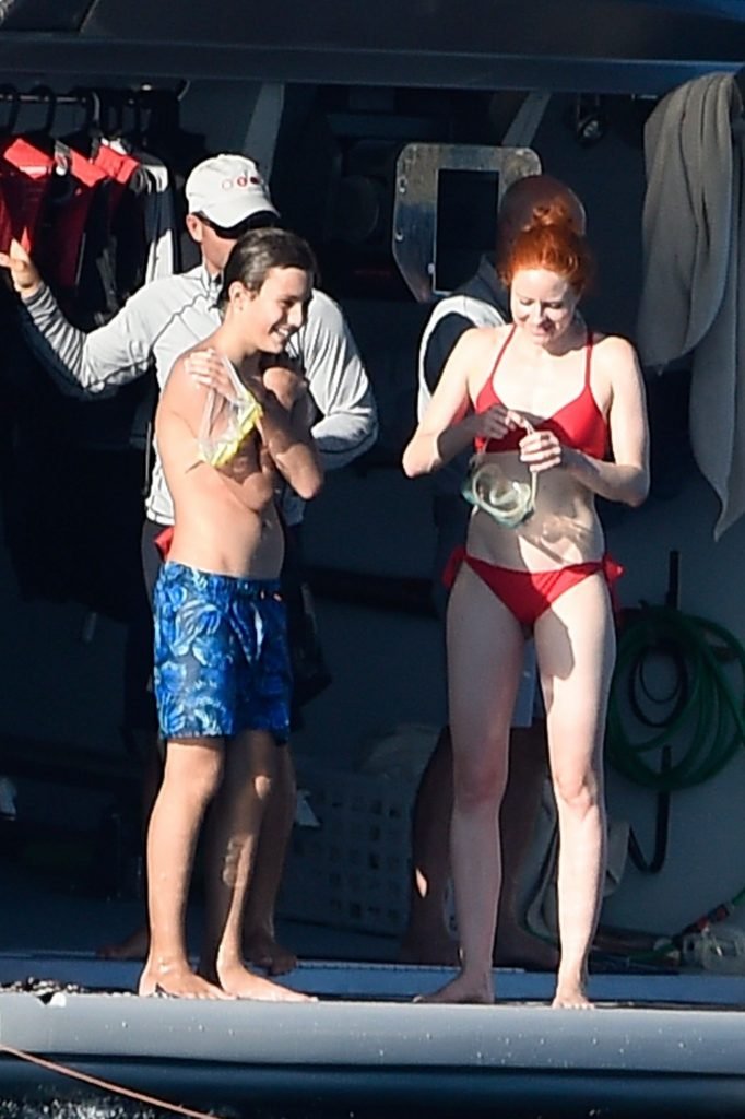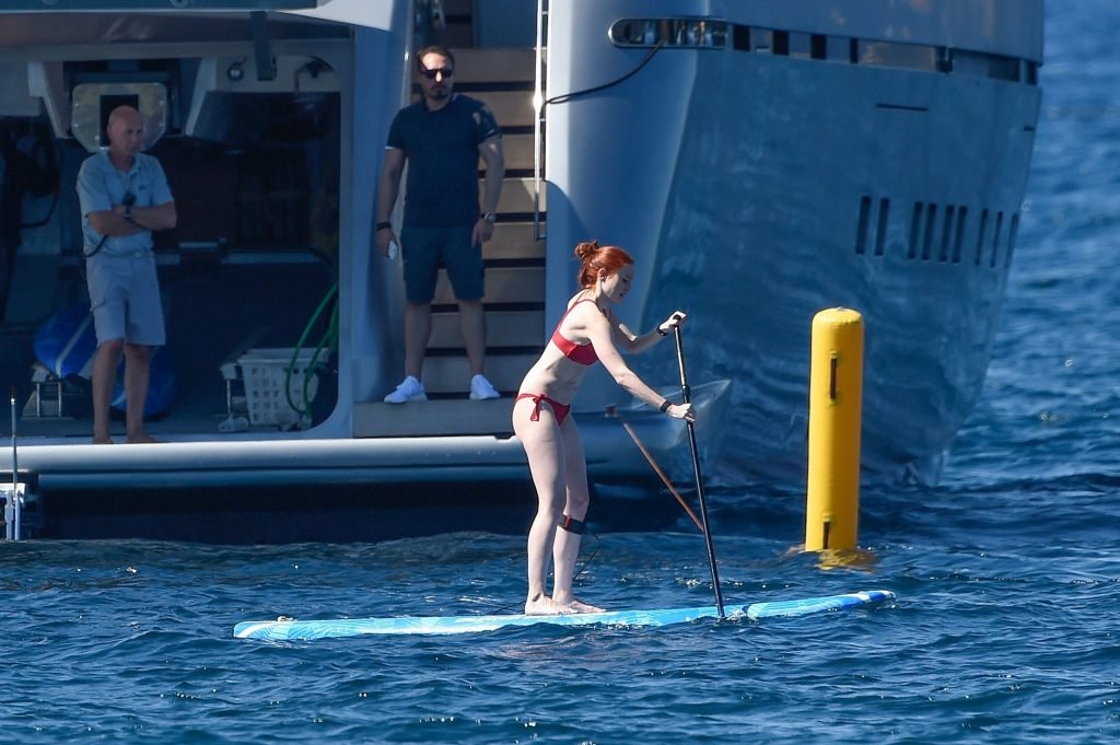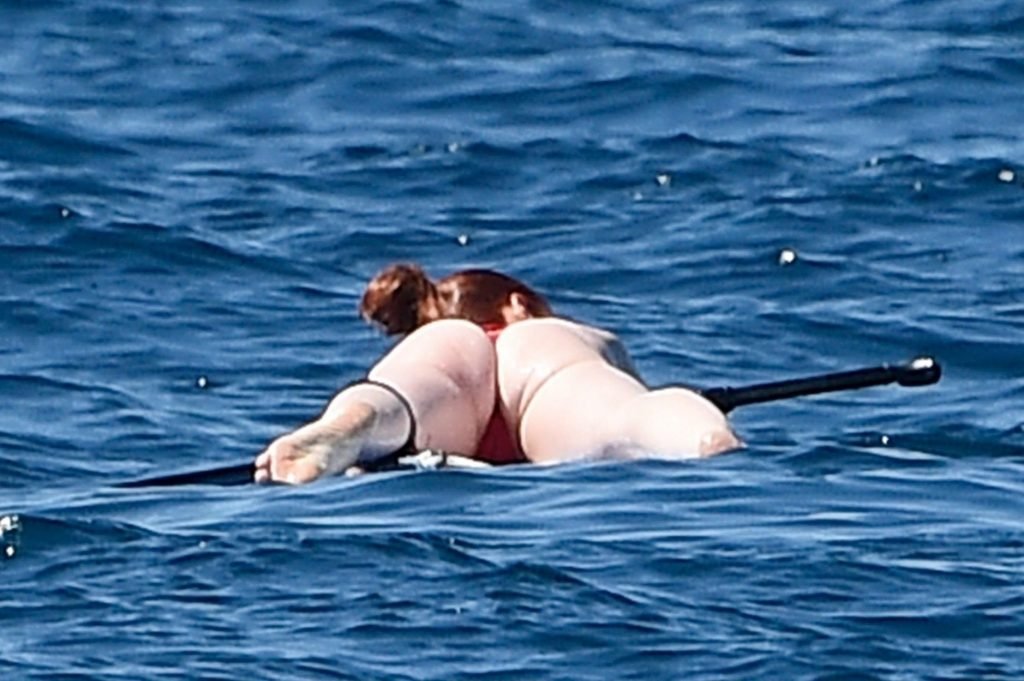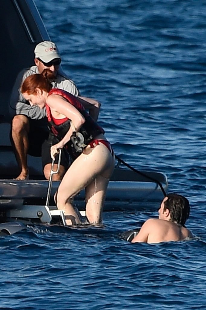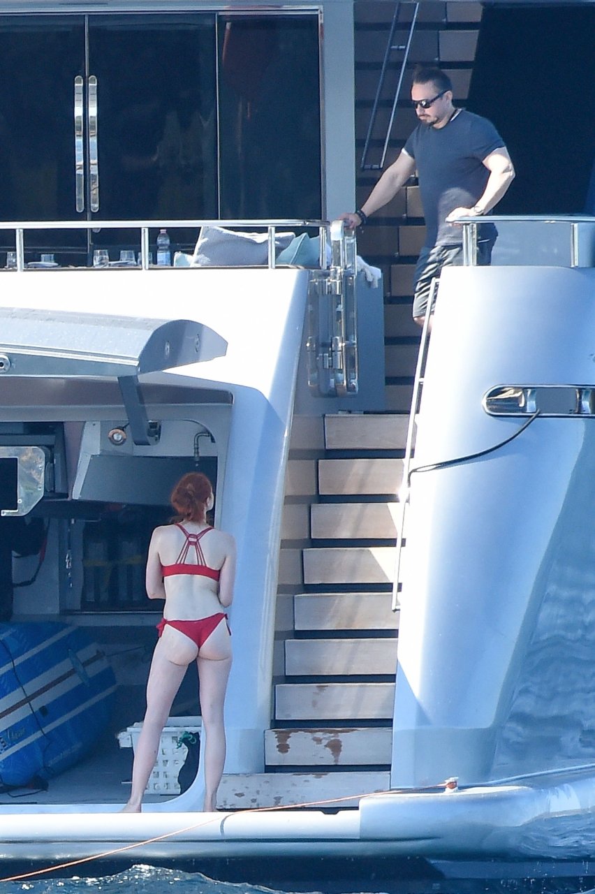 Herdeira milionária Swarovski Victoria Swarovski e a vencedora do concurso de top model alemã Barbara Meier aproveitando a vida de ricos e famosos em um iate na Sardenha, 24/08/2017.