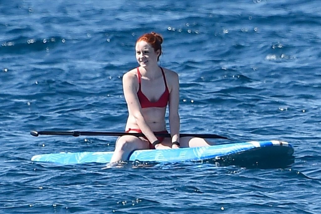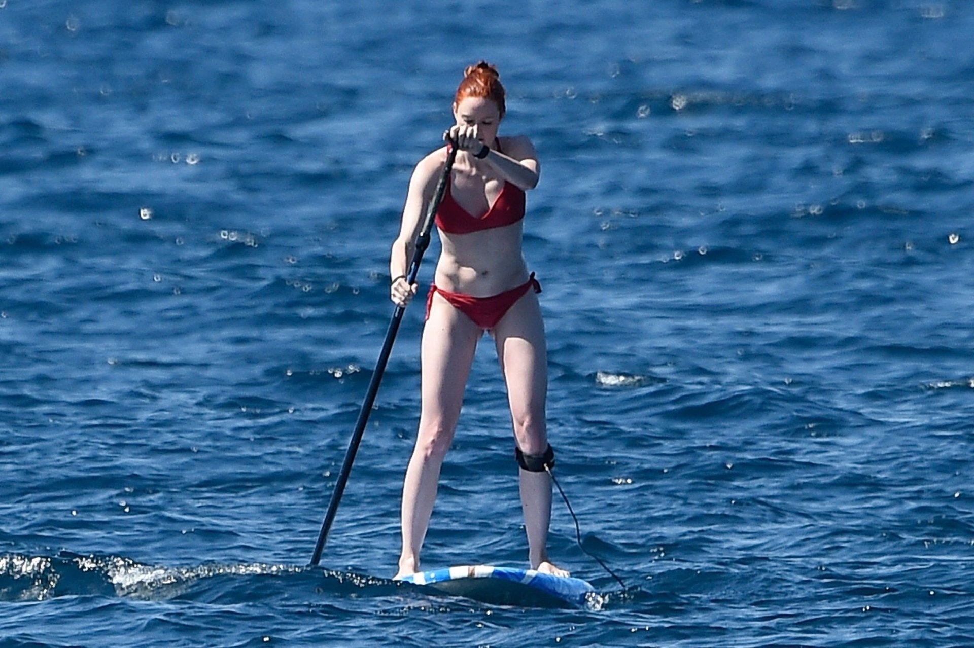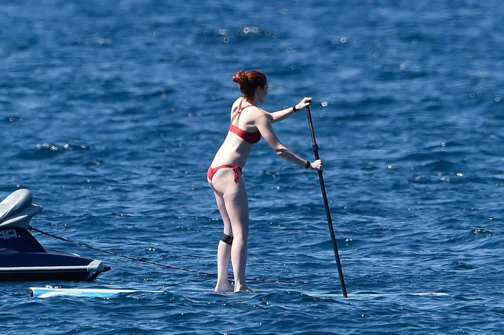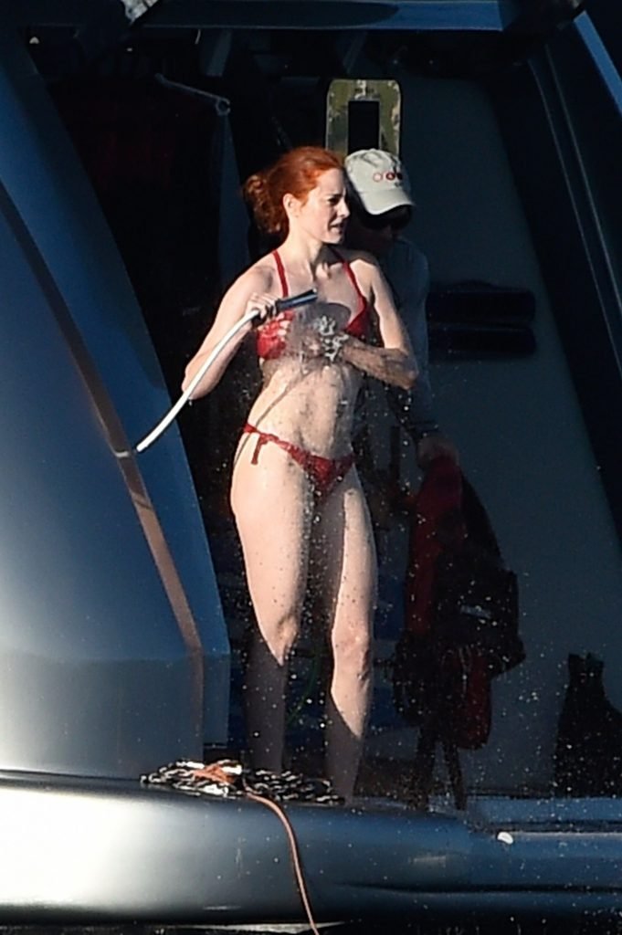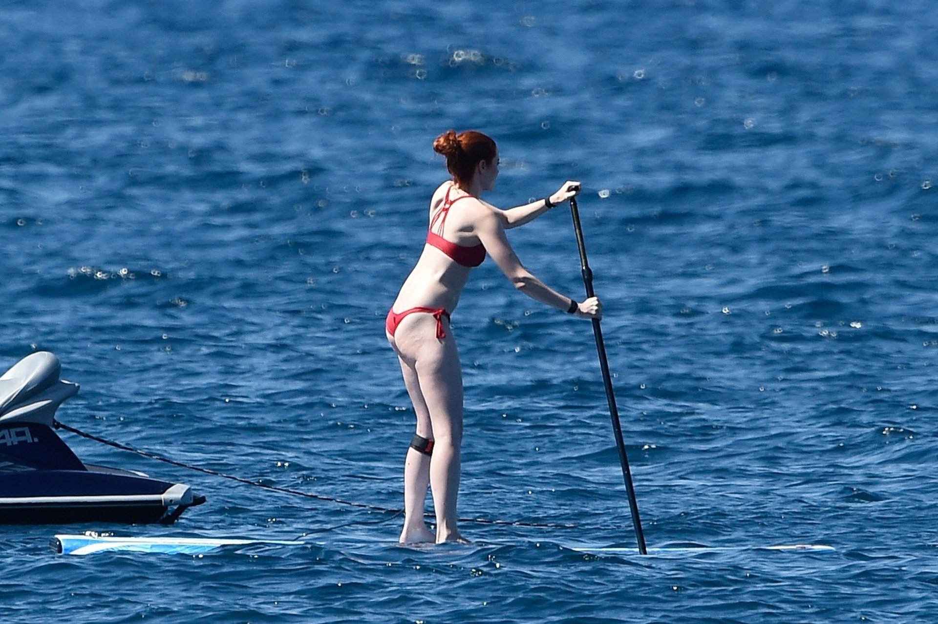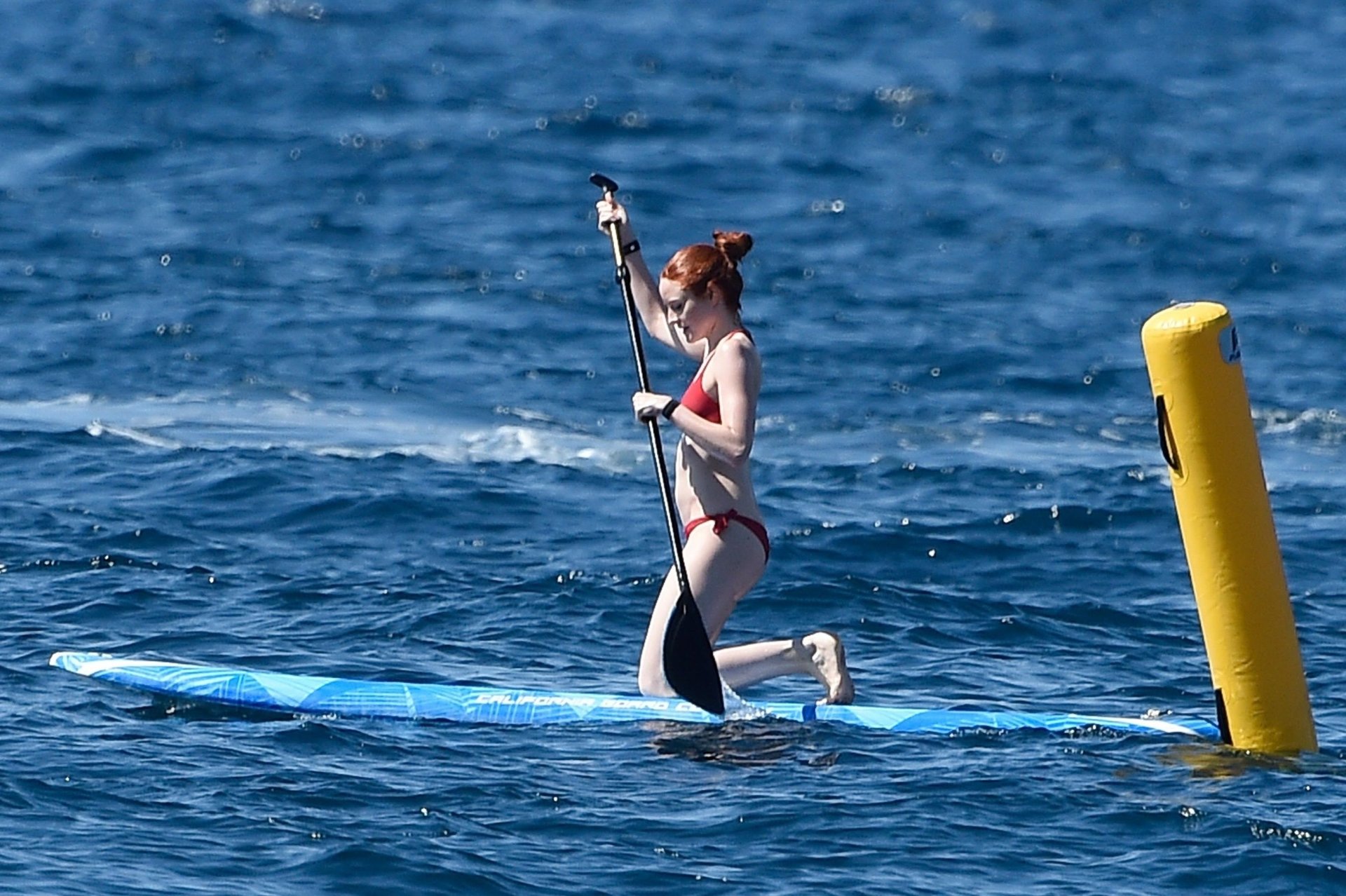 Herdeira milionária Swarovski Victoria Swarovski e a vencedora do concurso de top model alemã Barbara Meier aproveitando a vida de ricos e famosos em um iate na Sardenha, 24/08/2017.