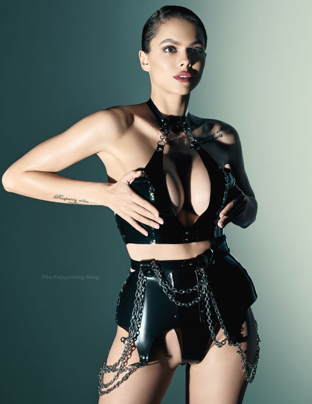 A deslumbrante russa Viktoria “Viki” Odintcova posa com lingerie de látex e topless para a câmera de Amer Mohamad. Ela cobriu seus seios com as mãos, mas você pode ver um pouco de sua pele na galeria abaixo.