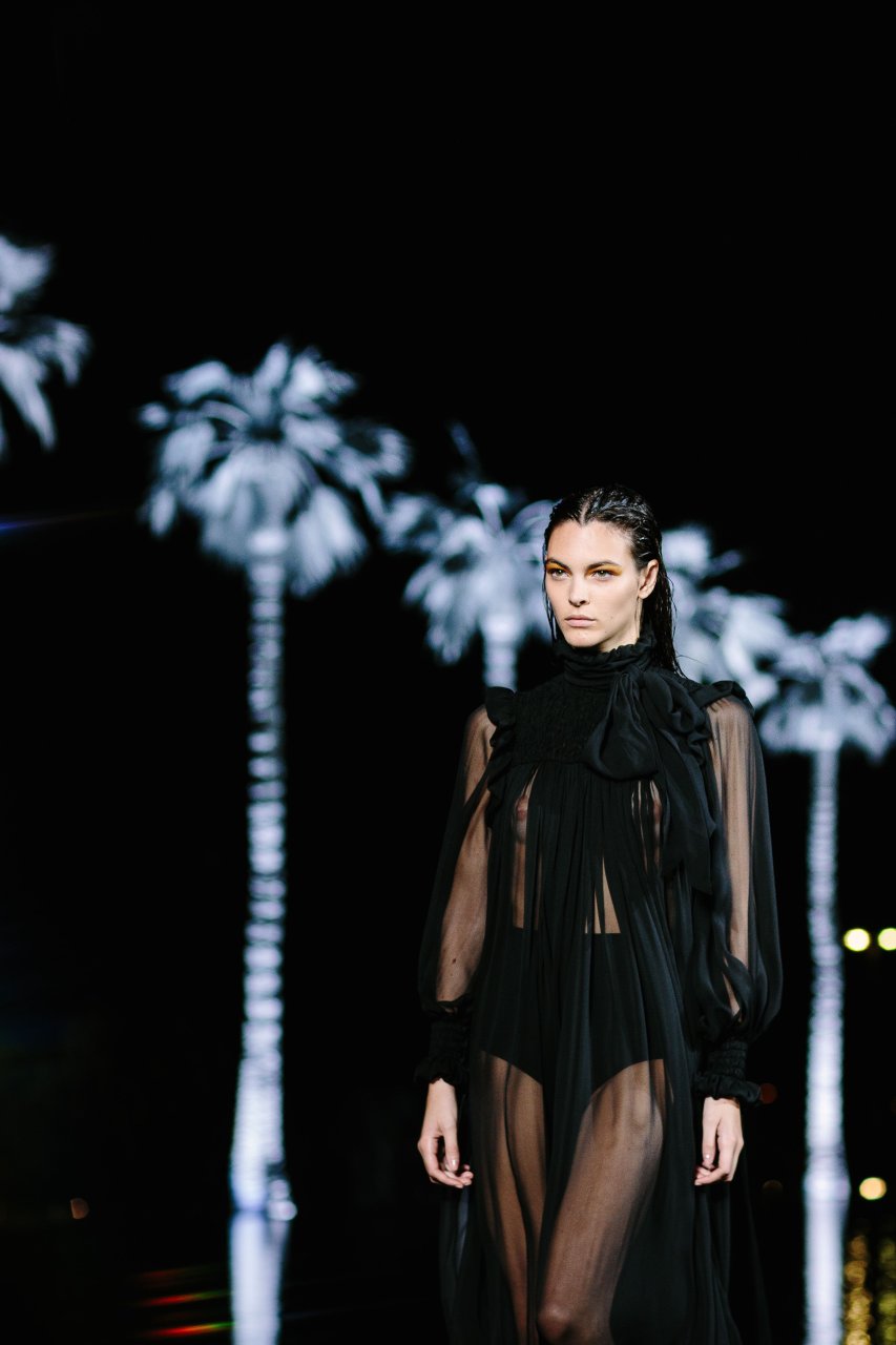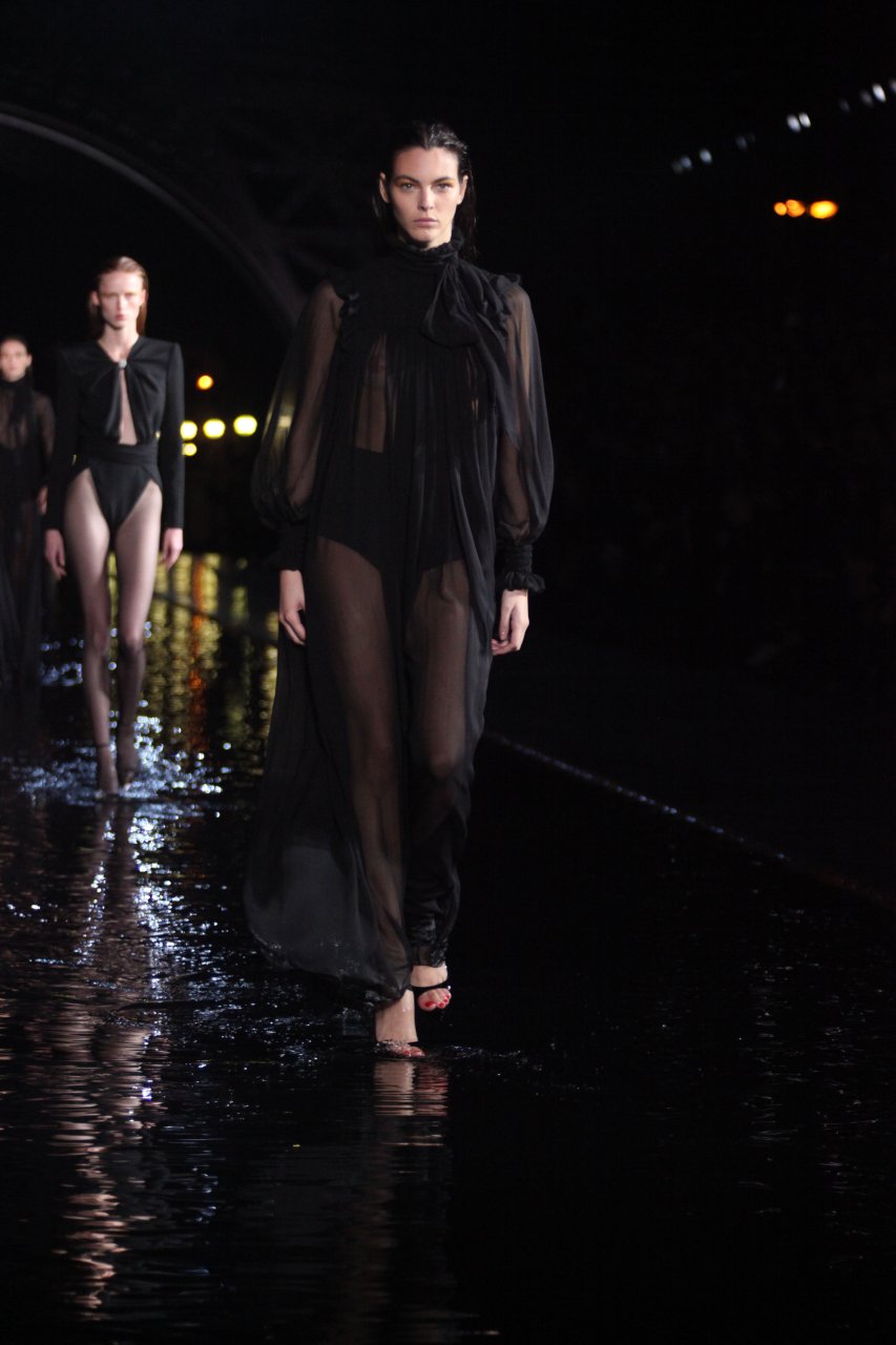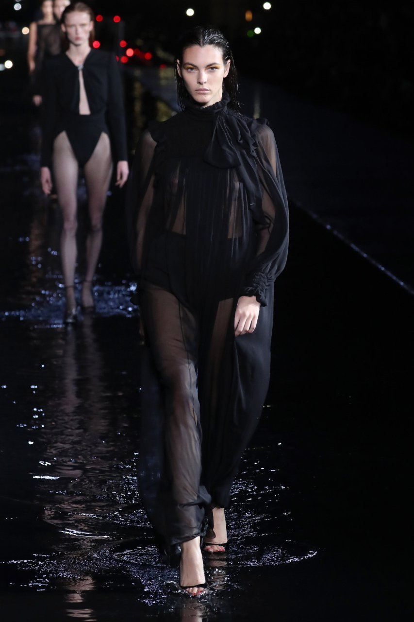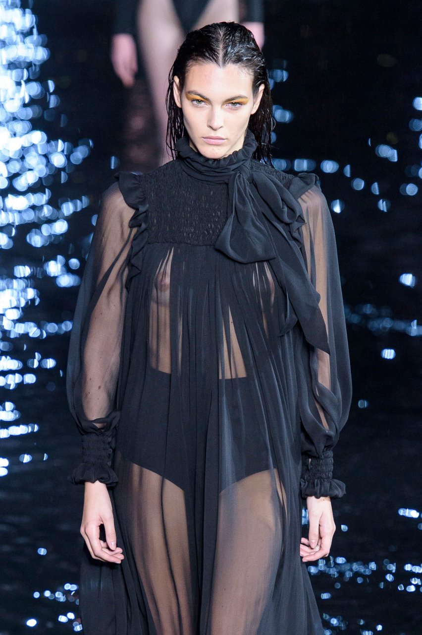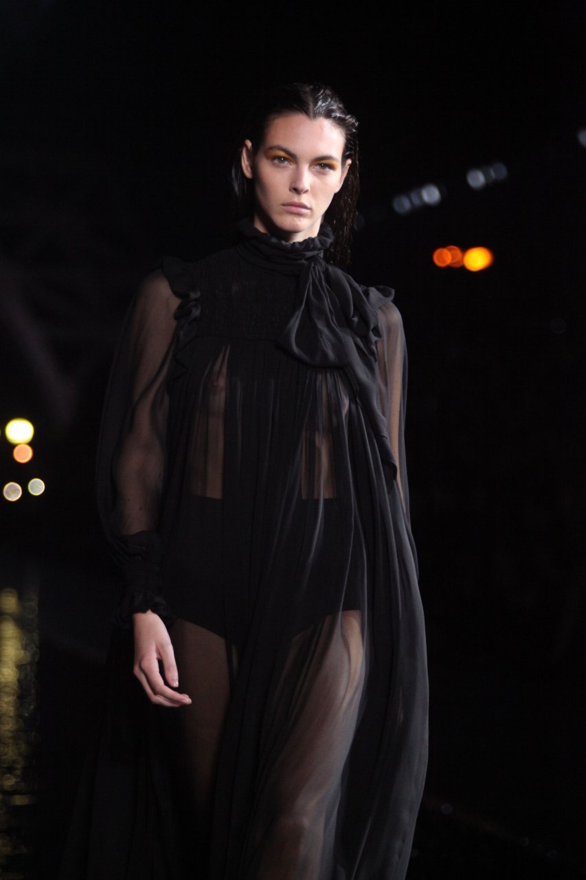Model Vittoria Ceretti (20) mostrou seus pequenos seios no último desfile de moda Saint Laurent Primavera/Verão 2019 durante a Semana de Moda de Paris, 25/09/2018.