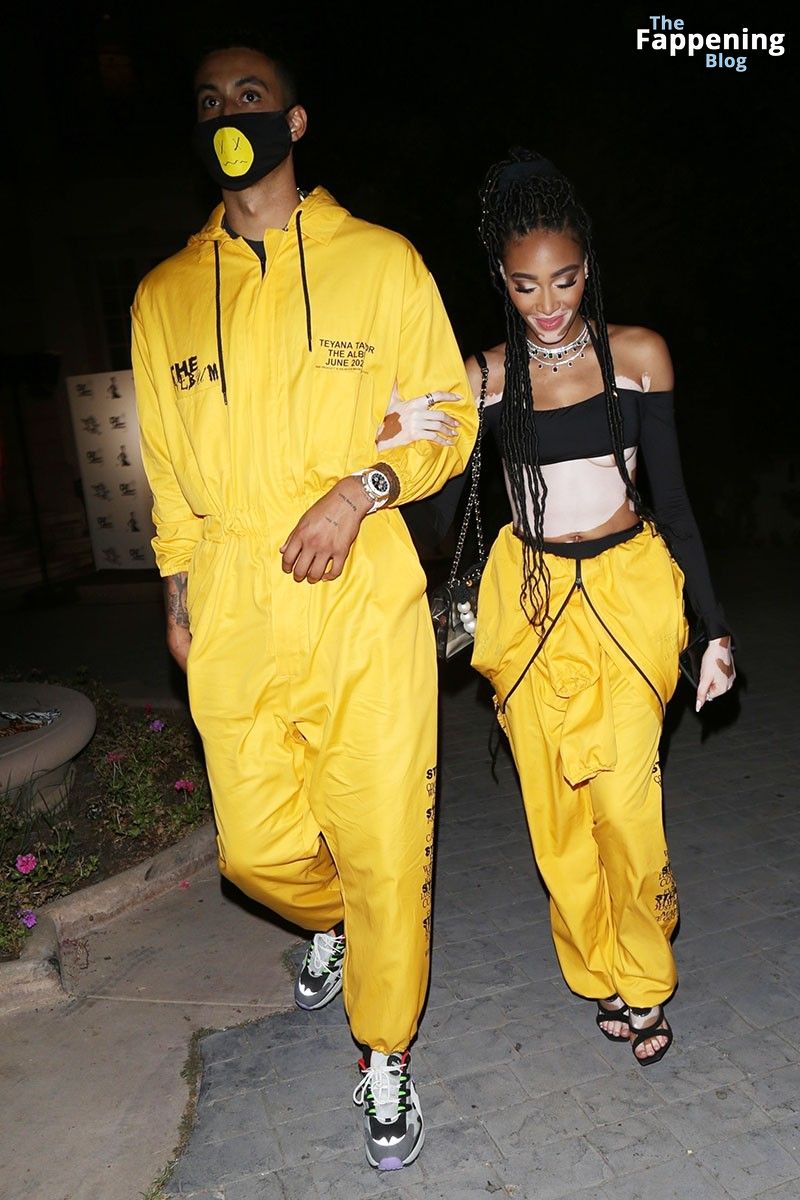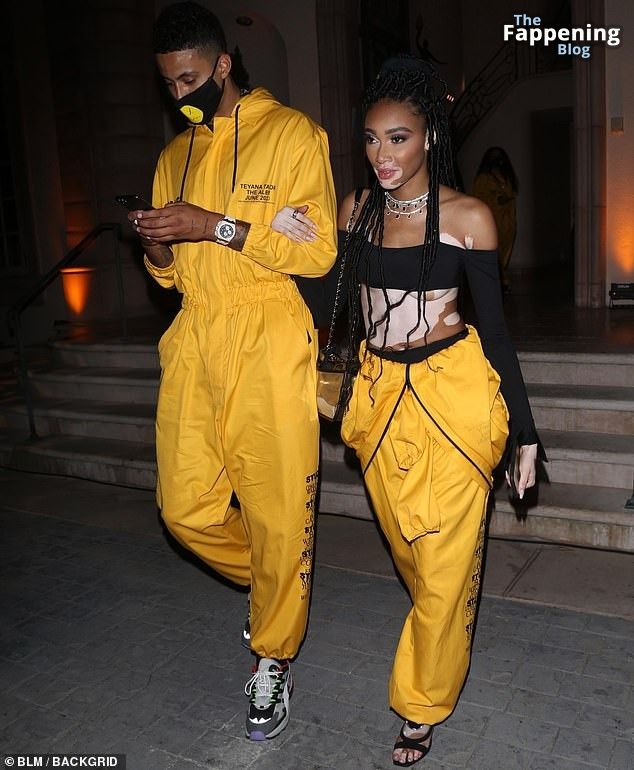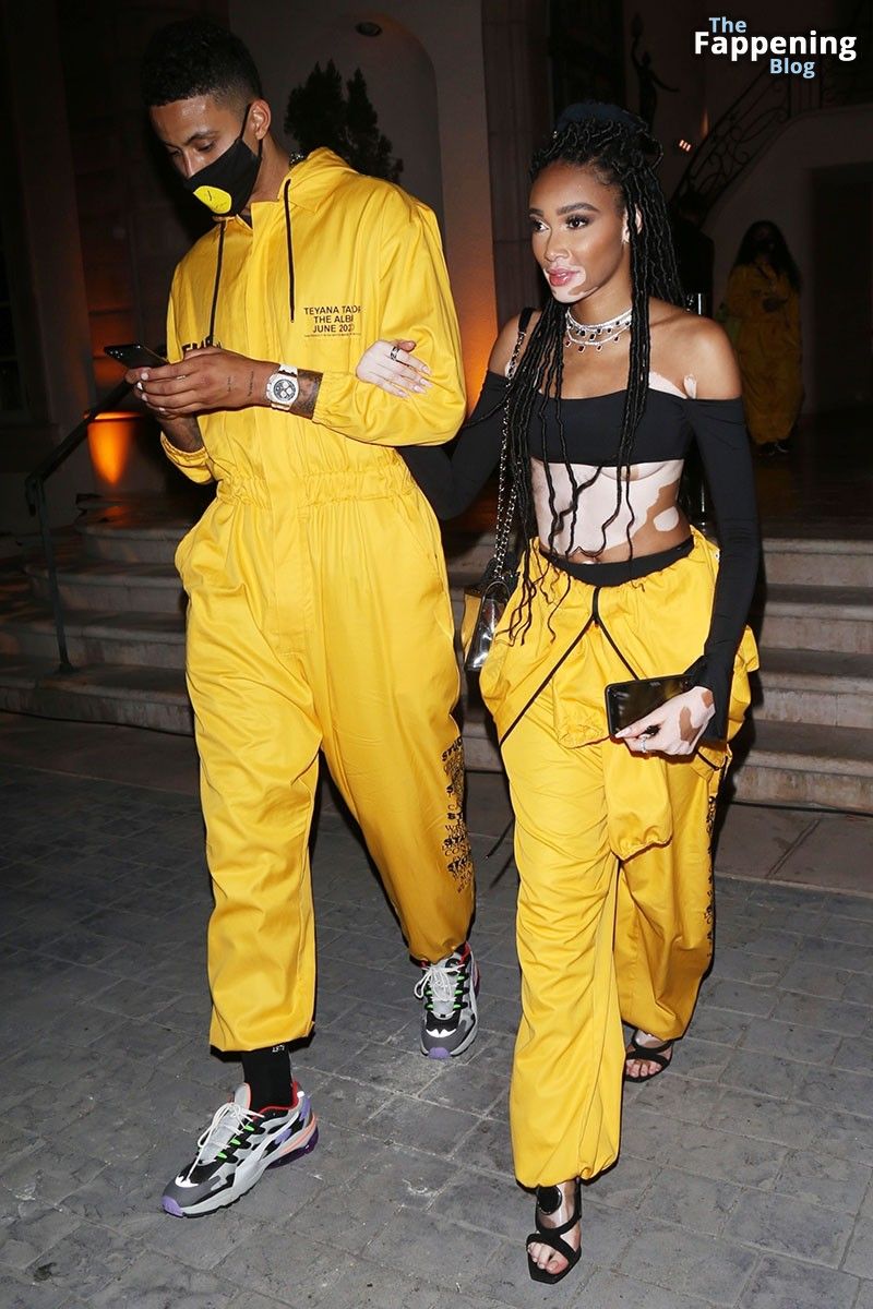 A modelo Winnie Harlow e o jogador de basquete Kyle Kuzma foram juntos a uma festa para celebrar o lançamento do álbum “The Album” de Teyana Taylor. Eles estavam vestidos com algumas peças temáticas criadas especificamente para a estreia – macacões amarelos de proteção química com inscrições legais nas mangas e nas pernas.