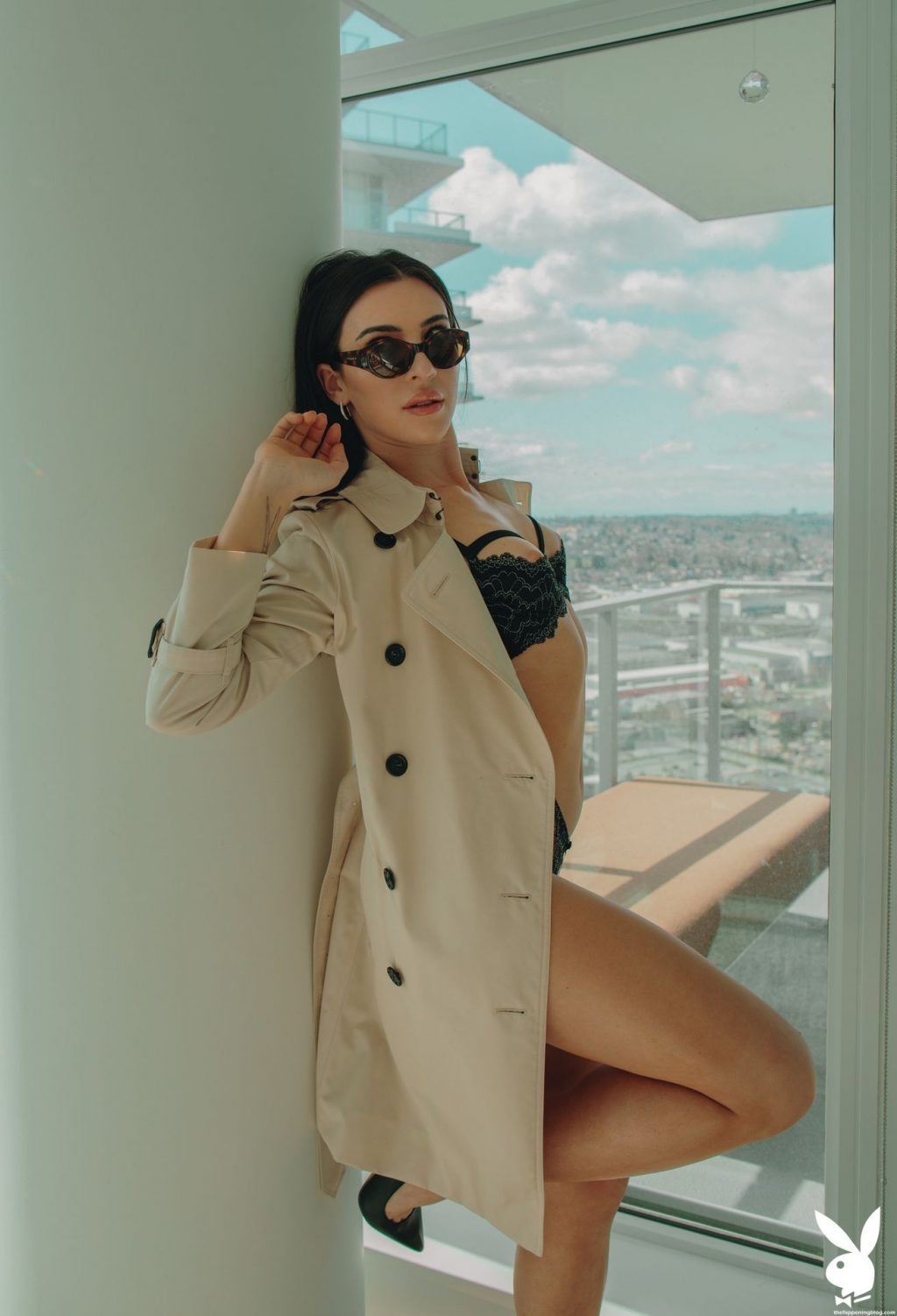 A modelo nua Xris Kovtos exibe seus pequenos seios com grandes mamilos em um novo ensaio fotográfico para Playboy Plus (2021).