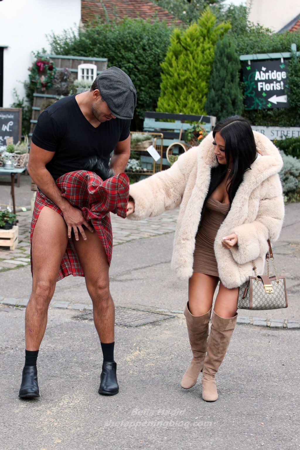 A estrela voluptuosa de reality show Yazmin Oukhellou é vista nas filmagens do programa de TV “The Only Way is Essex” em Essex, 12/10/2020.