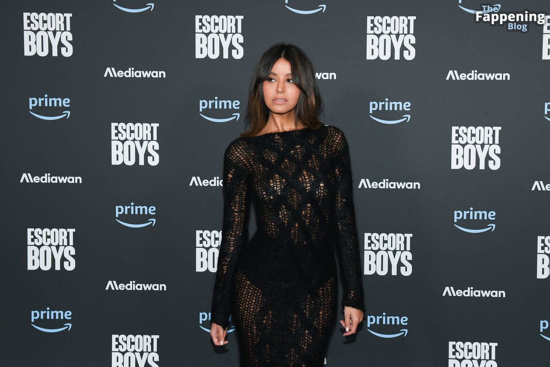 Confira Zahia Dehar em um vestido transparente enquanto ela rouba a cena na estreia de “Escort Boys” da Prime Video no UGC Cine Cite des Halles em Paris, 18/12/2023.