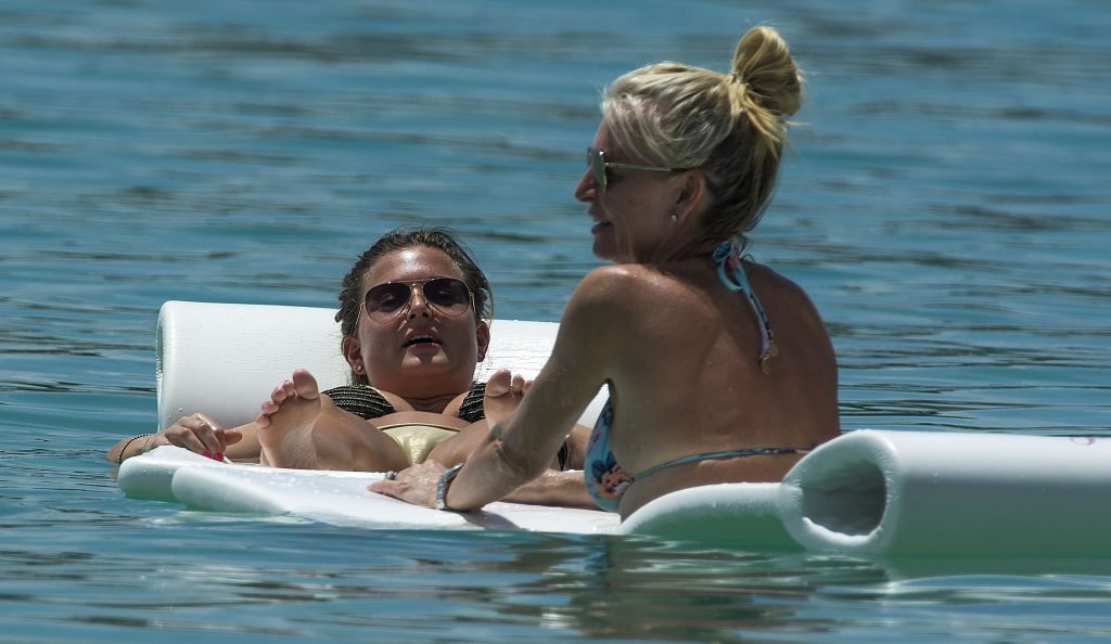 Ex-Miss Grã-Bretanha voluptuosa Zara Holland e sua família são vistos na praia em Barbados, 22/07/2017.
