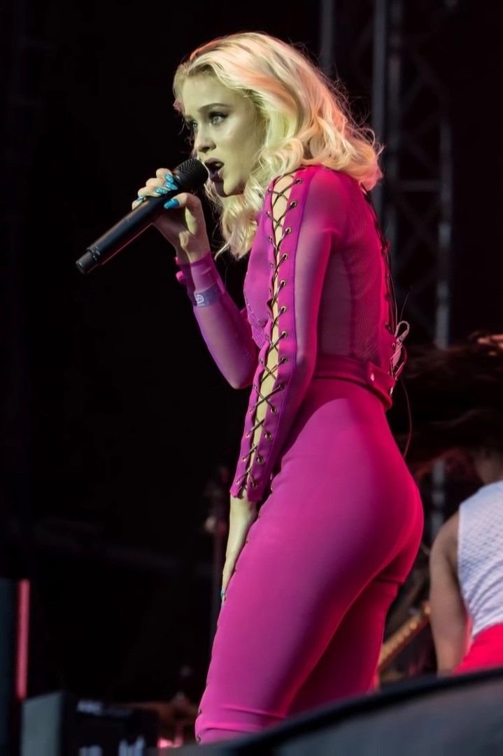 Zara Larsson se apresenta no palco com um body rosa – Bravalla Festival 2016, Norrköping, 30/07/2016. Zara Larsson é uma cantora e compositora sueca. Idade: 18 (16 de dezembro de 1997).