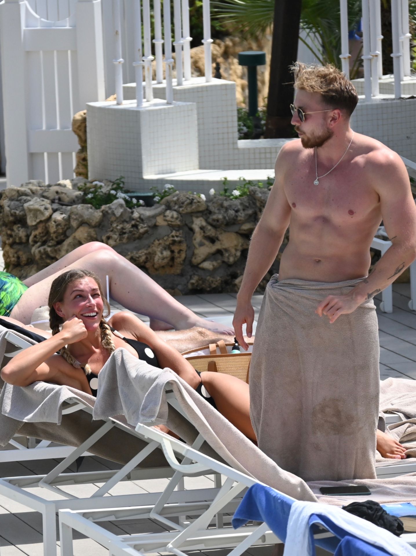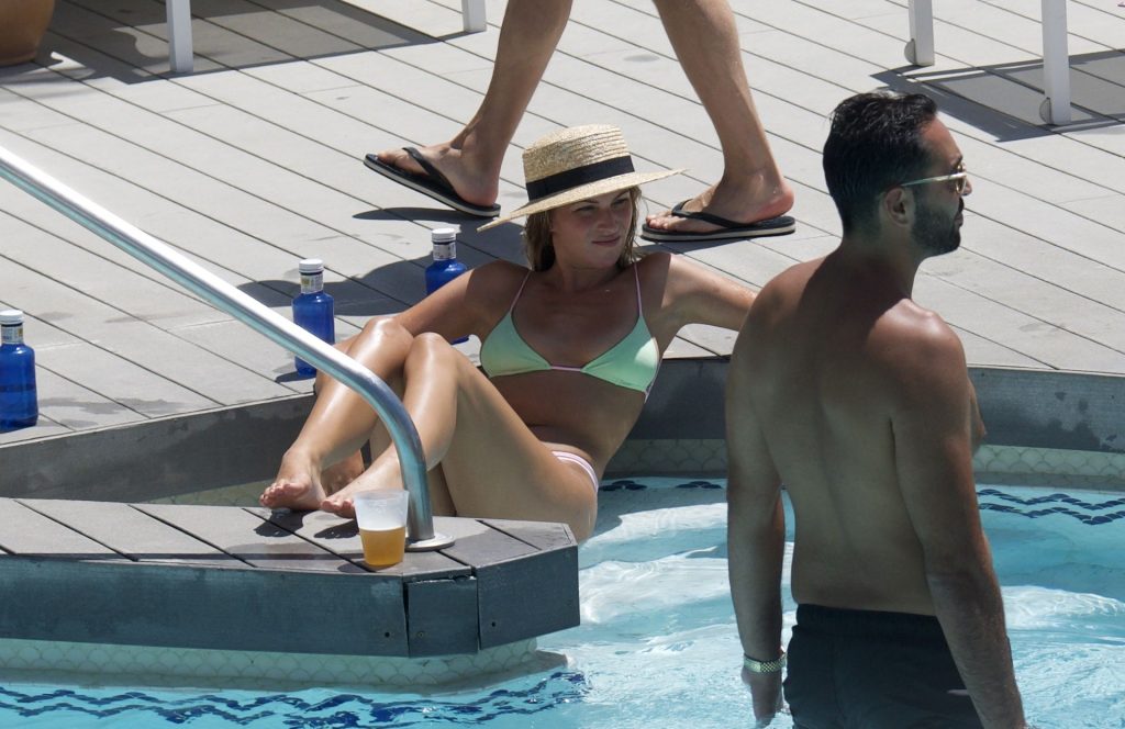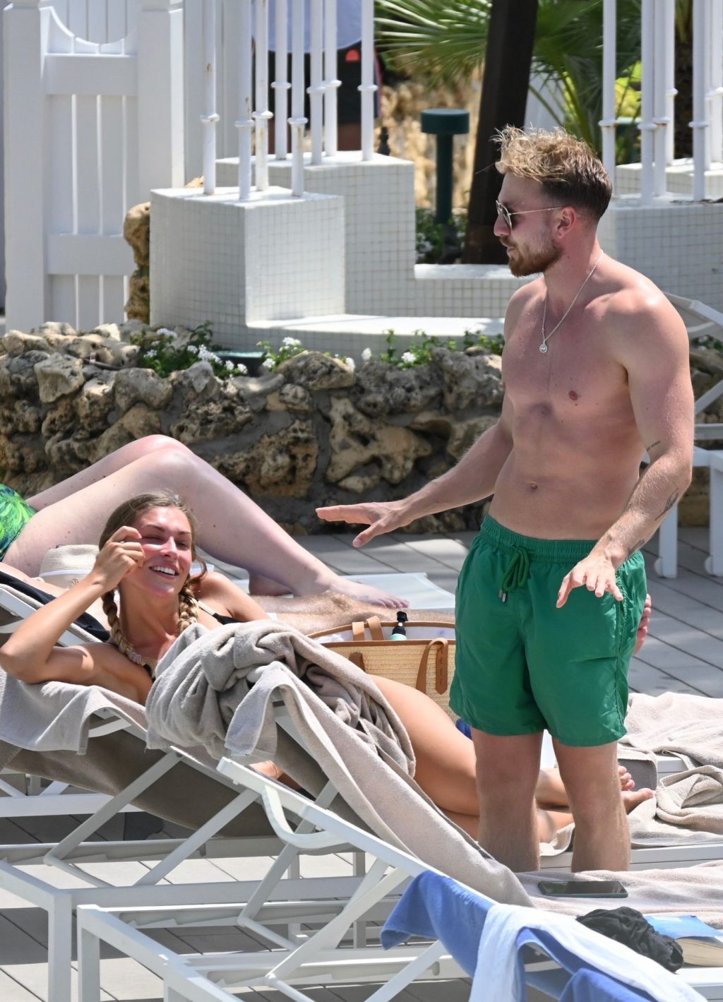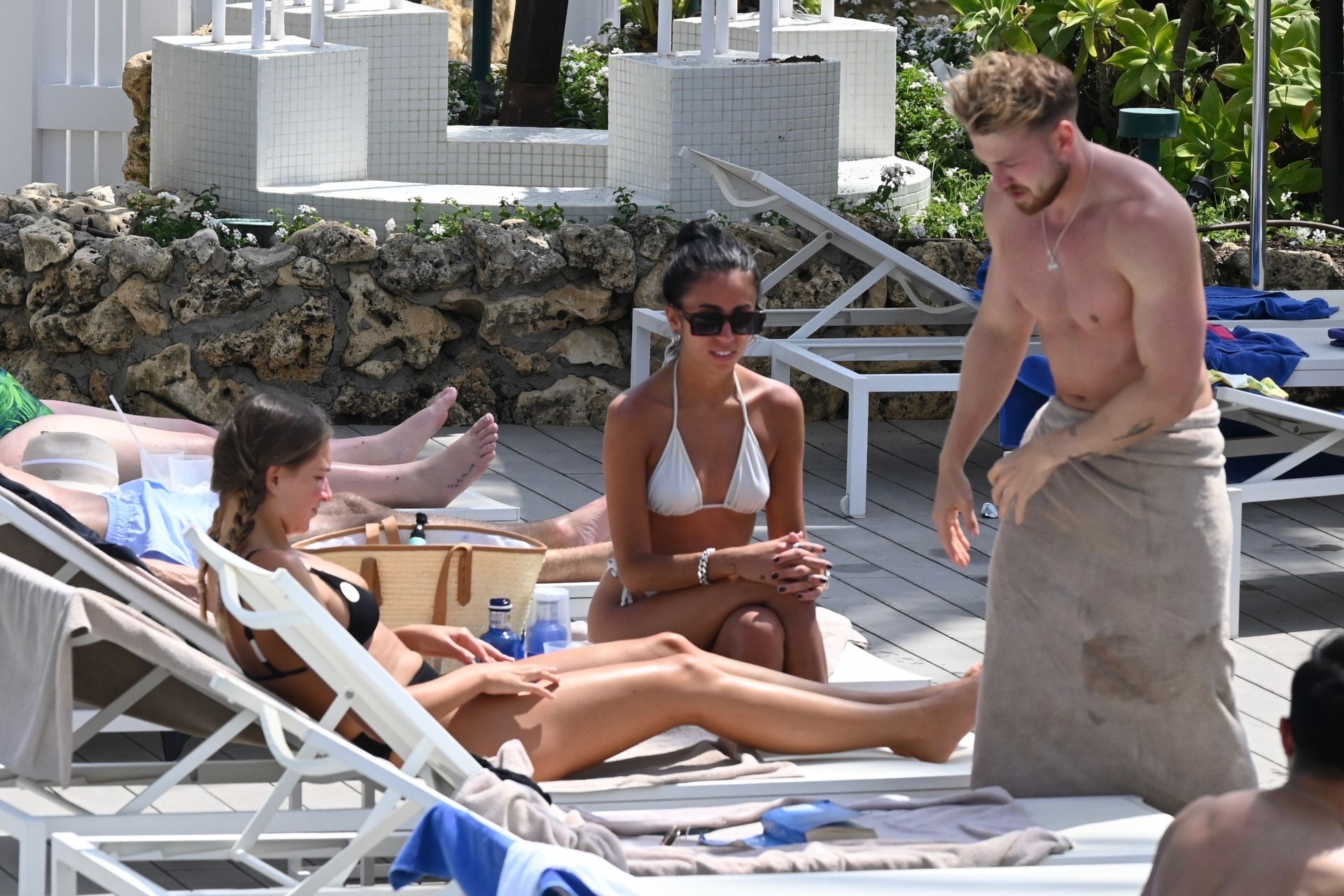 Zara McDermott exibe seu corpo sensacional de biquíni enquanto relaxa em uma piscina de hotel em Marbella, 07/10/2020.