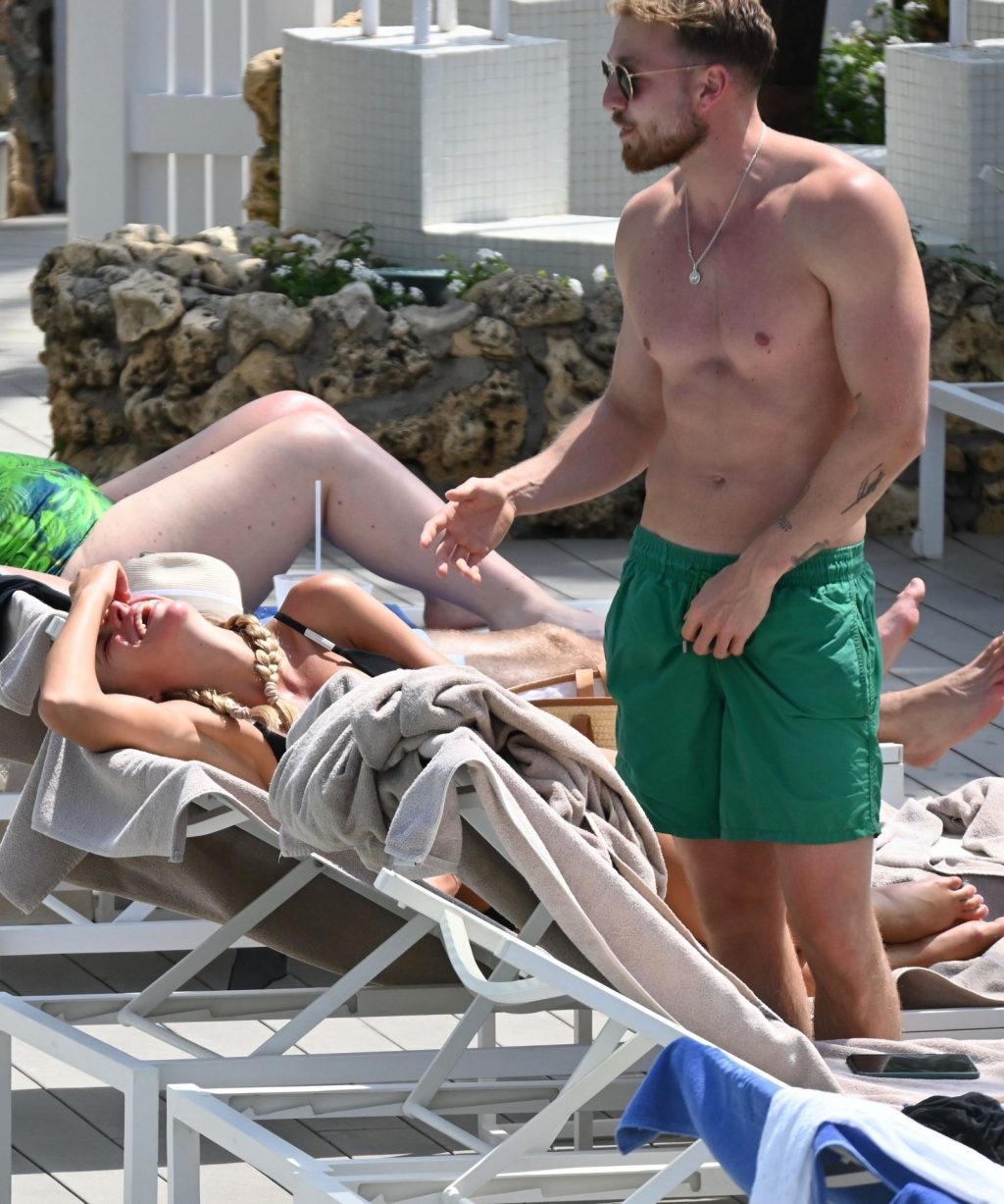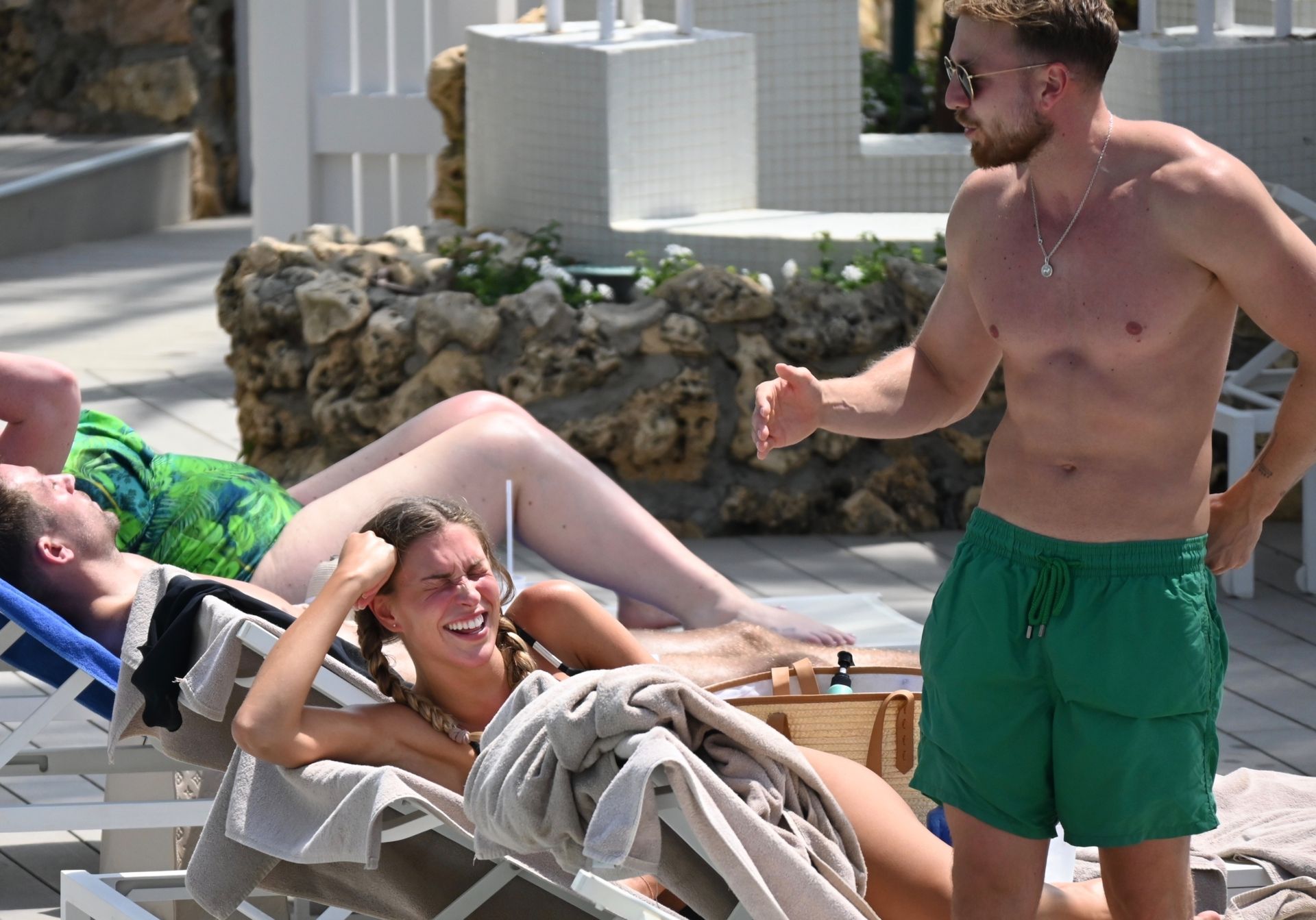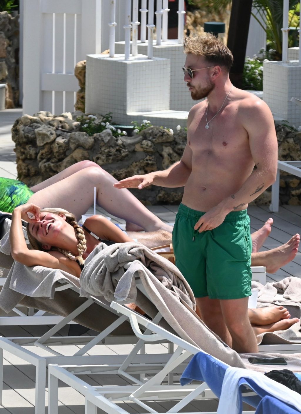 A estrela do Fappening e Love Island, 23, parecia deslumbrante enquanto aproveitava o sol em um biquíni verde e rosa. Ela foi vista passando protetor solar nas costas do namorado, a estrela de Made In Chelsea Sam Thompson, 27. Recentemente, Zara foi alvo de críticas por parte de pessoas que zombaram de sua magreza após a perda de peso. Mas ela rapidamente deixou o drama para trás compartilhando fotos desafiadoras de suas férias na Espanha.