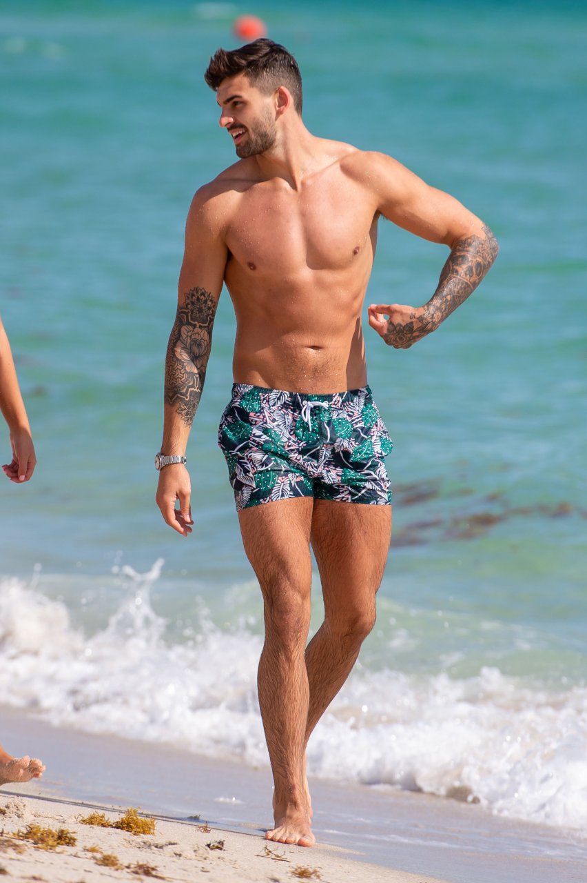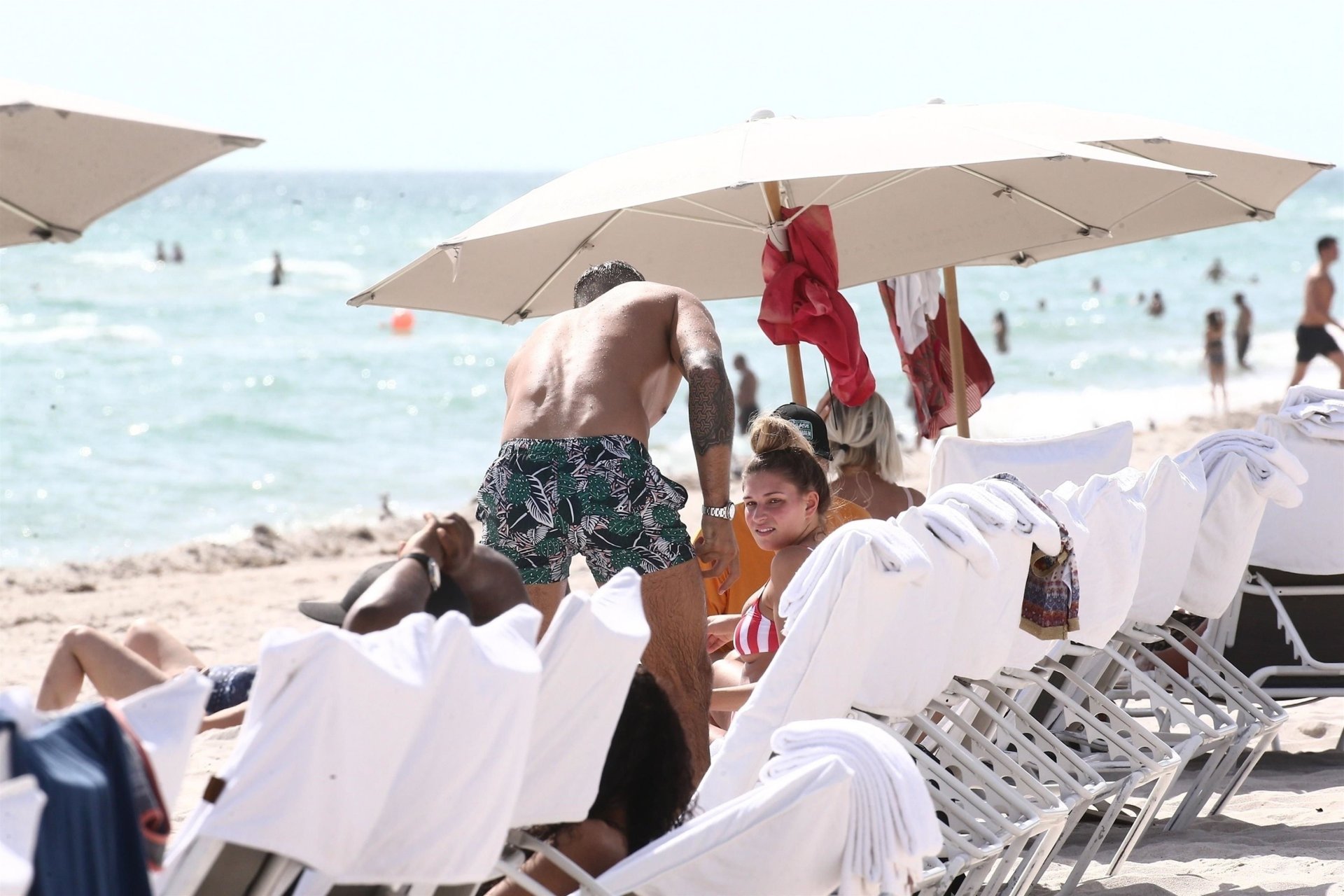 Love Island’s Zara McDermott e Adam Collard exibem seus corpos na praia enquanto aproveitam seu primeiro dia na praia em Miami, 11/06/2018.