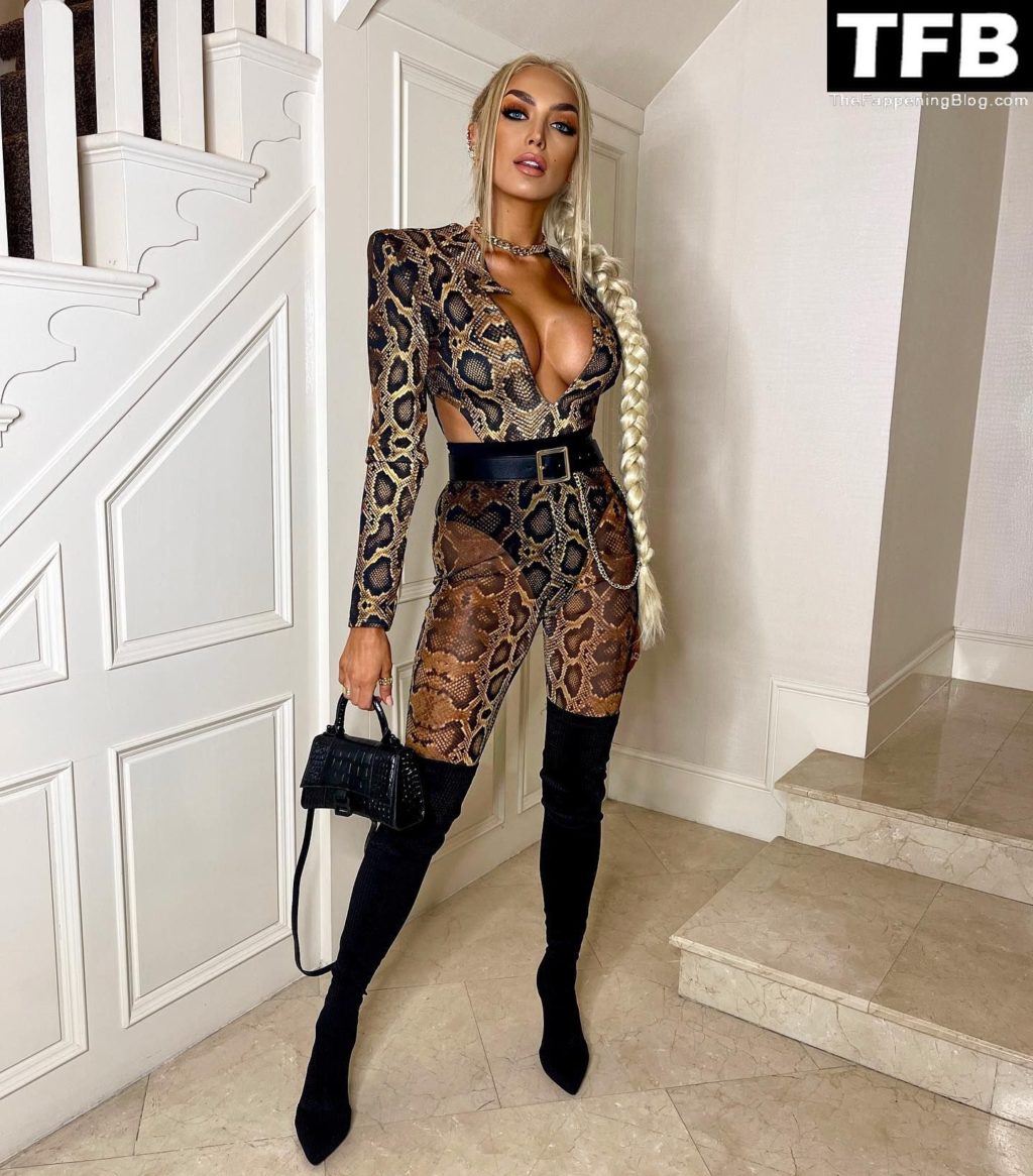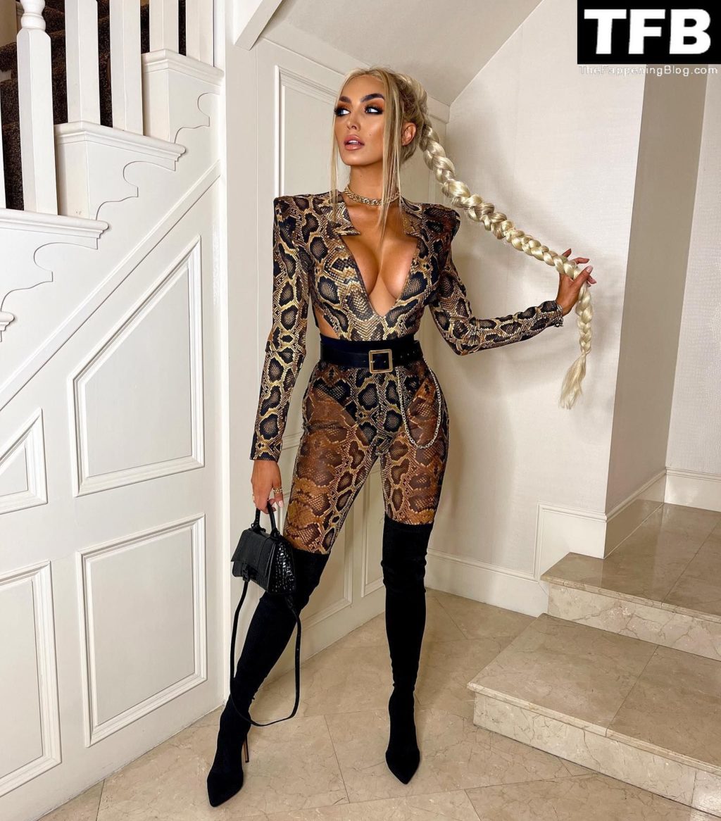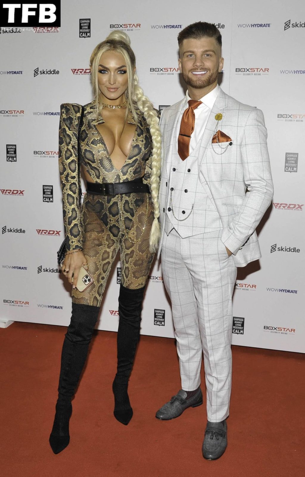 Reality TV e estrela do OF ZaraLena Jackson é fotografada com outras pessoas no tapete vermelho do Evento Box Star em Manchester, 10/03/2021.