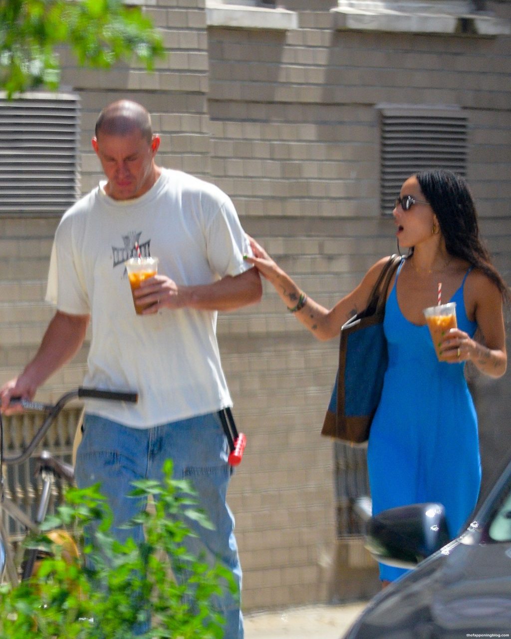 A dupla ficou próxima enquanto parecia dar boas risadas durante um passeio para tomar cafés gelados.