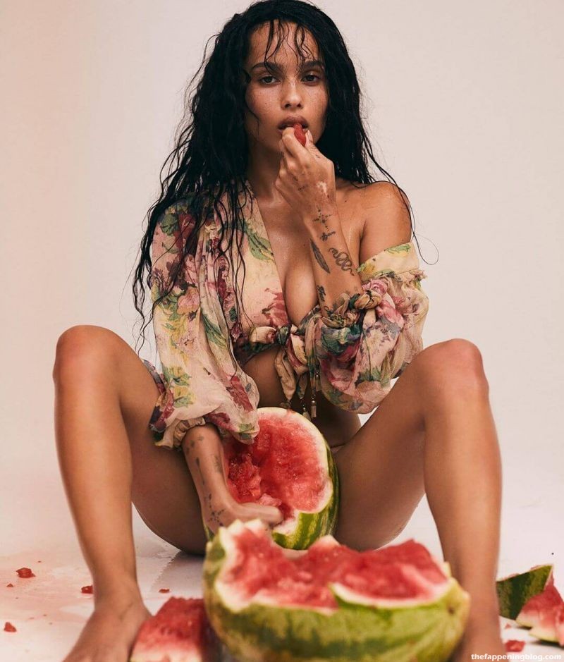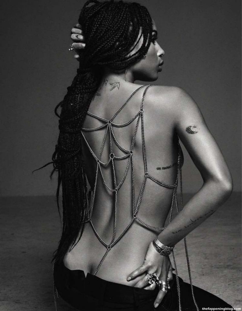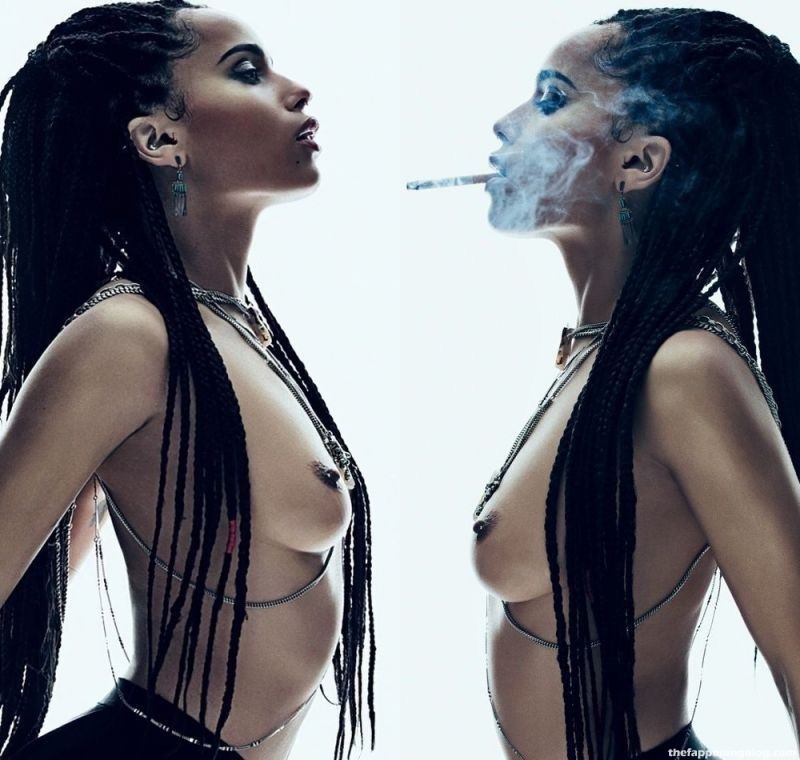 Confira a coleção nua de Zoe Kravitz. A atriz exibe seus pequenos seios nus, posa topless, mostra sua bunda nua e posa nua, mal cobrindo sua buceta. Aqui também estão algumas capturas de tela de seus filmes famosos com nudez.