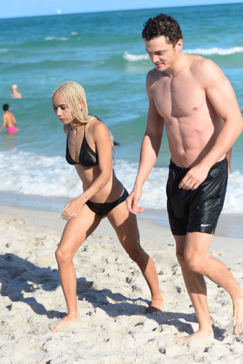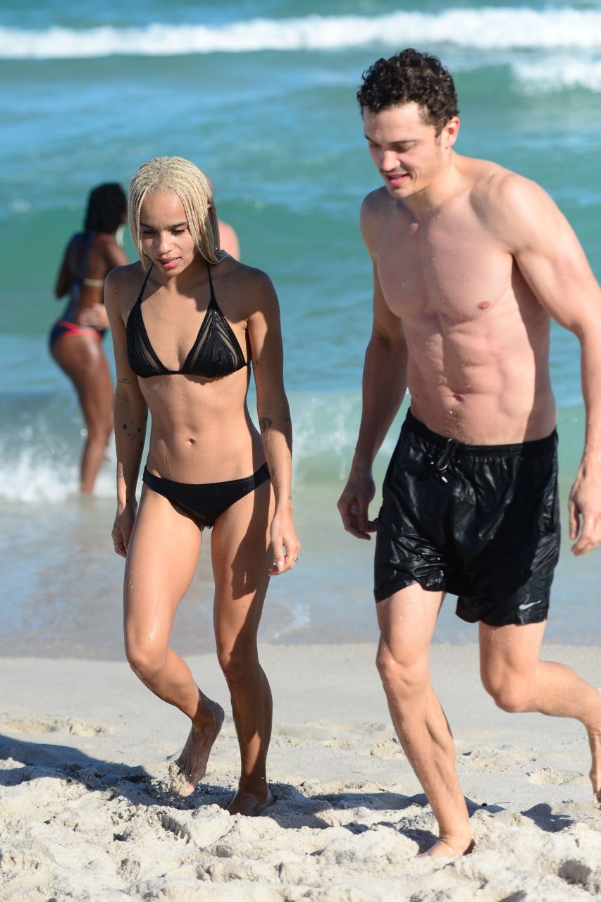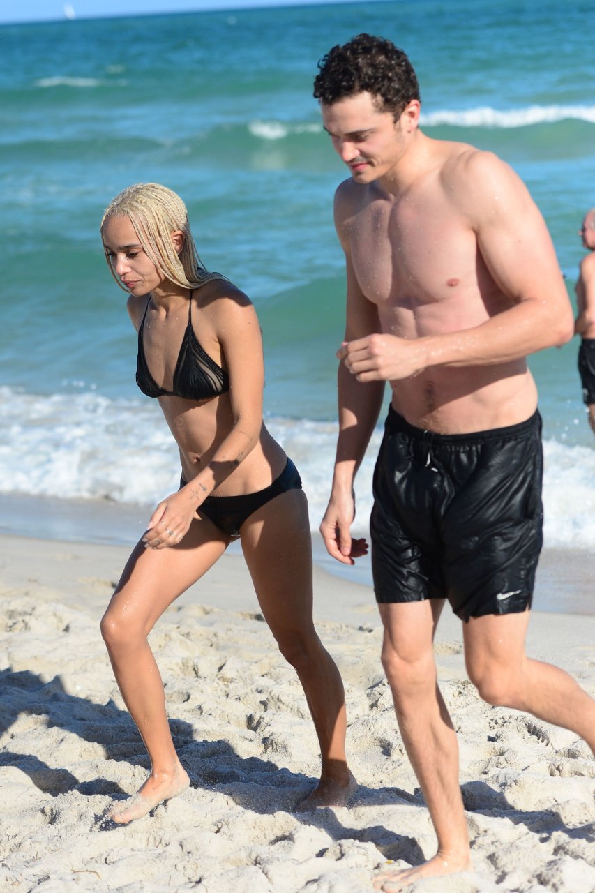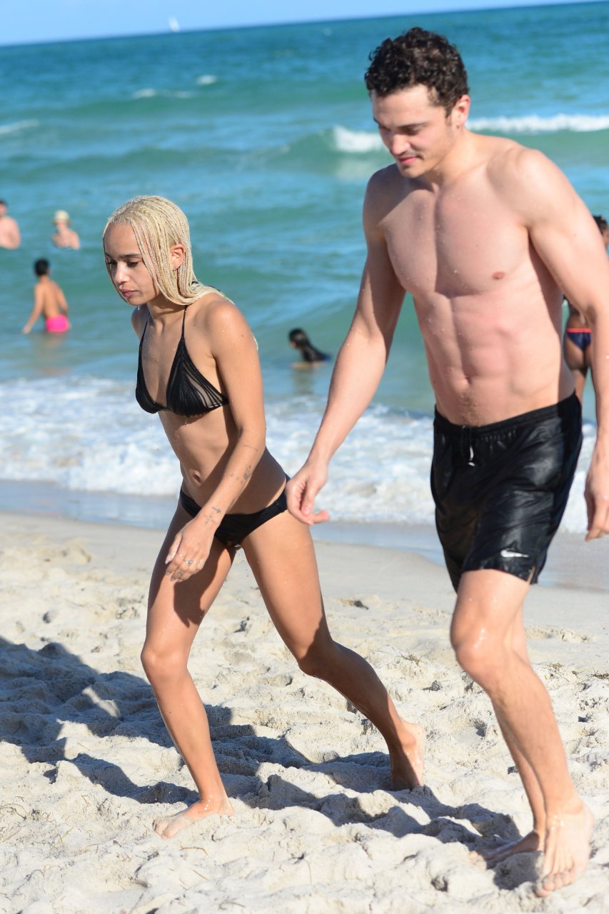 Zoe Kravitz usa biquíni preto na Praia de Miami, 24/12/2016. Zoe Kravitz é cantora, modelo e atriz de Venice Beach. Idade: 28 (nascida em 1 de dezembro de 1988).