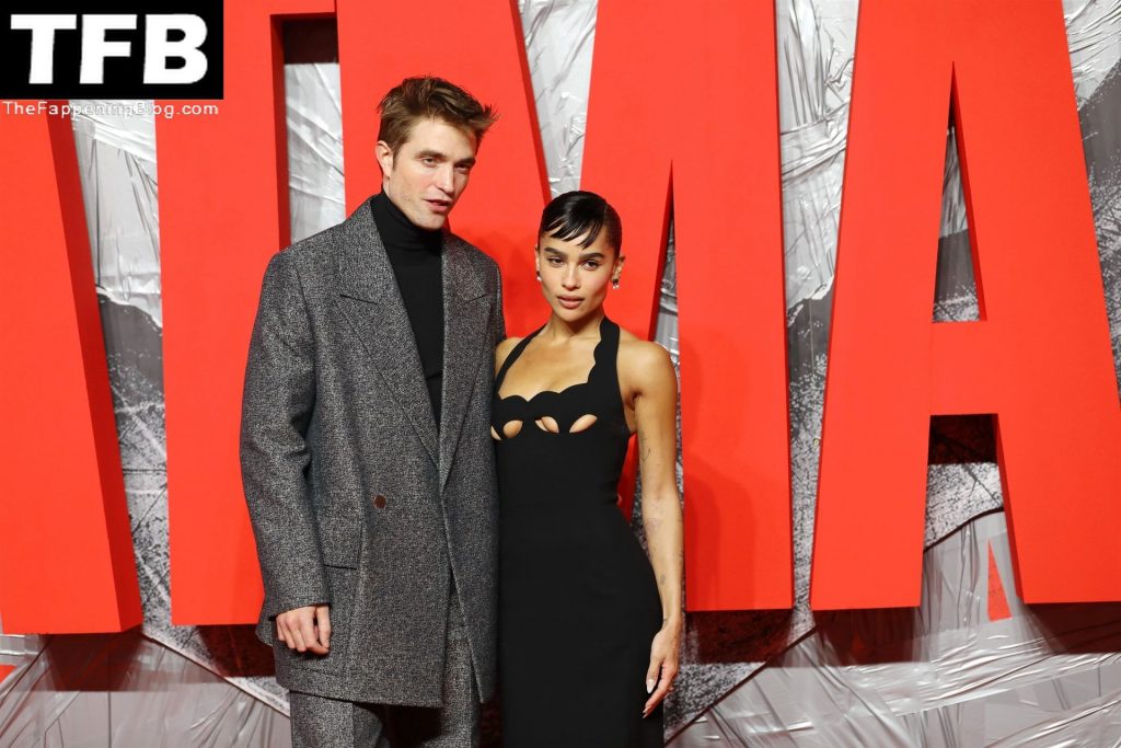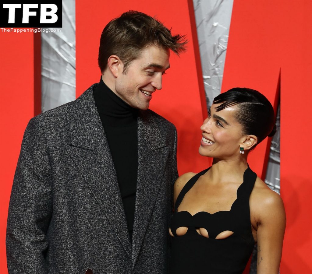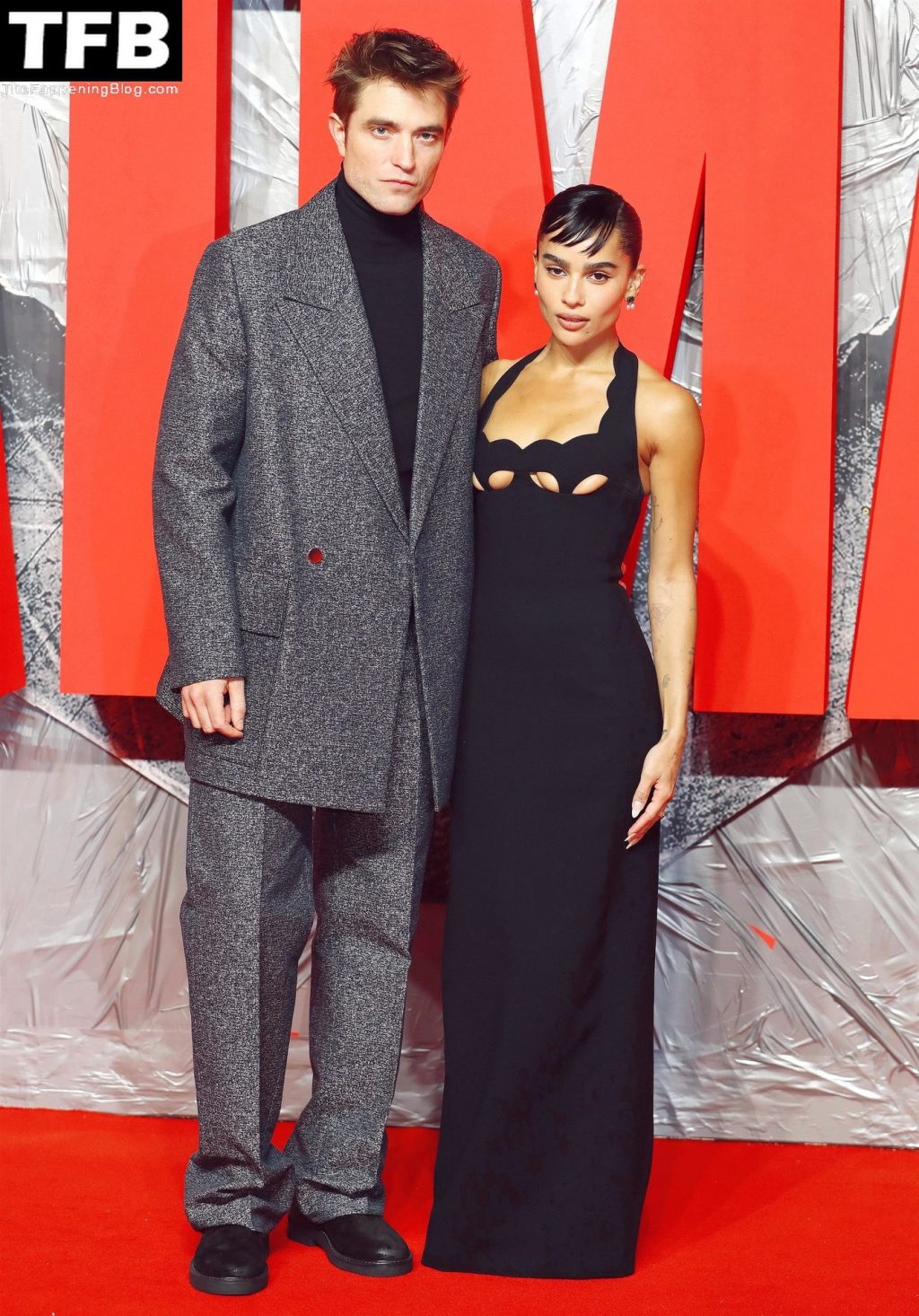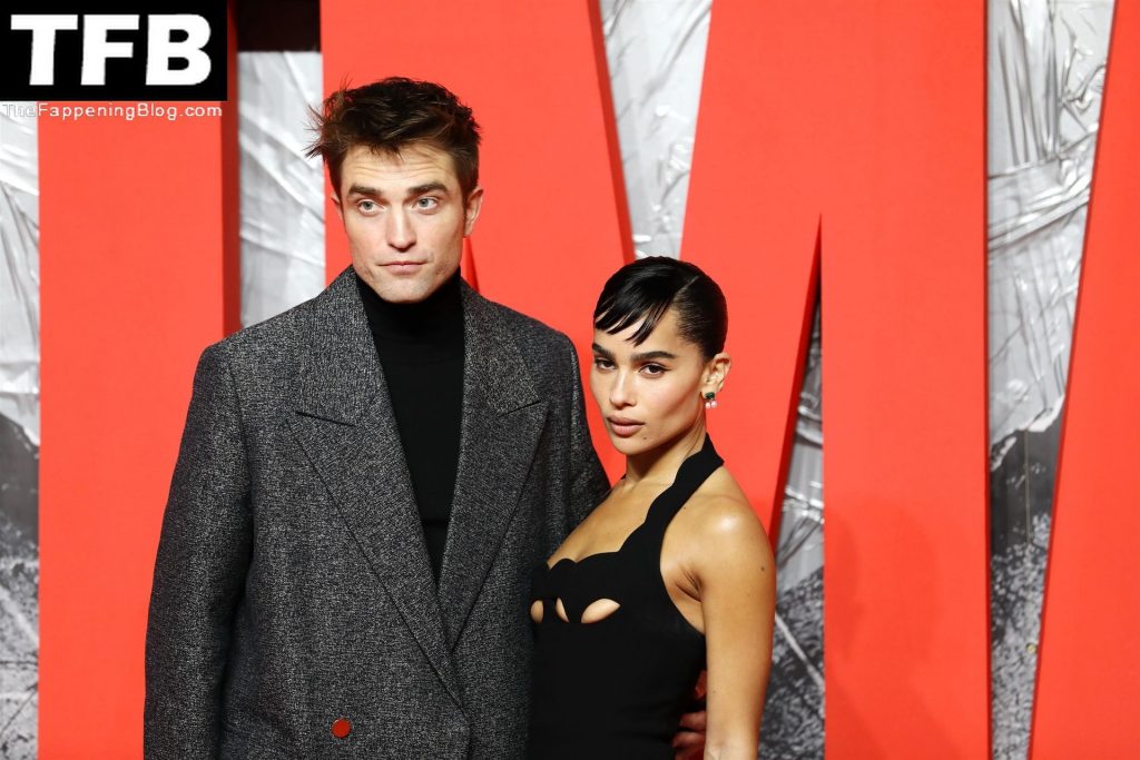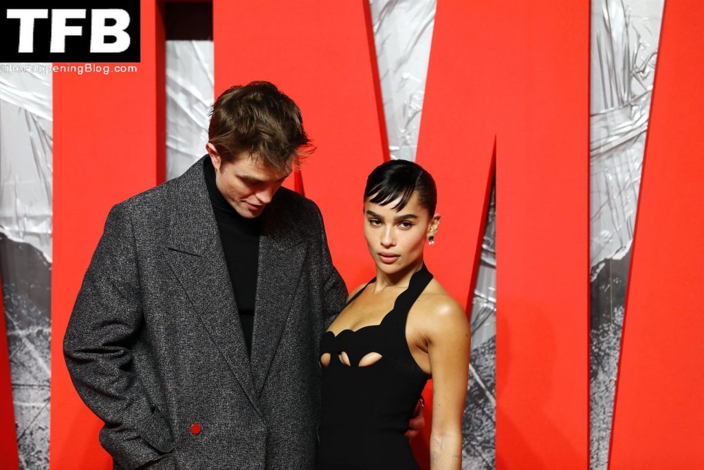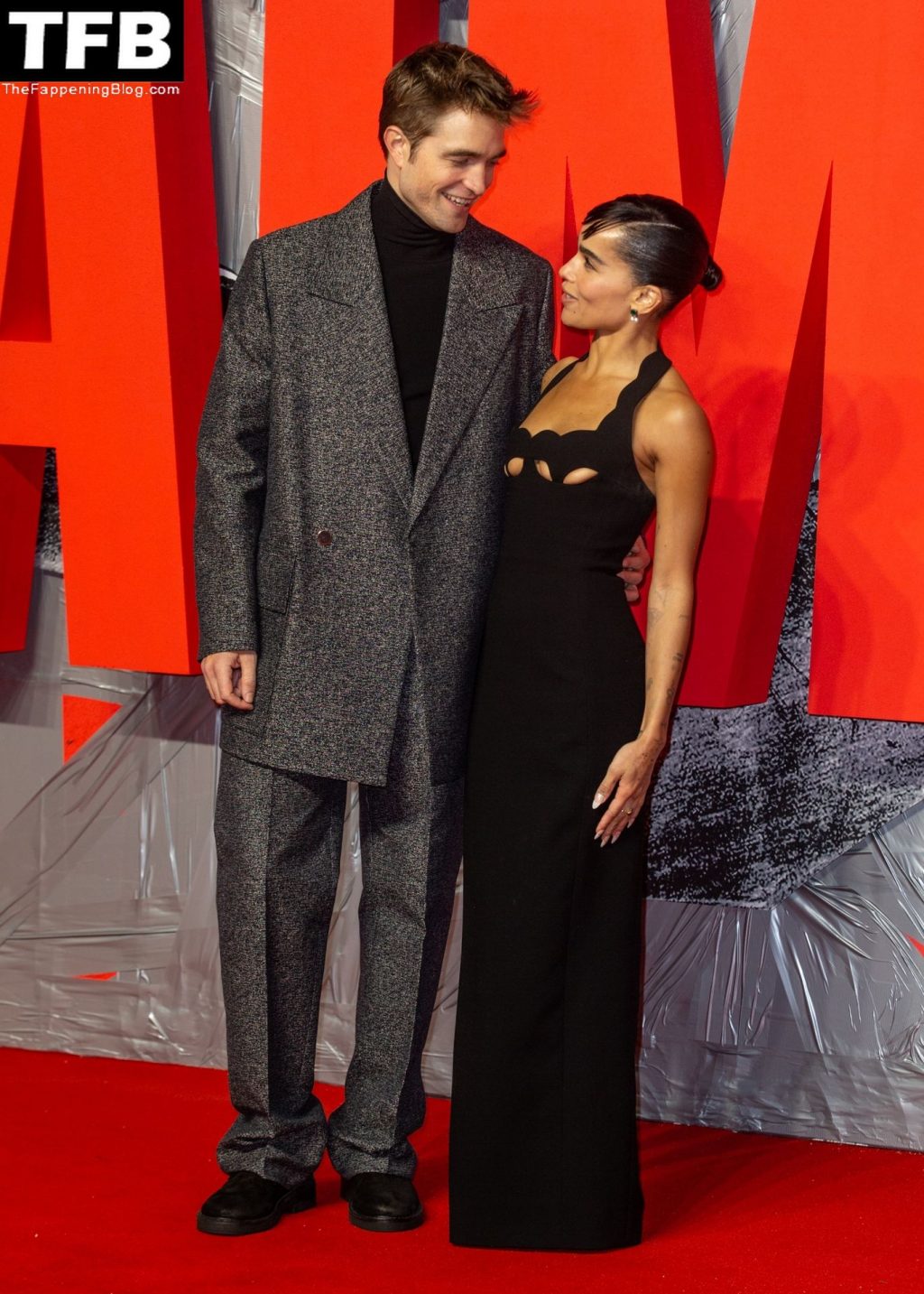 Atores Zoe Kravitz e Robert Pattinson posam juntos no tapete vermelho da premiere do filme The Batman em Londres, 23/02/2022.