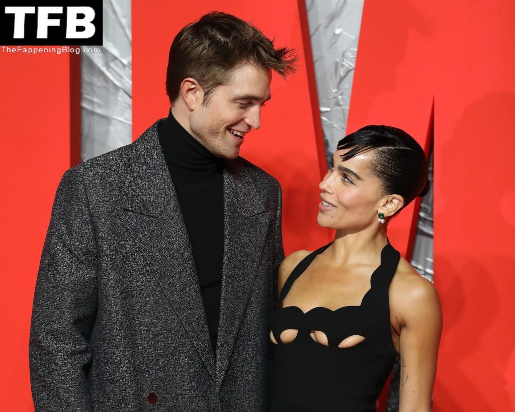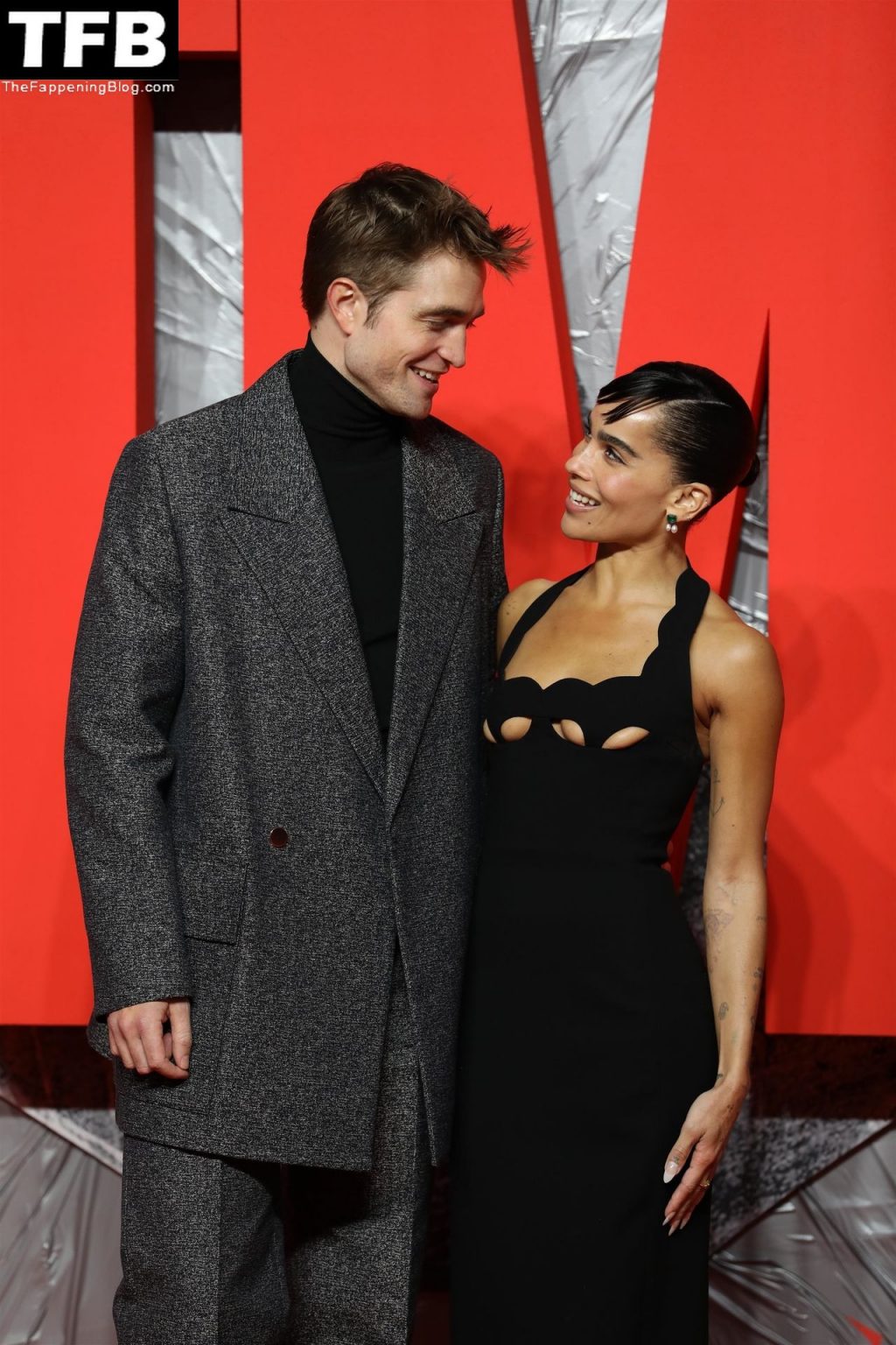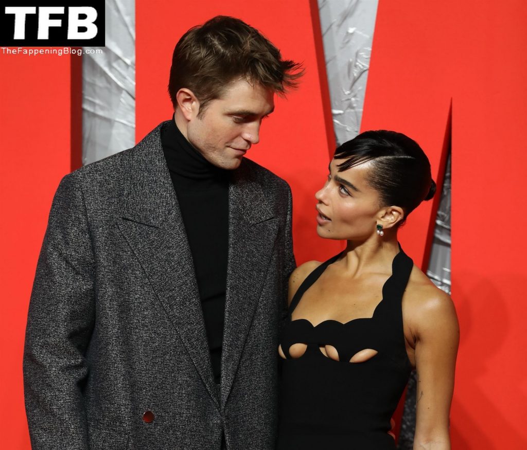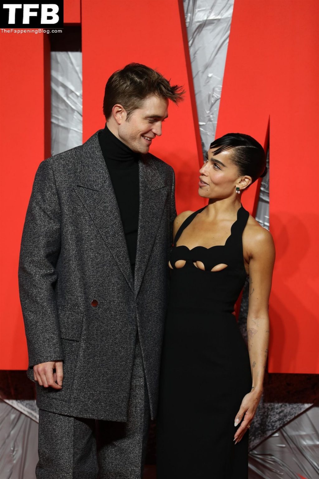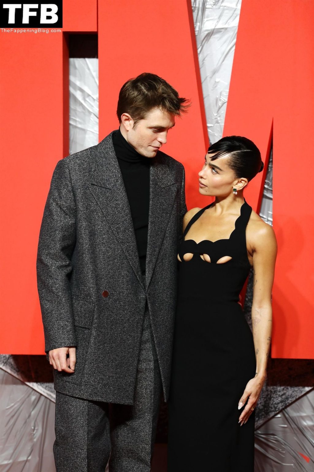 Atores Zoe Kravitz e Robert Pattinson posam juntos no tapete vermelho da premiere do filme The Batman em Londres, 23/02/2022.