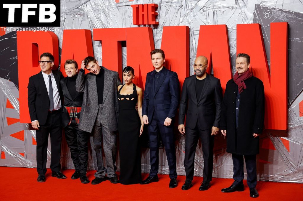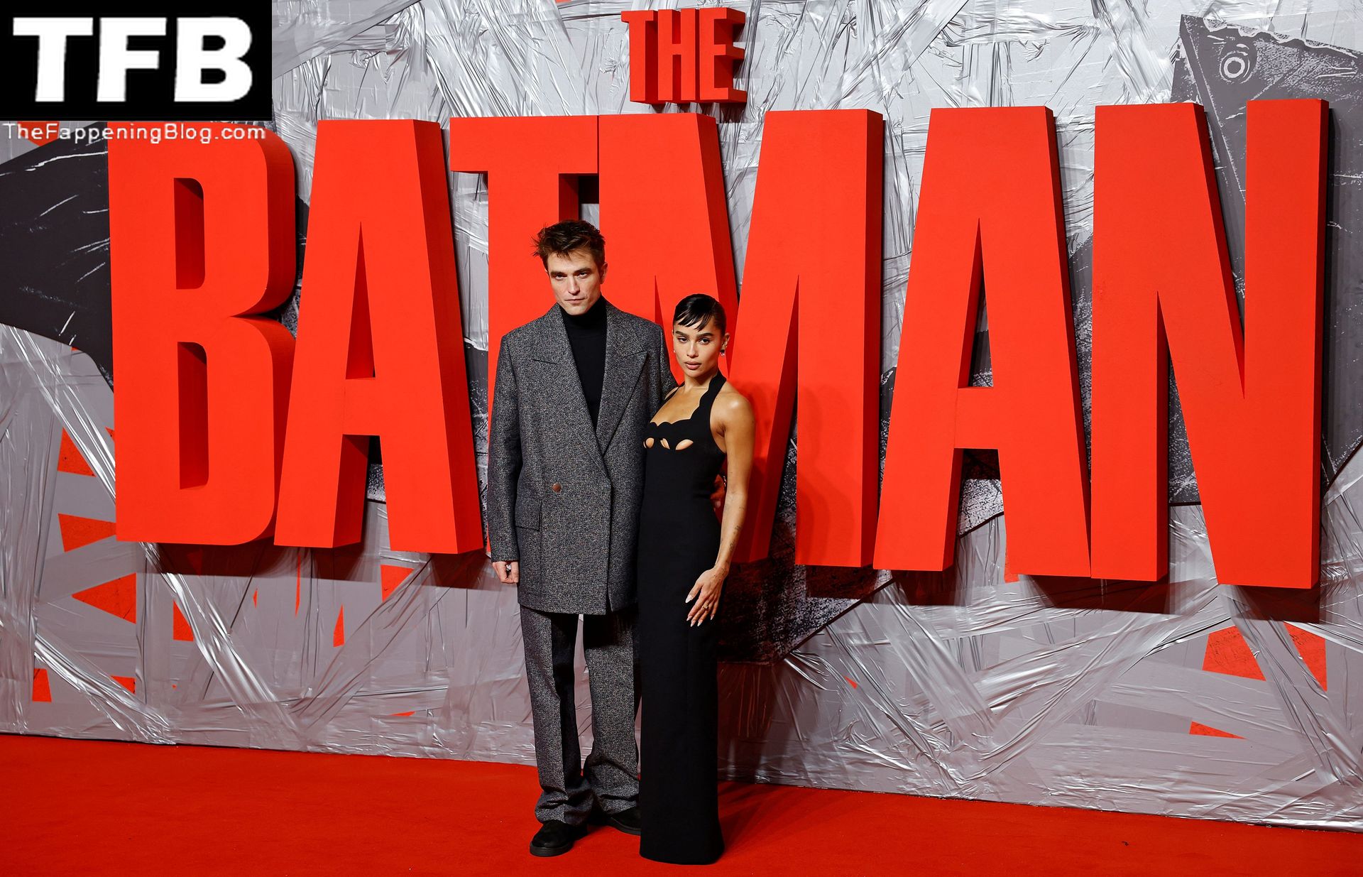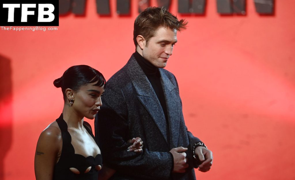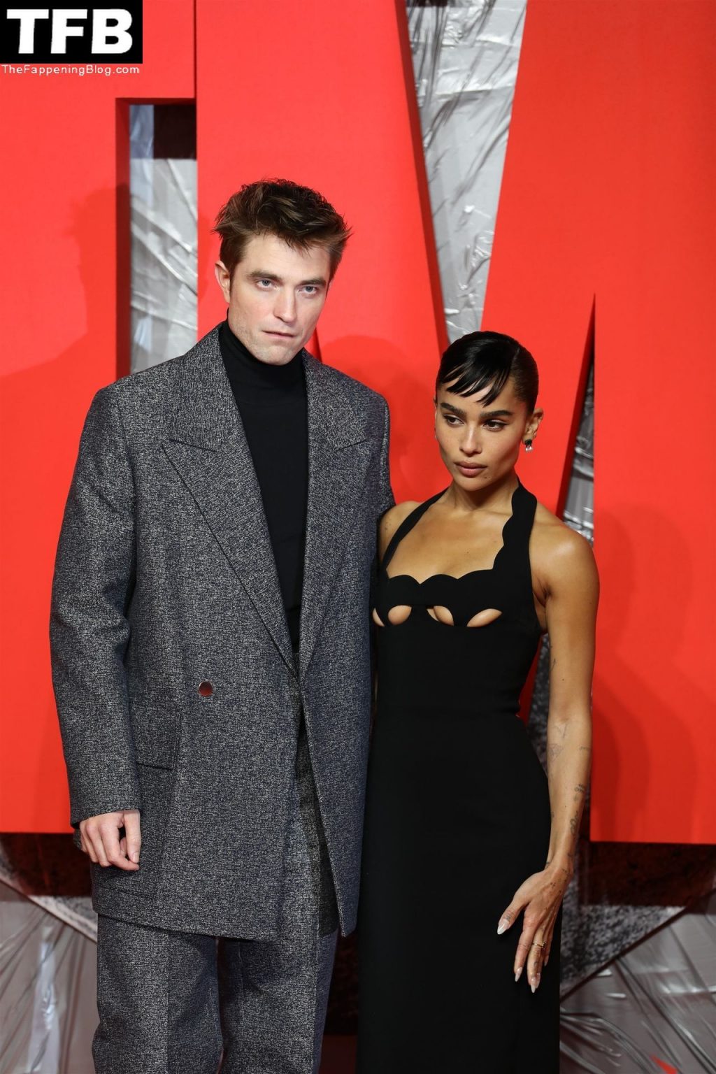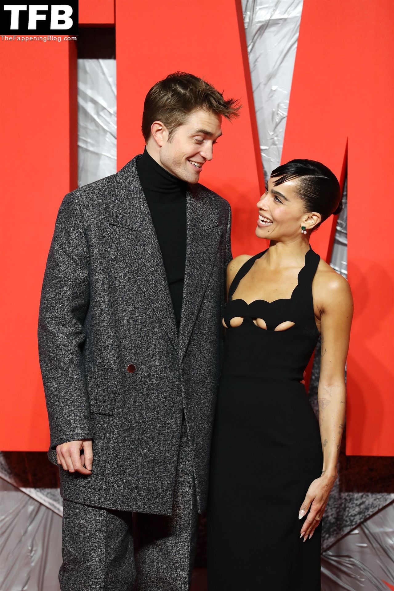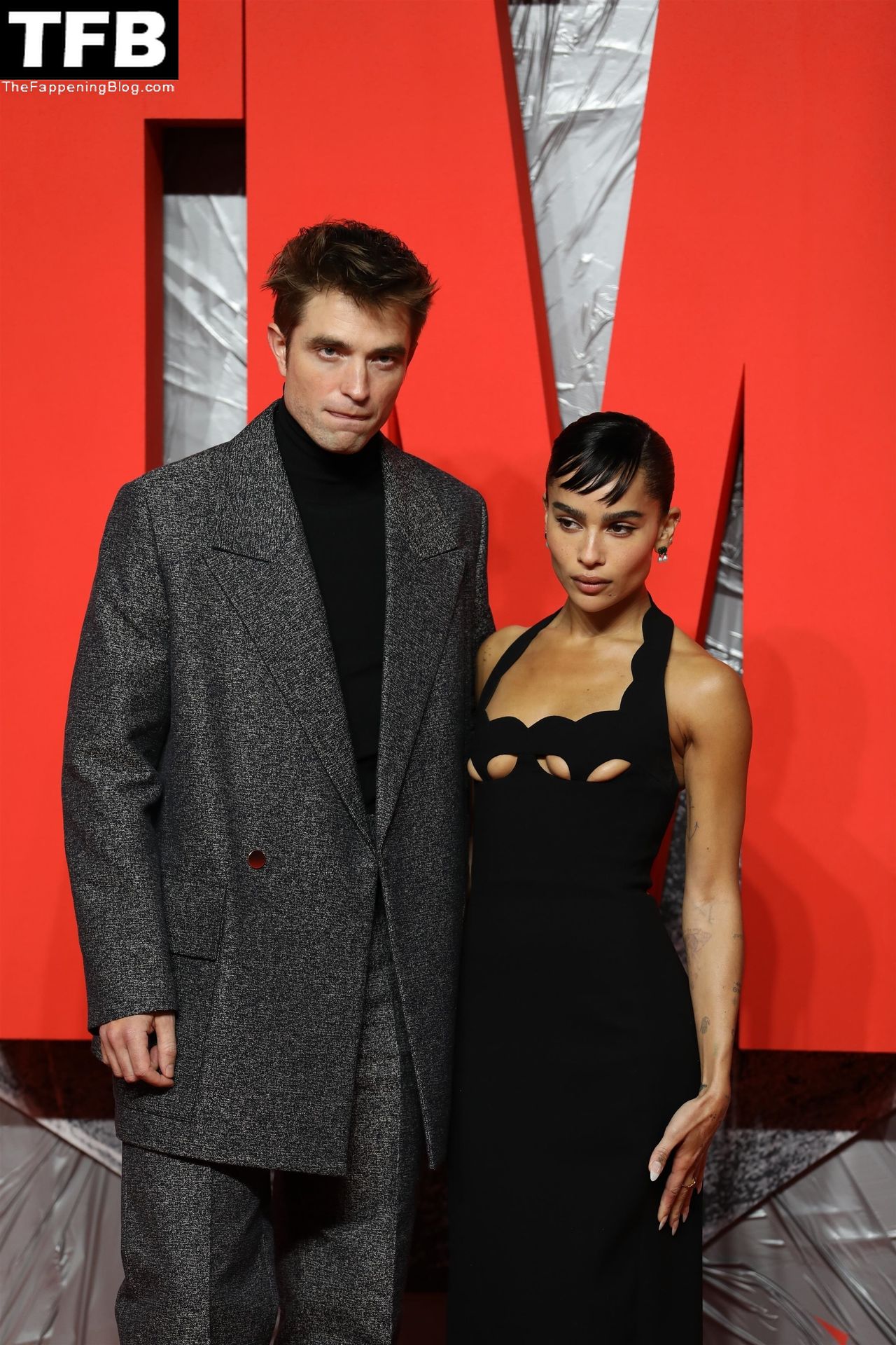Atores Zoe Kravitz e Robert Pattinson posam juntos no tapete vermelho da premiere do filme The Batman em Londres, 23/02/2022.