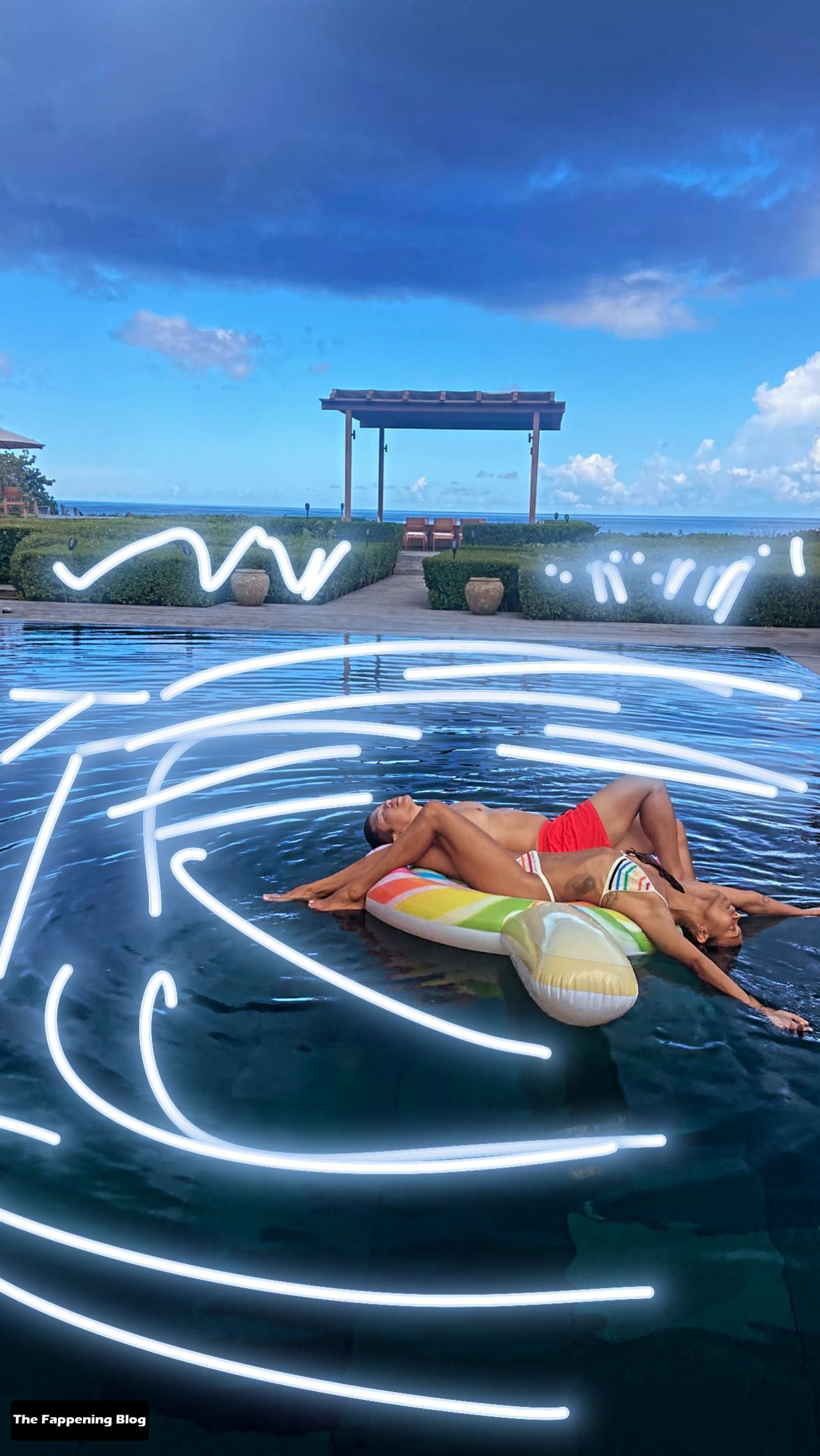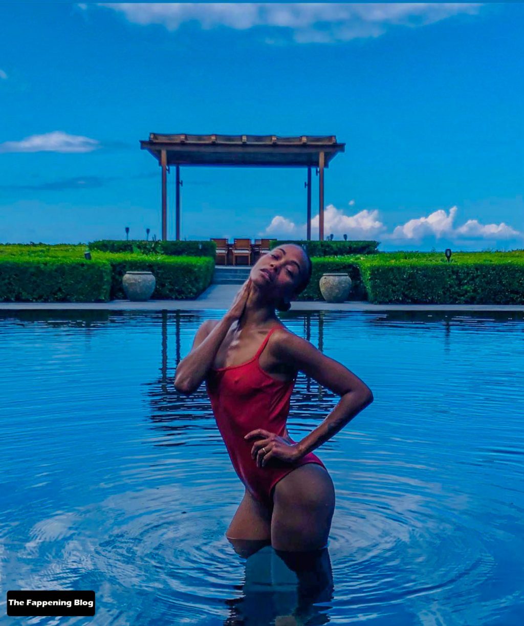 Um biquíni é um maiô de duas peças. O vermelho é um maiô de uma peça. Ela também é extremamente magra, então talvez seja sexy para um cão de ferro-velho.