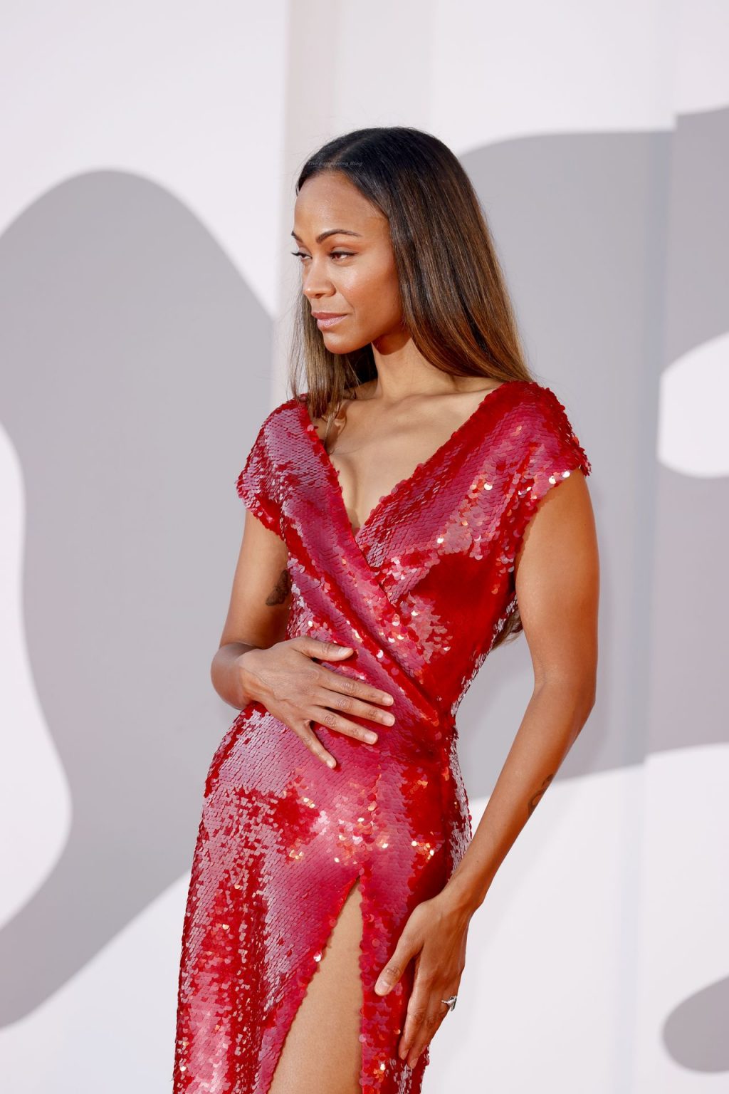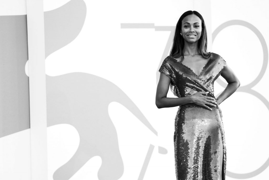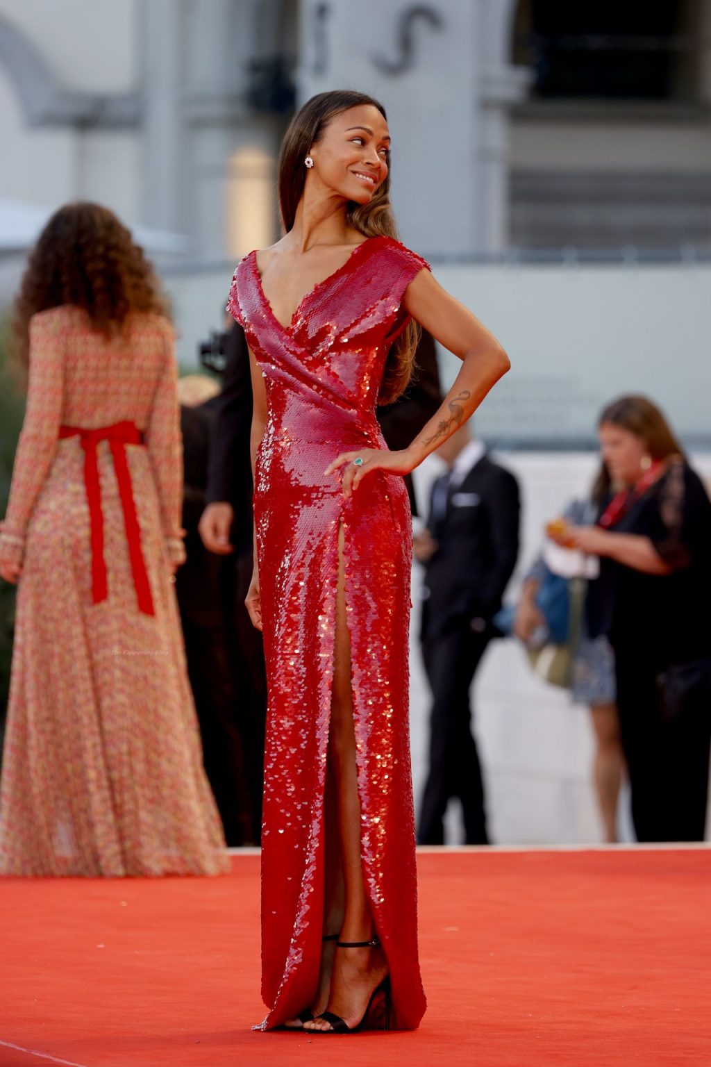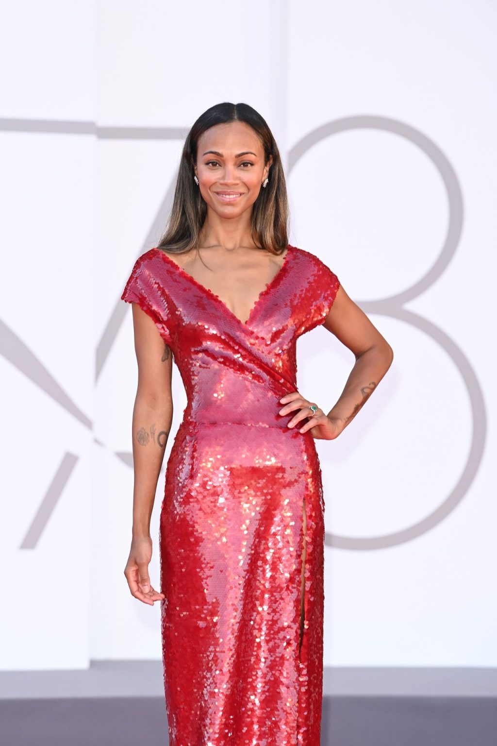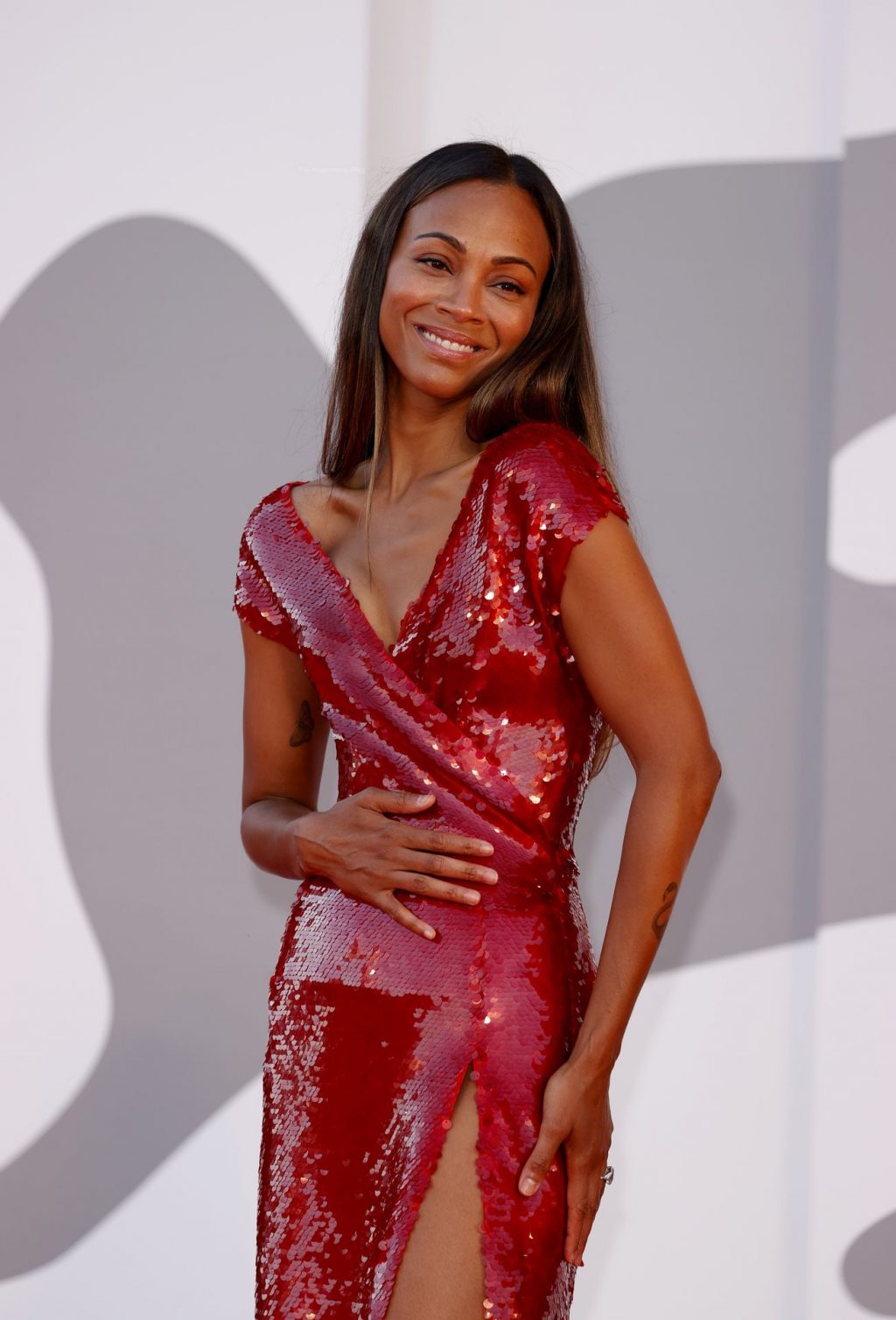 A atriz EUA/Dominicana Zoe Saldana chega para a exibição do filme “E stata la mano di Dio” (A Mão de Deus) apresentado em competição durante o 78º Festival de Cinema de Veneza no Lido de Veneza, 02/09/2021.