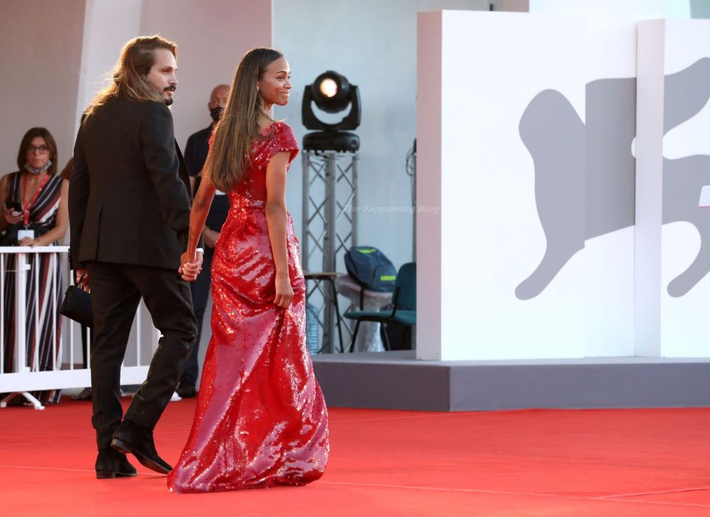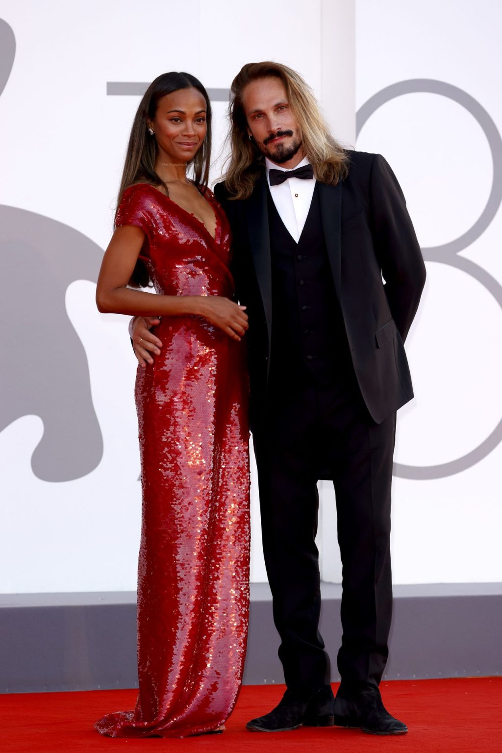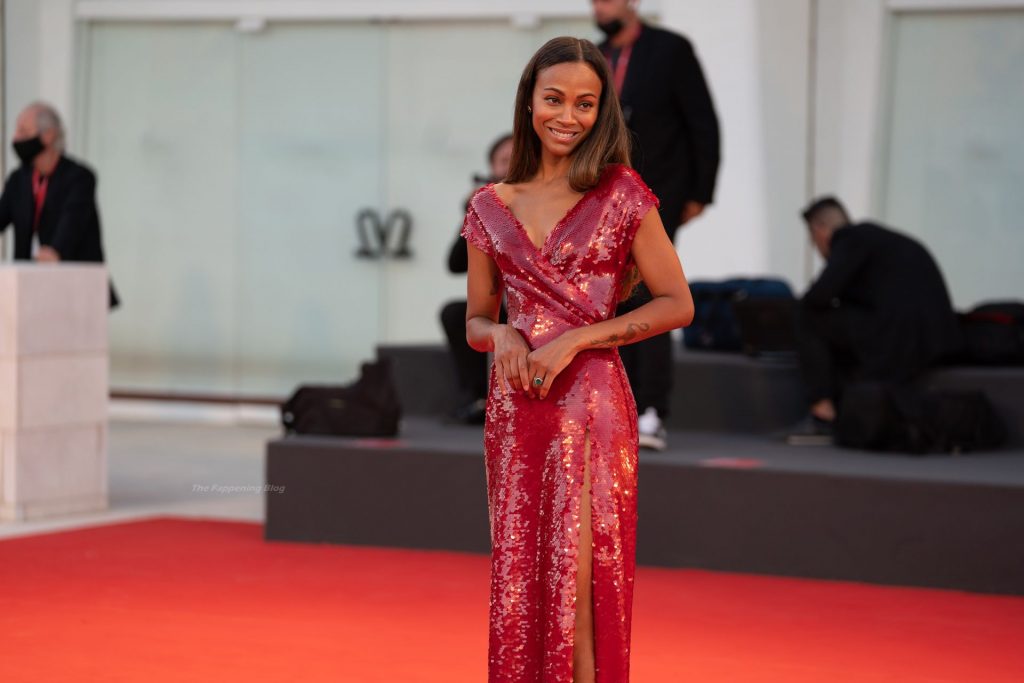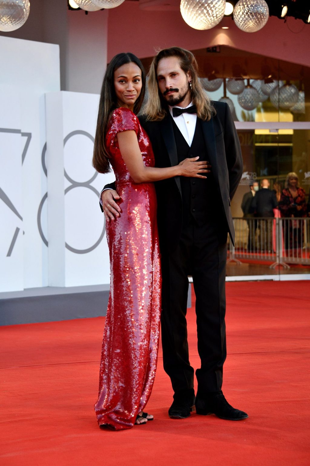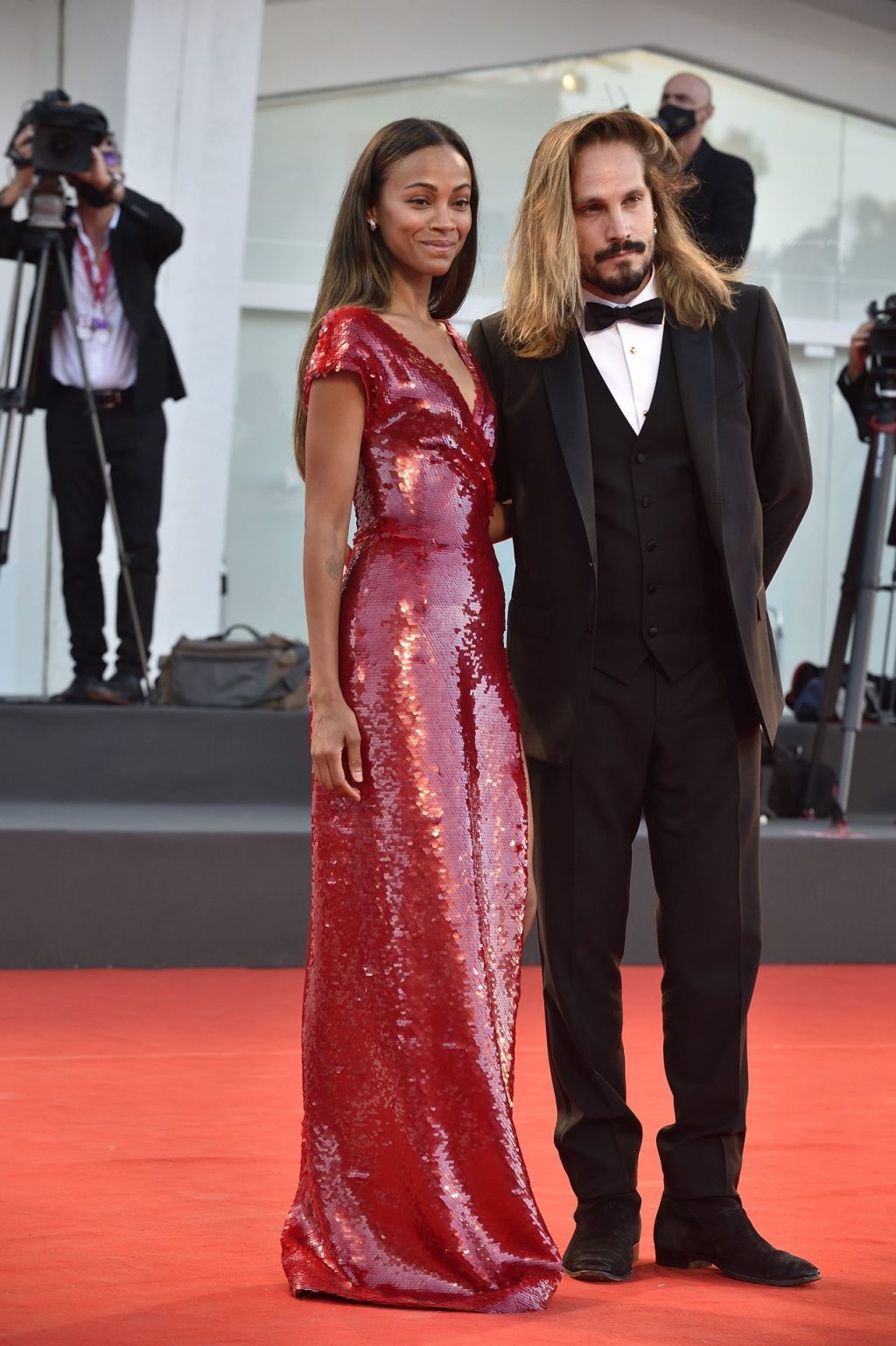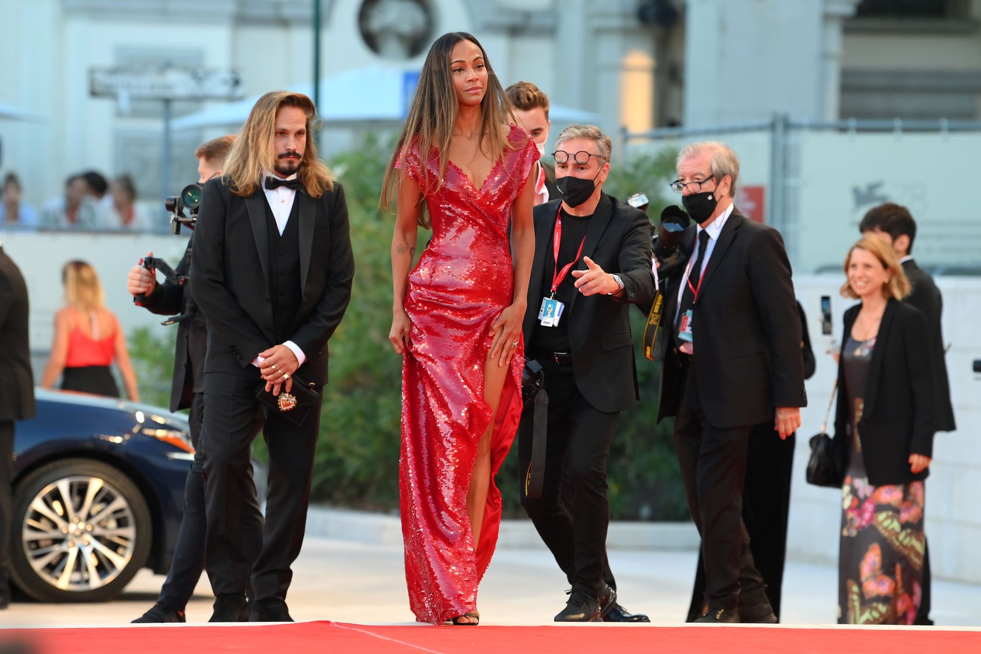 A atriz EUA/Dominicana Zoe Saldana chega para a exibição do filme “E stata la mano di Dio” (A Mão de Deus) apresentado em competição durante o 78º Festival de Cinema de Veneza no Lido de Veneza, 02/09/2021.