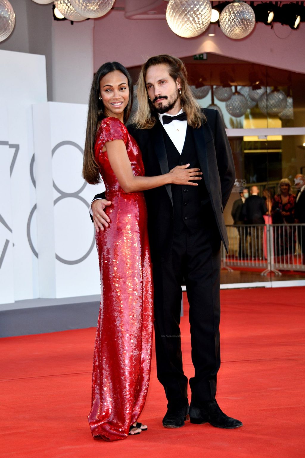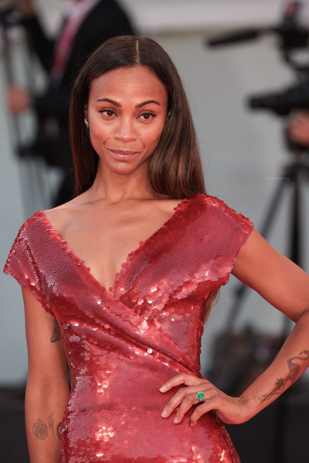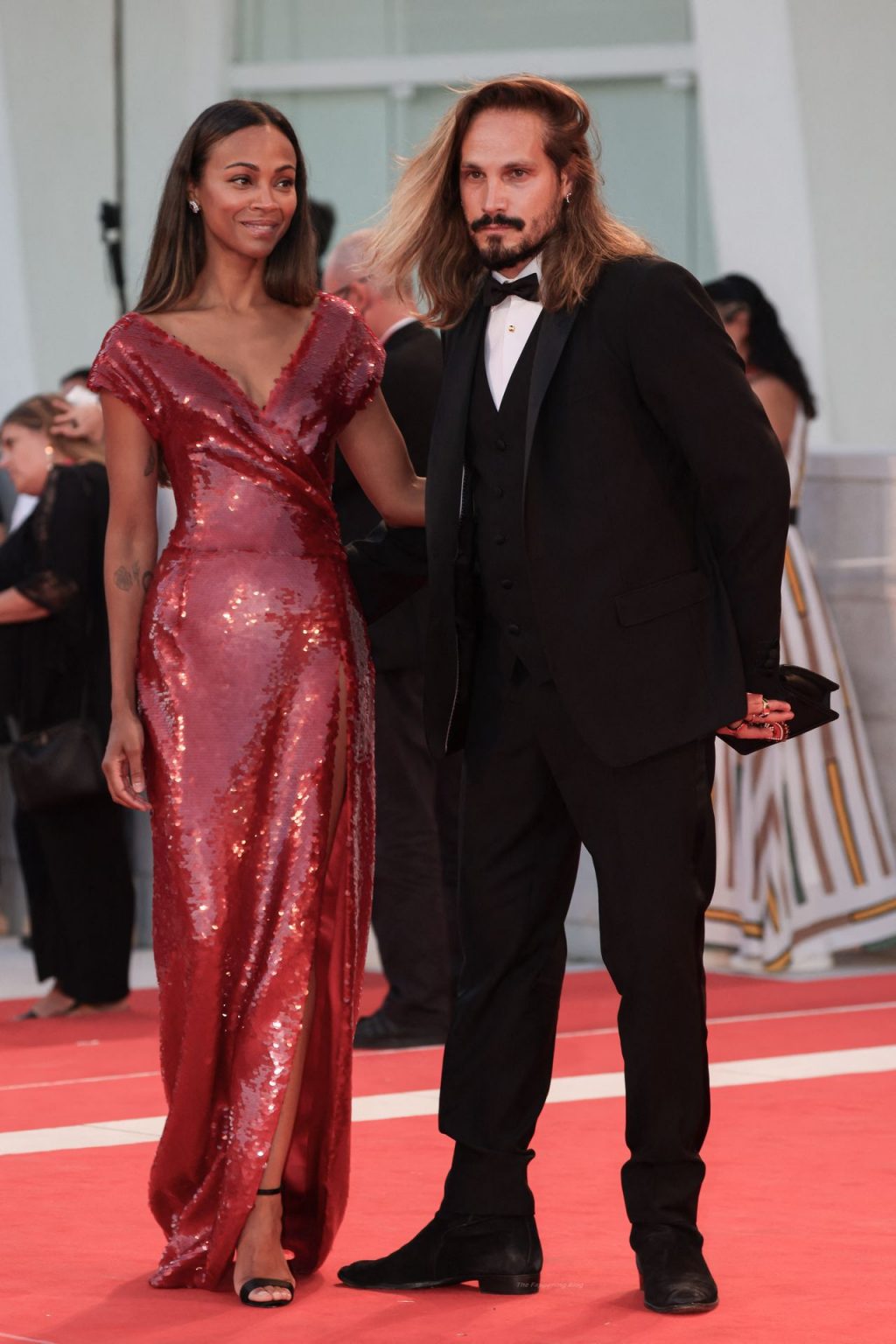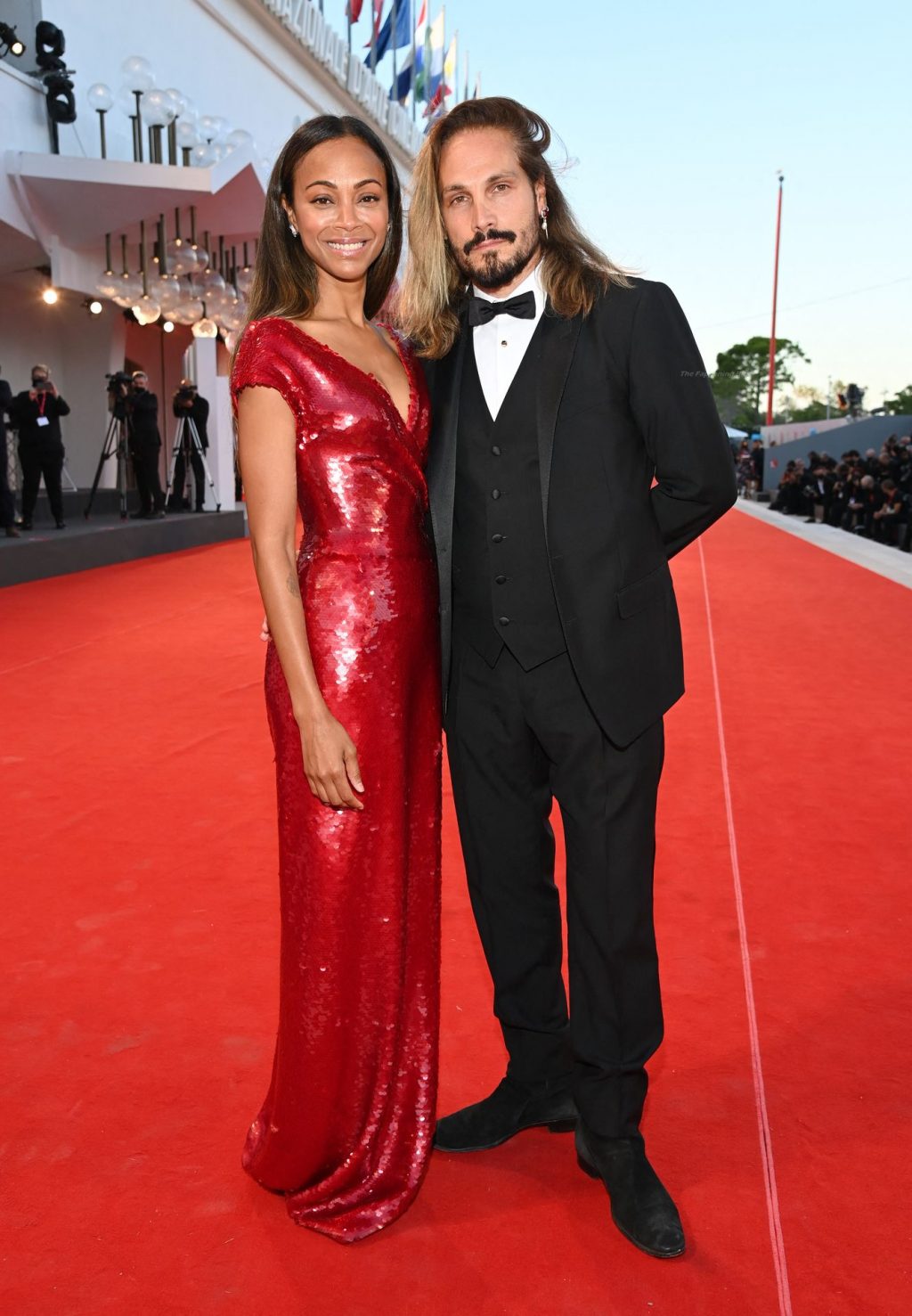 A atriz EUA/Dominicana Zoe Saldana chega para a exibição do filme “E stata la mano di Dio” (A Mão de Deus) apresentado em competição durante o 78º Festival de Cinema de Veneza no Lido de Veneza, 02/09/2021.
