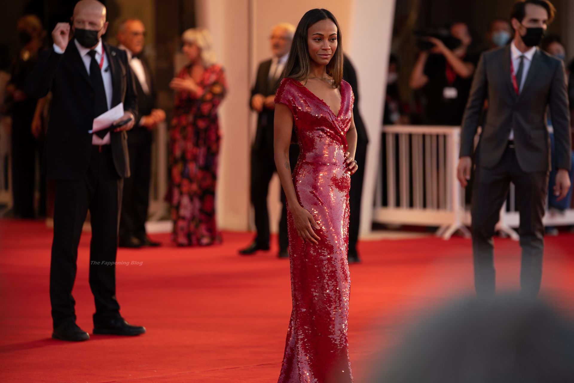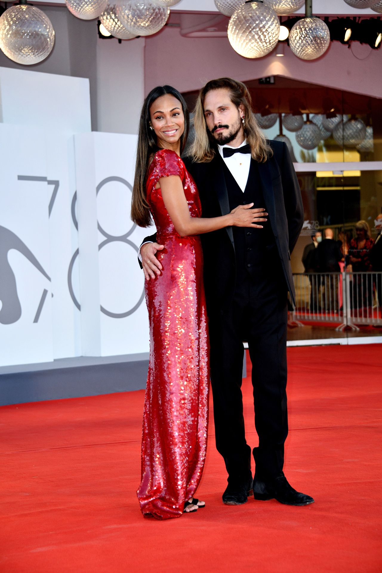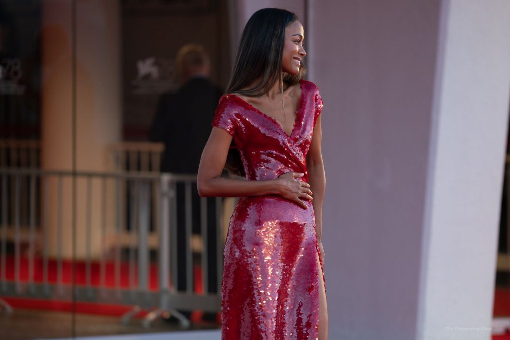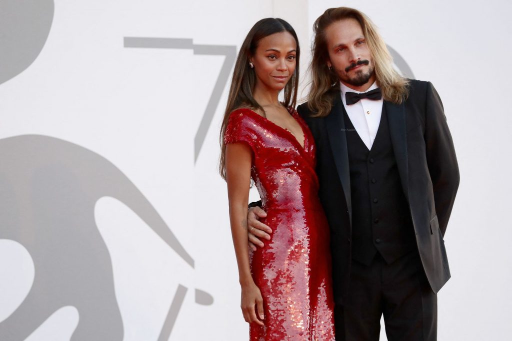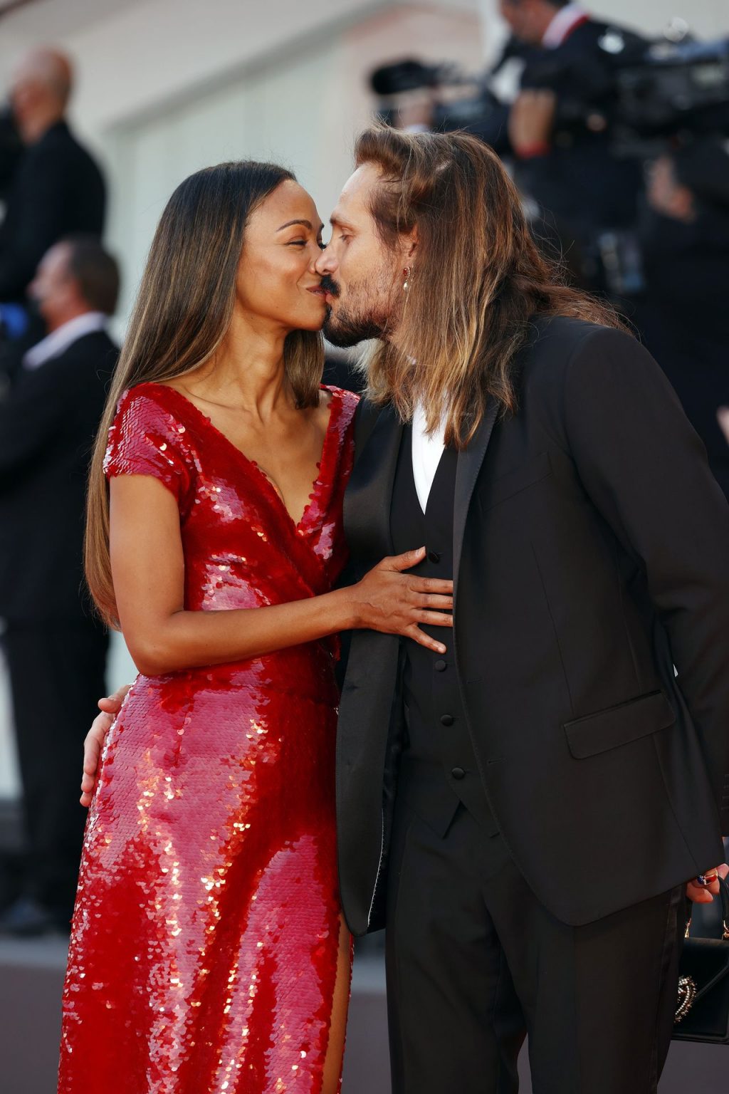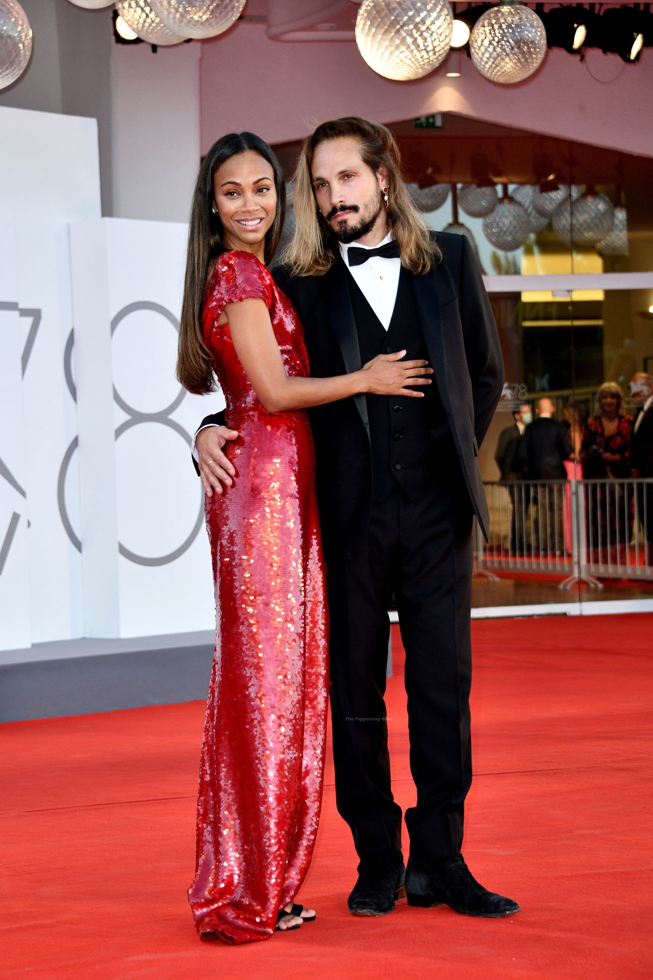 A atriz EUA/Dominicana Zoe Saldana chega para a exibição do filme “E stata la mano di Dio” (A Mão de Deus) apresentado em competição durante o 78º Festival de Cinema de Veneza no Lido de Veneza, 02/09/2021.