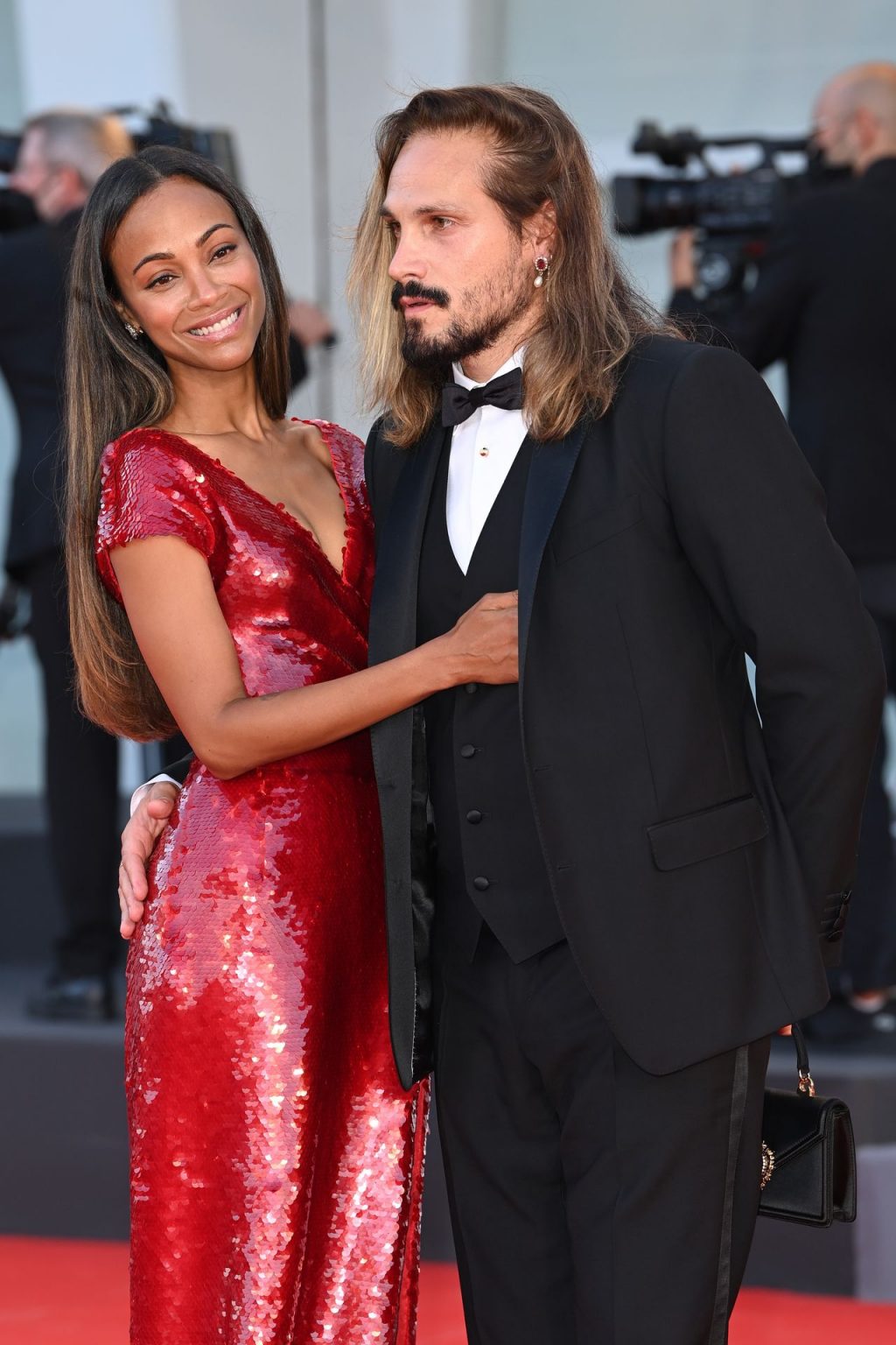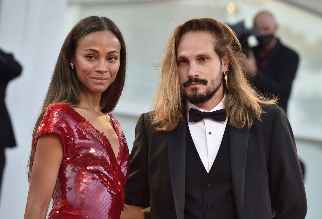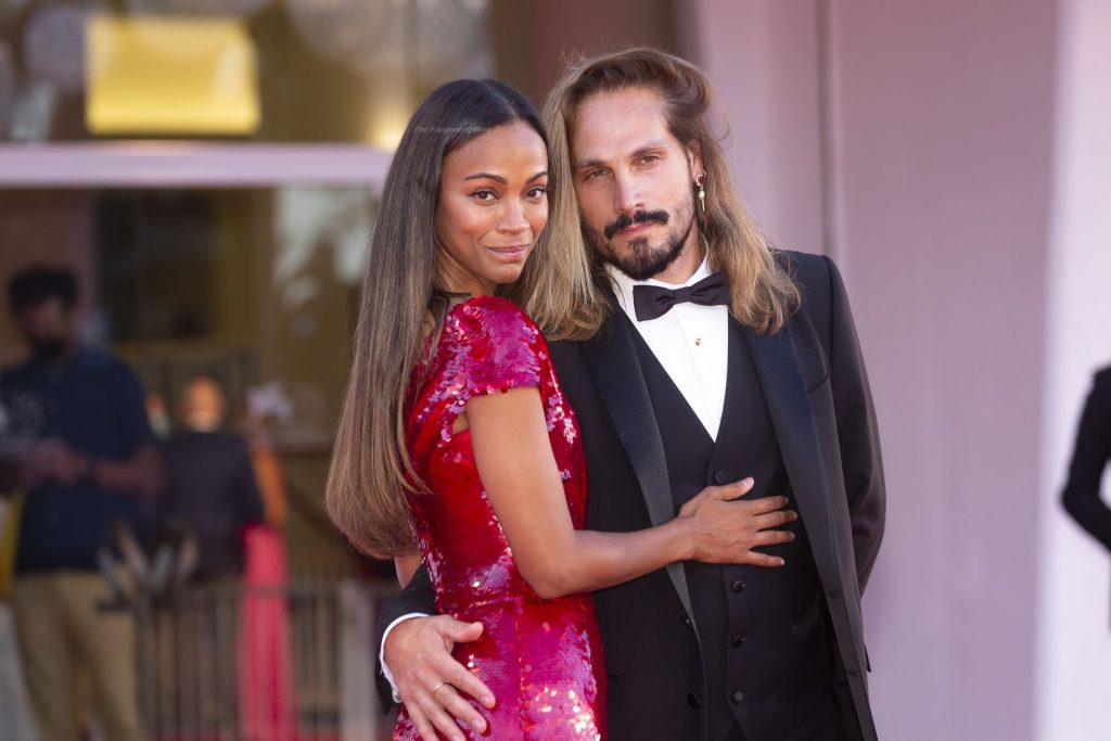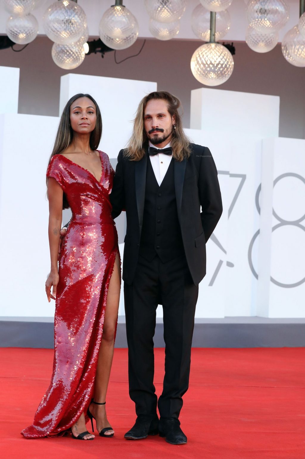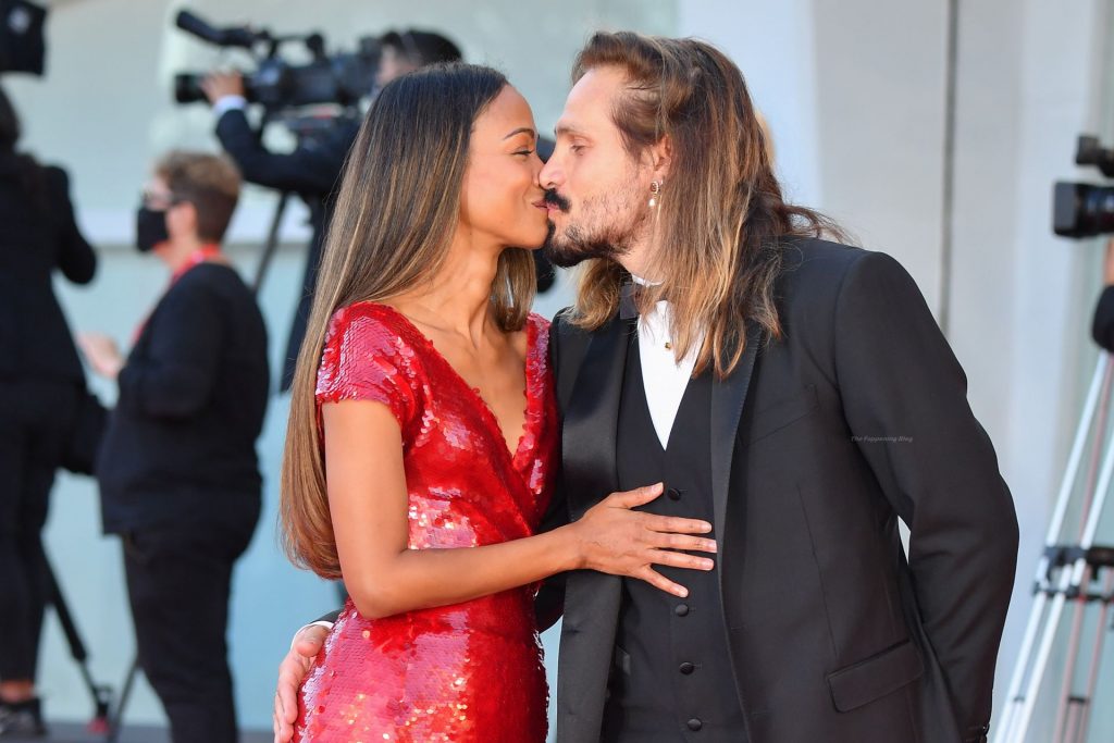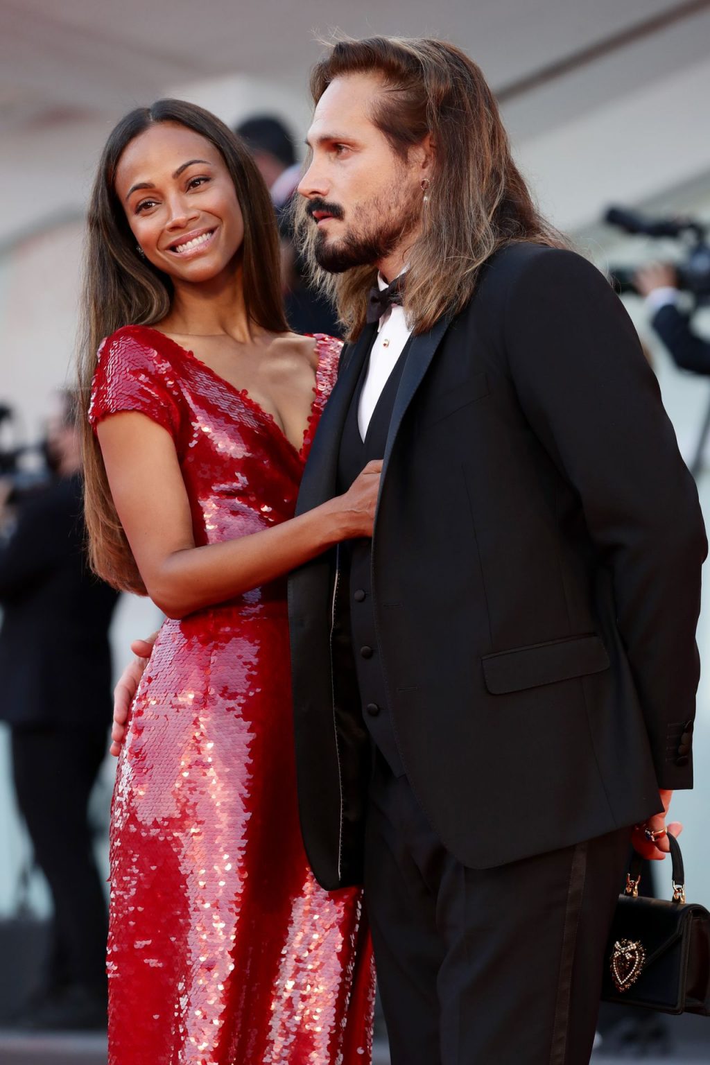 A atriz EUA/Dominicana Zoe Saldana chega para a exibição do filme “E stata la mano di Dio” (A Mão de Deus) apresentado em competição durante o 78º Festival de Cinema de Veneza no Lido de Veneza, 02/09/2021.
