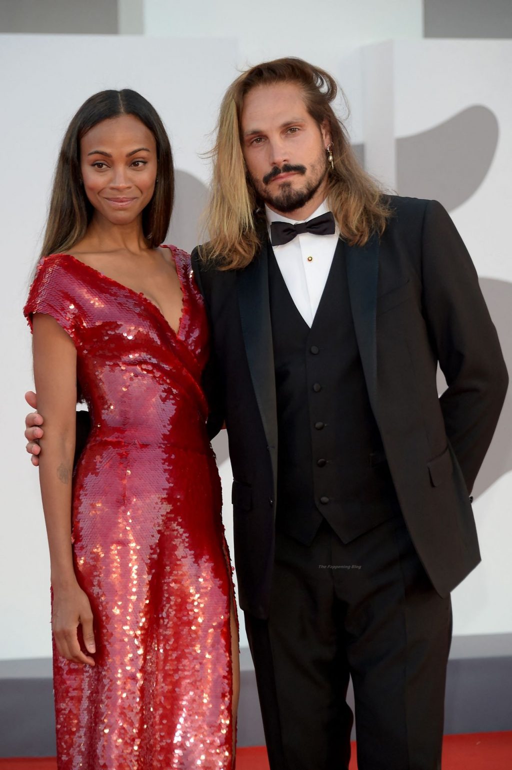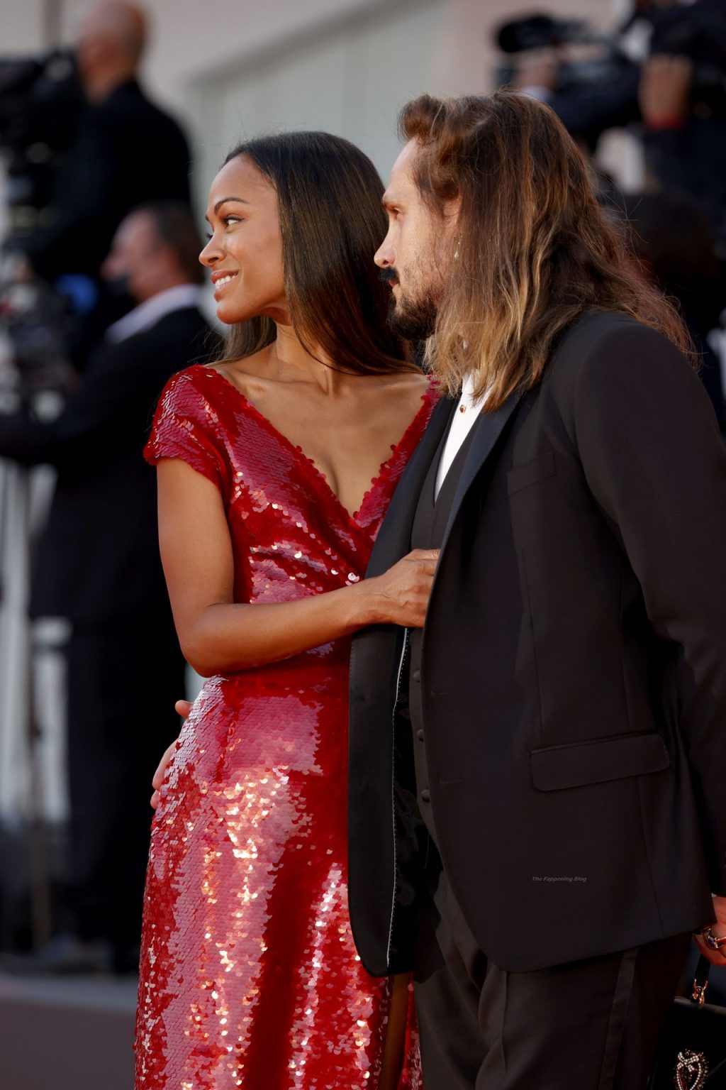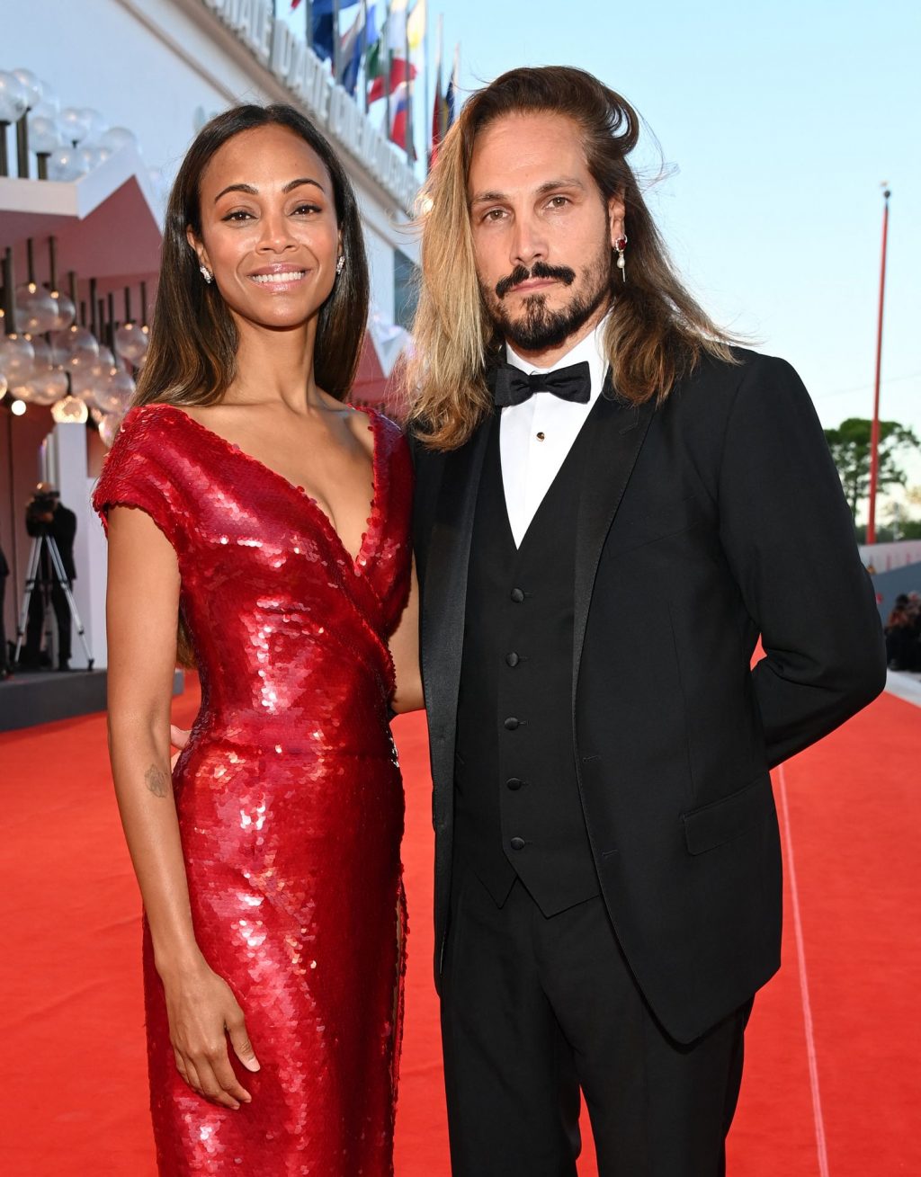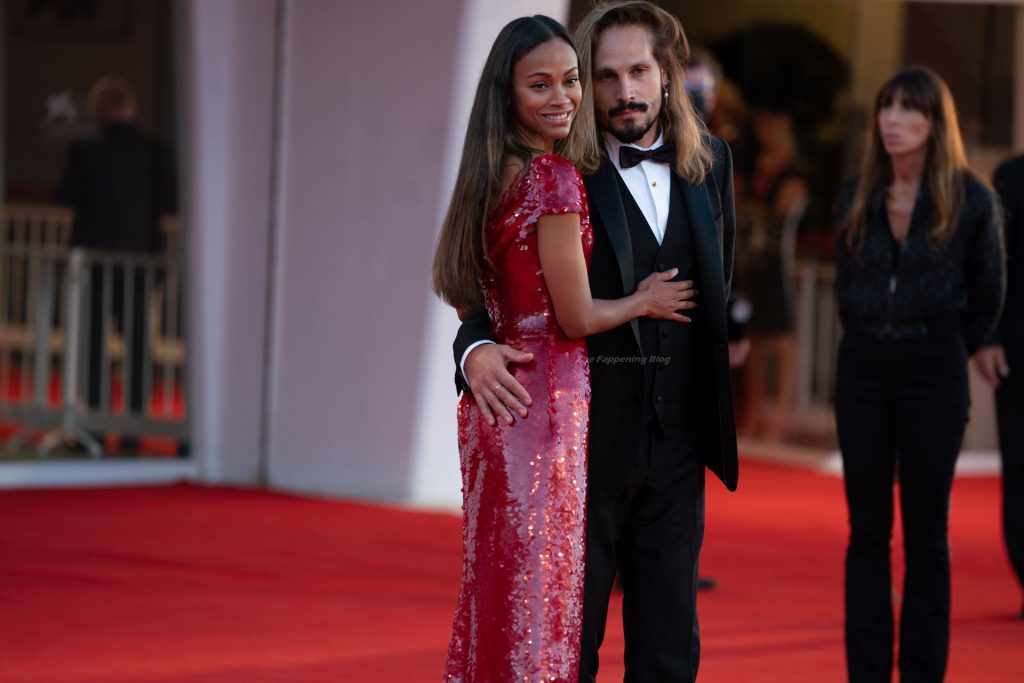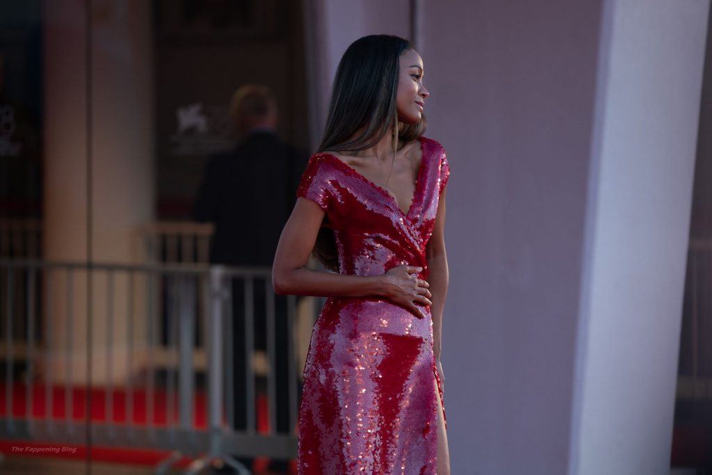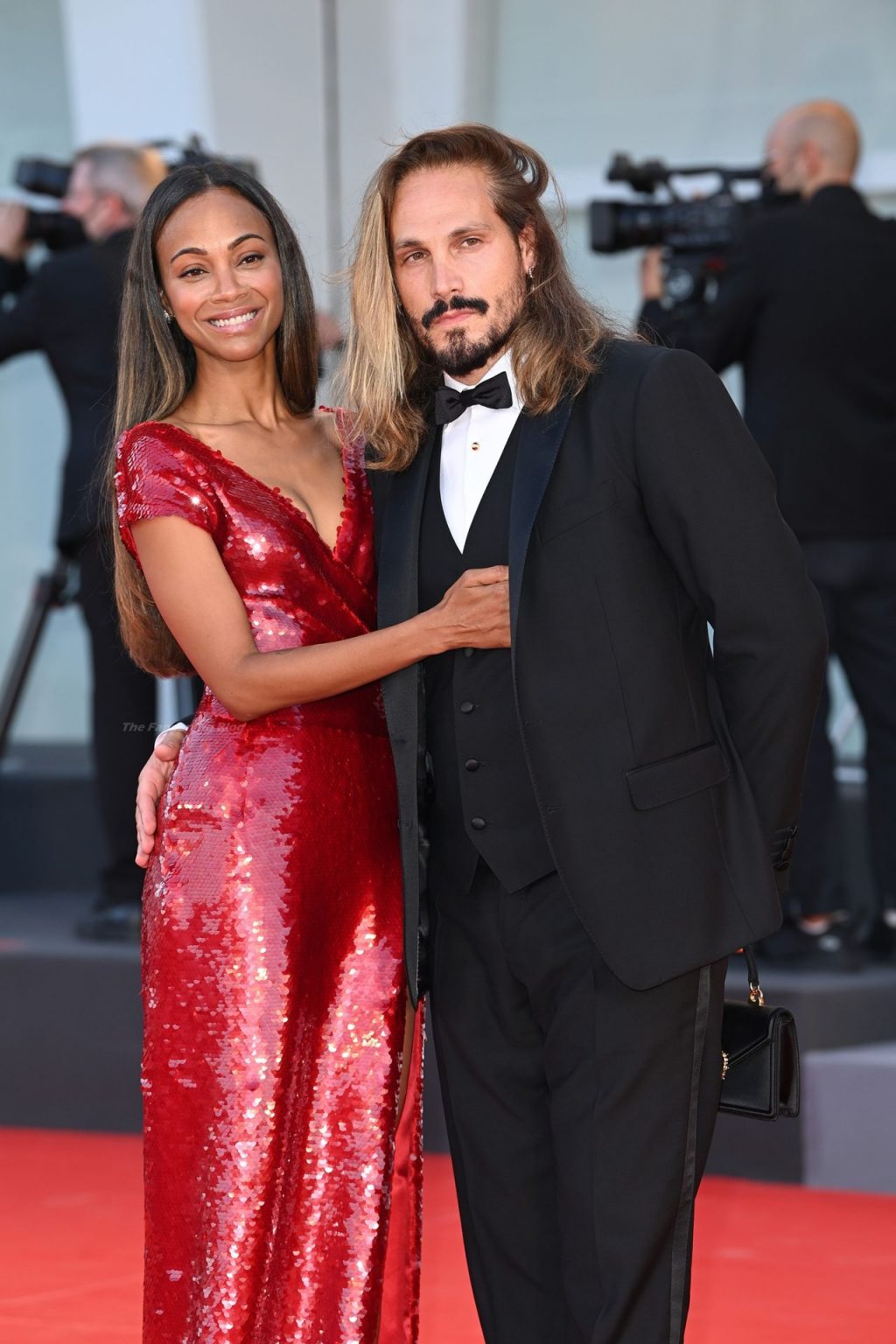 A atriz EUA/Dominicana Zoe Saldana chega para a exibição do filme “E stata la mano di Dio” (A Mão de Deus) apresentado em competição durante o 78º Festival de Cinema de Veneza no Lido de Veneza, 02/09/2021.