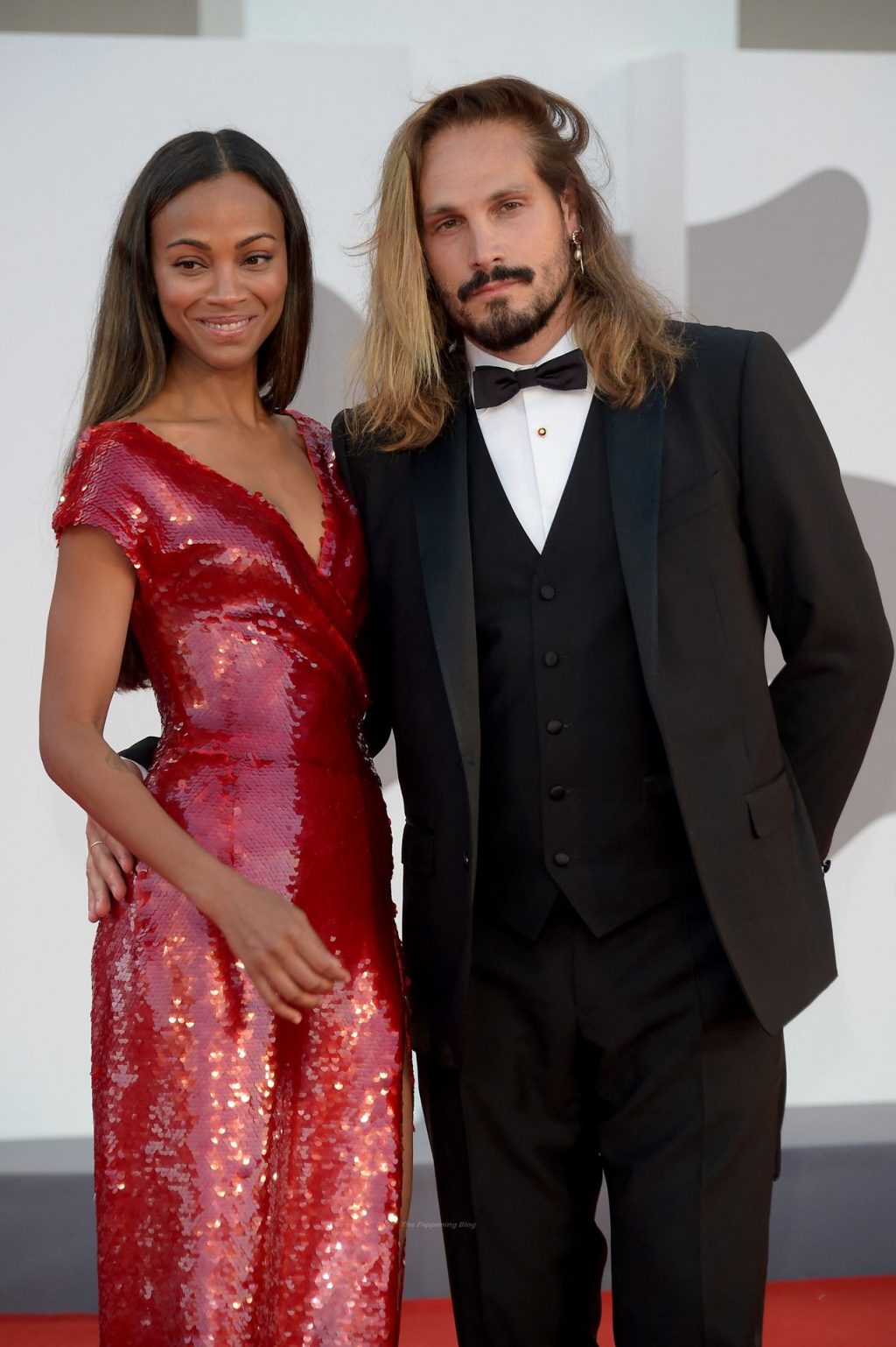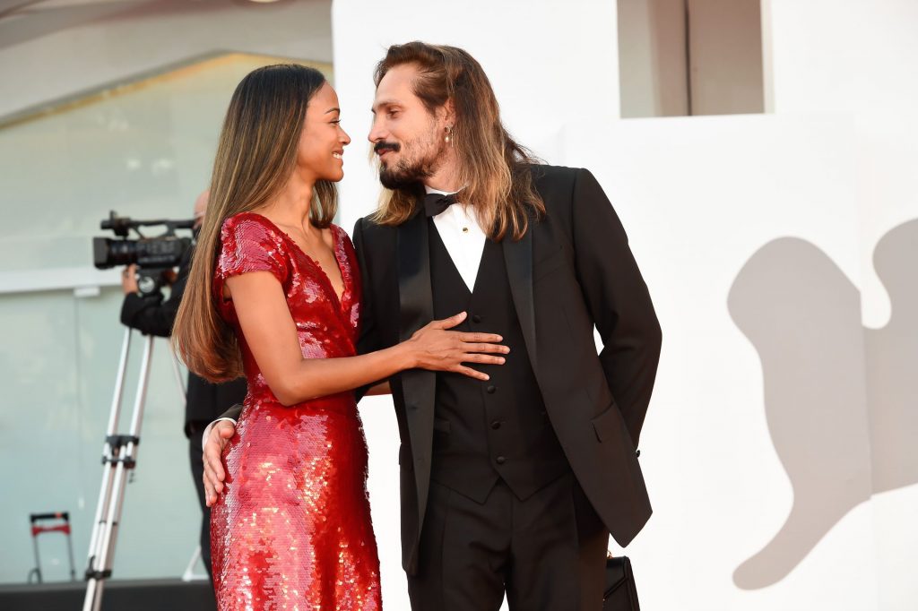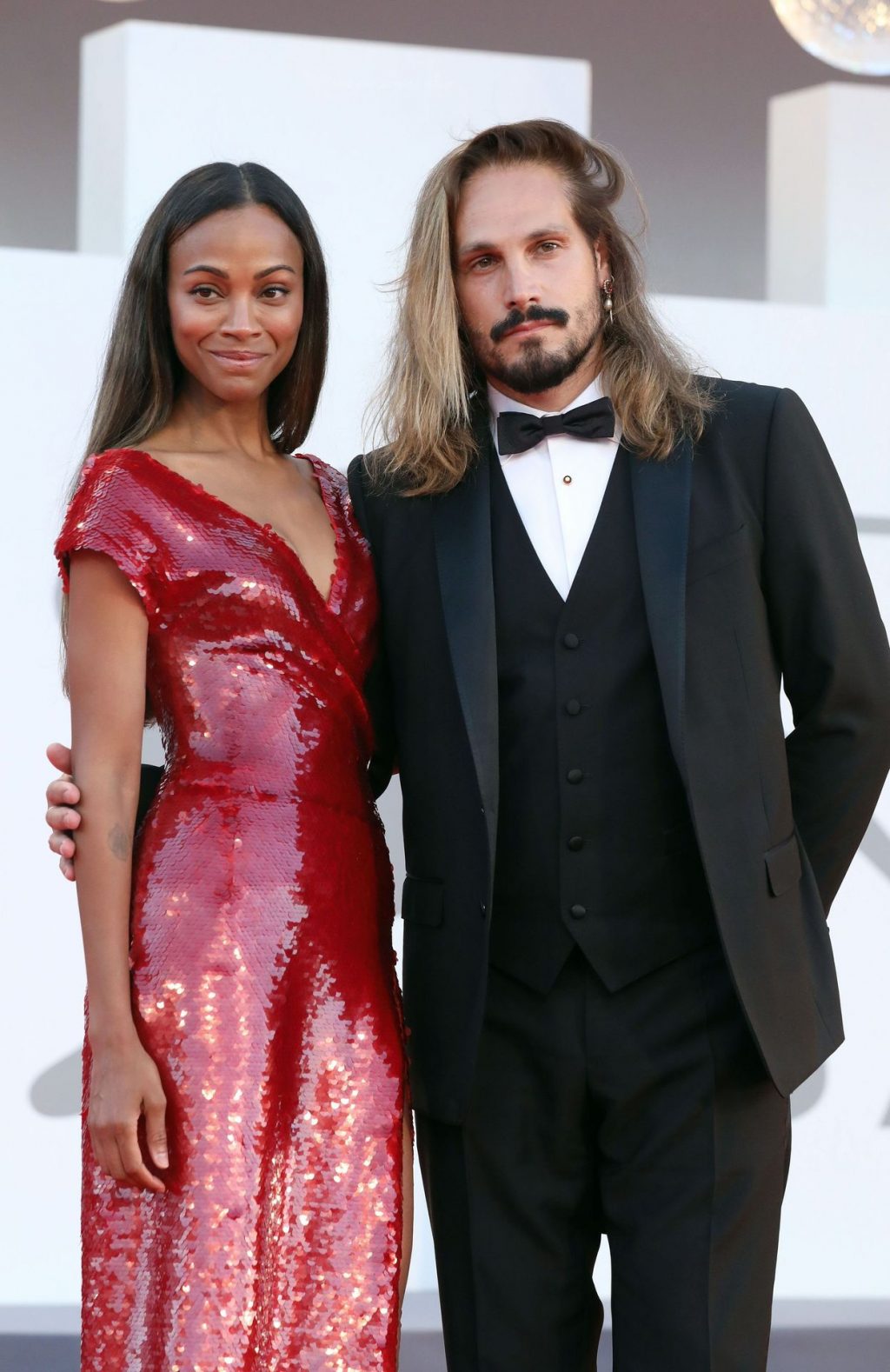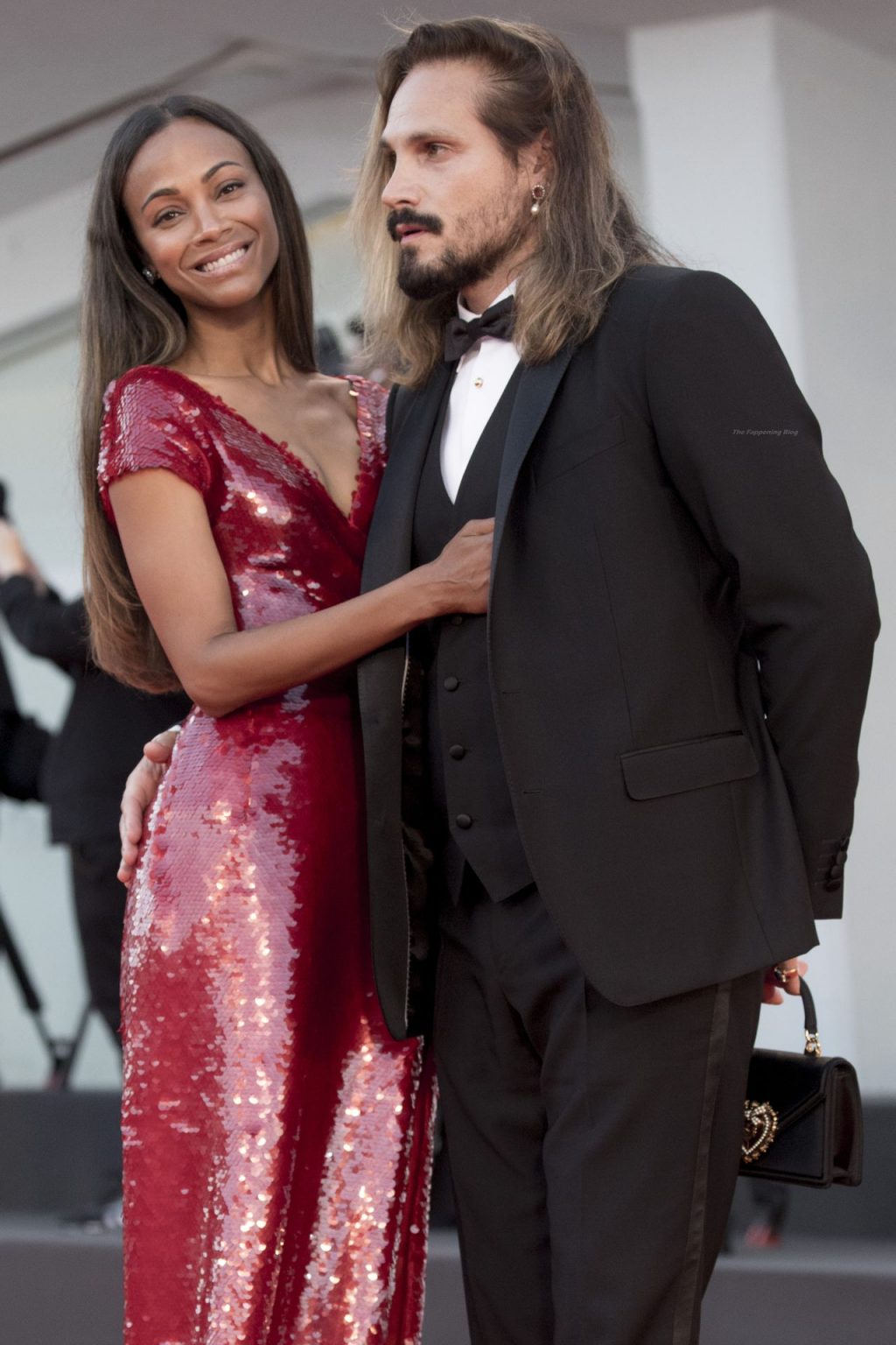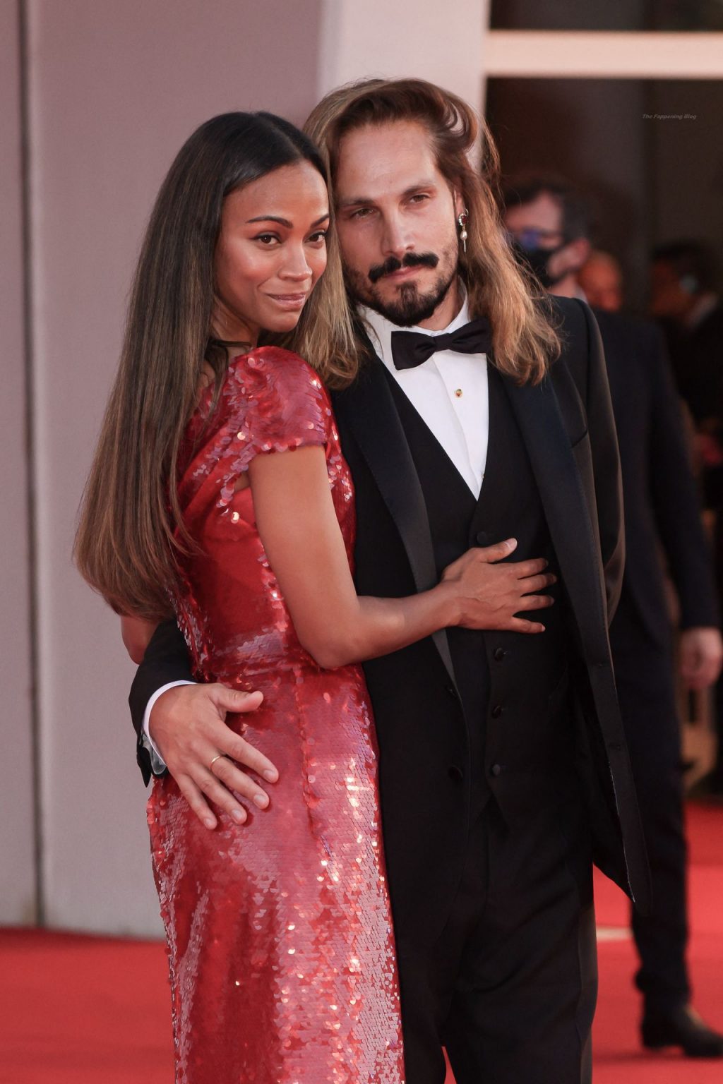 A atriz EUA/Dominicana Zoe Saldana chega para a exibição do filme “E stata la mano di Dio” (A Mão de Deus) apresentado em competição durante o 78º Festival de Cinema de Veneza no Lido de Veneza, 02/09/2021.