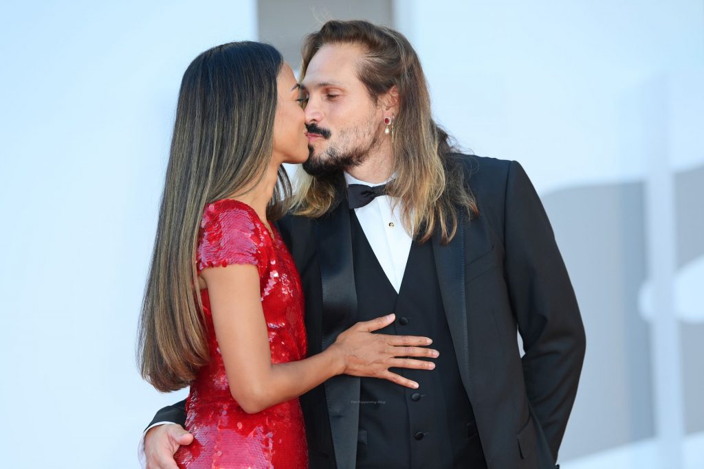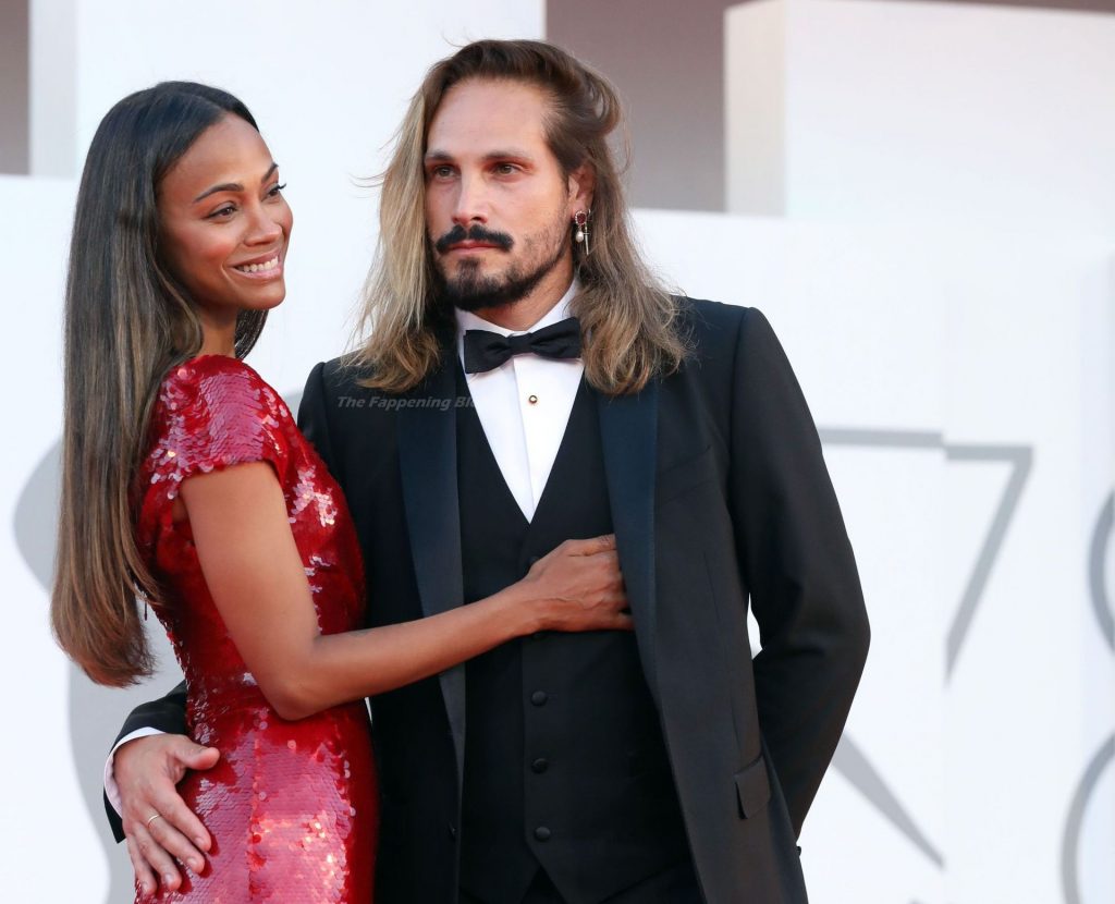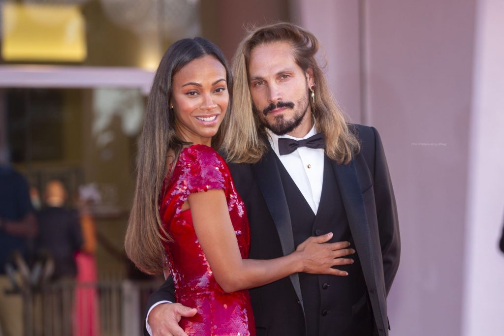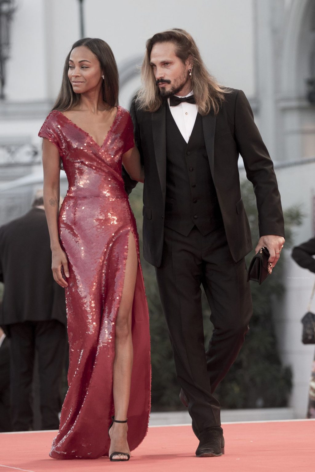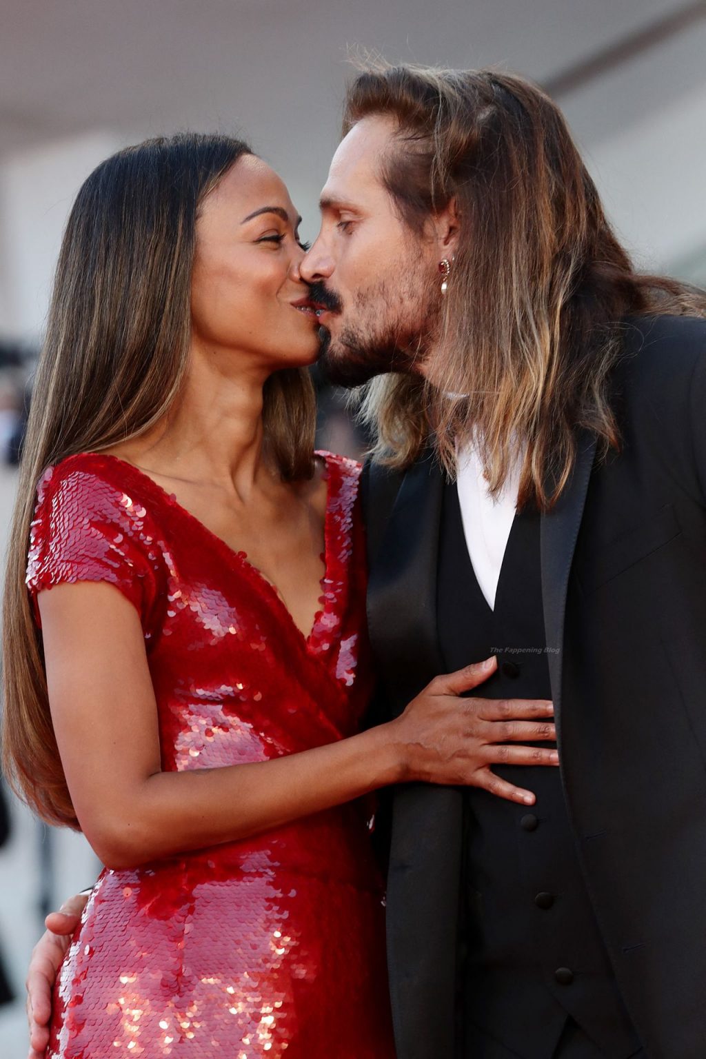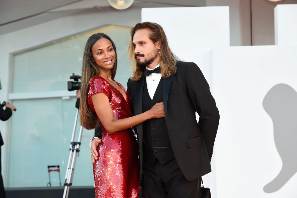A atriz EUA/Dominicana Zoe Saldana chega para a exibição do filme “E stata la mano di Dio” (A Mão de Deus) apresentado em competição durante o 78º Festival de Cinema de Veneza no Lido de Veneza, 02/09/2021.